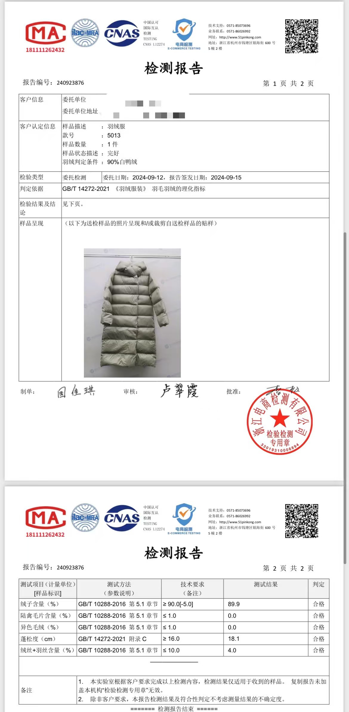 주요 원단 성분 함량
