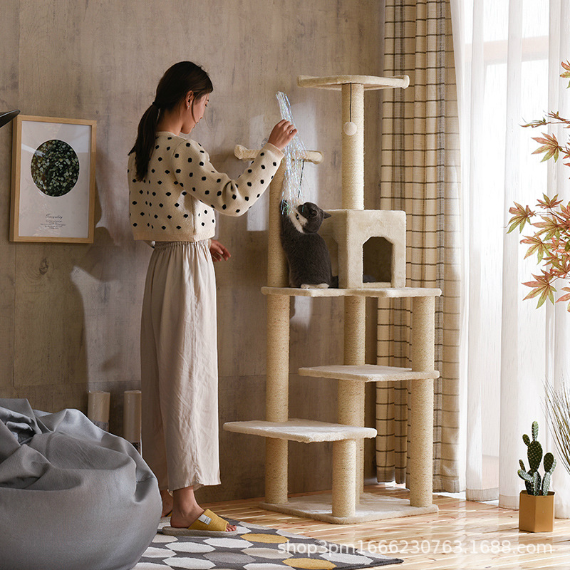 고양이 둥지와 고양이 나무가 하나로 통합된 고양이 등반 프레임 등나무 고양이 등반 땋은 둥지 세이지 고양이 집 고양이 장난감 다층 뚱뚱한 고양이 등반 프레임