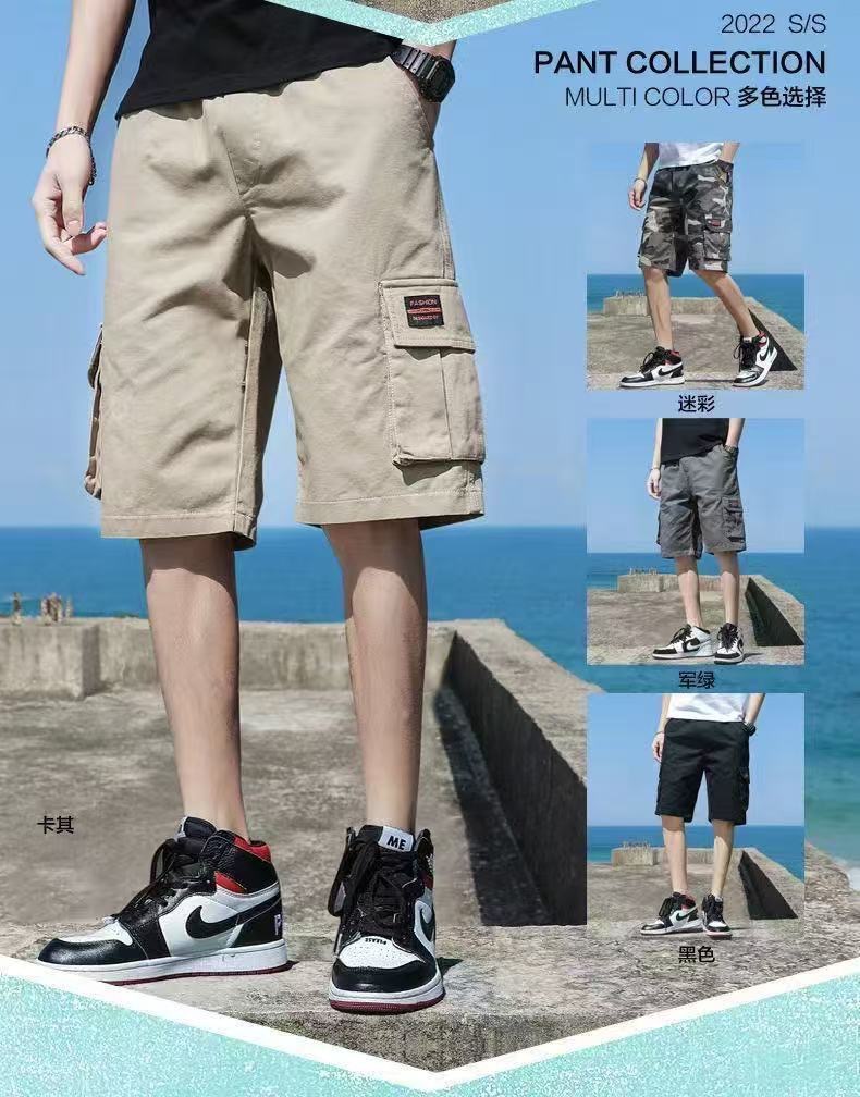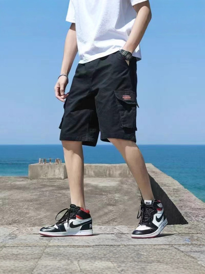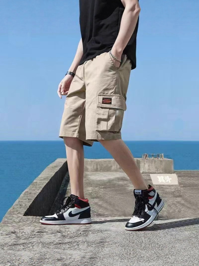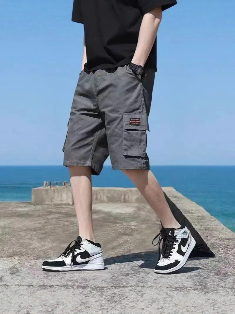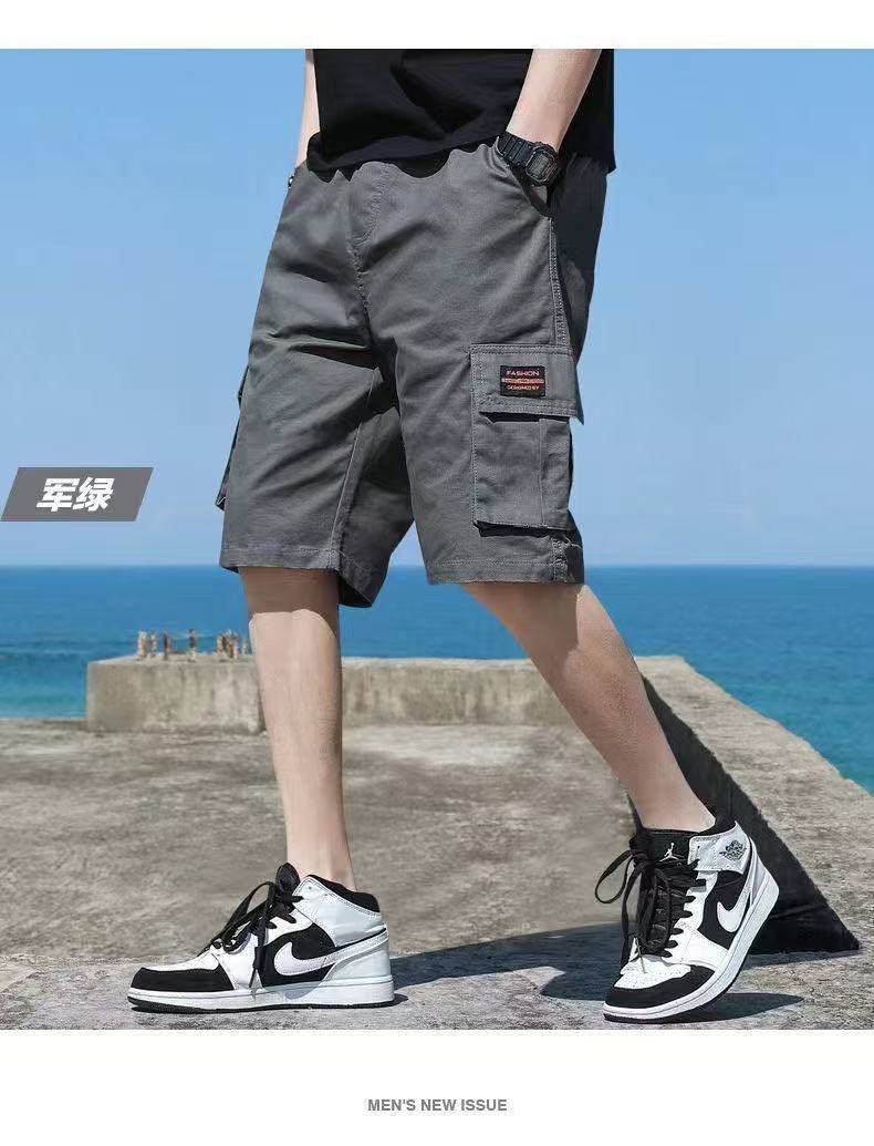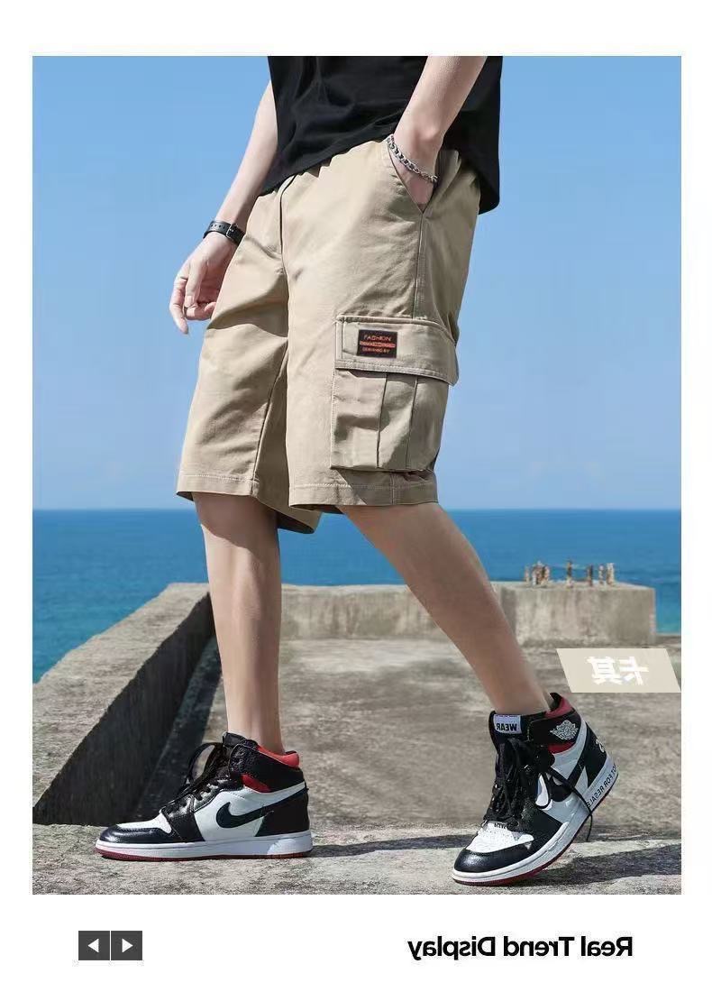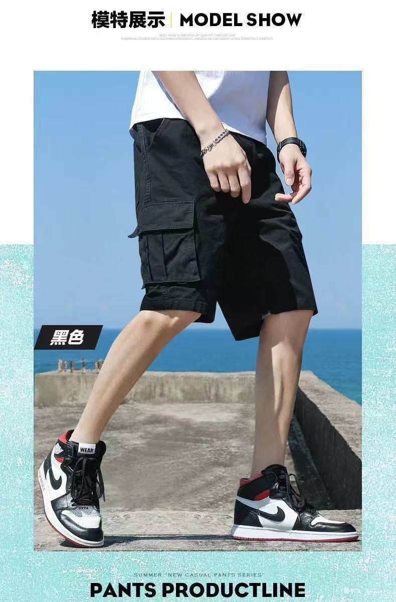 십대용 카고반바지, 루즈한 학생용 하이엔드 미드팬츠, 남성용 여름 트렌디한 순면 다용도 캐주얼 5부팬츠