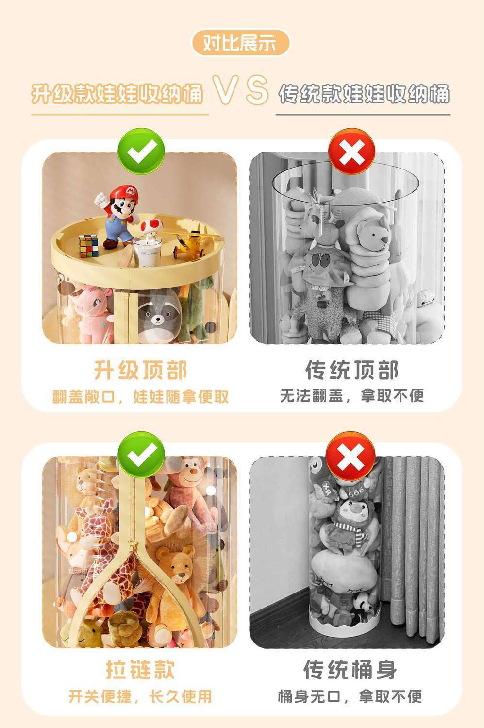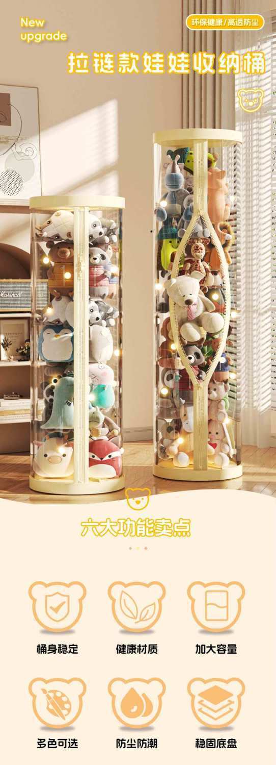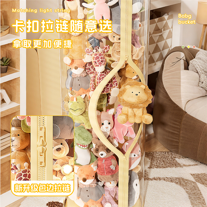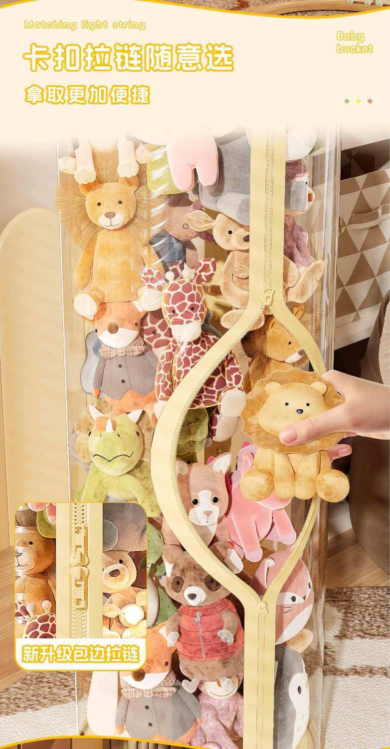 대용량 보관통, 인형, 봉제인형, 지퍼인형, 투명한 가정용 보관함, 고가치 유물