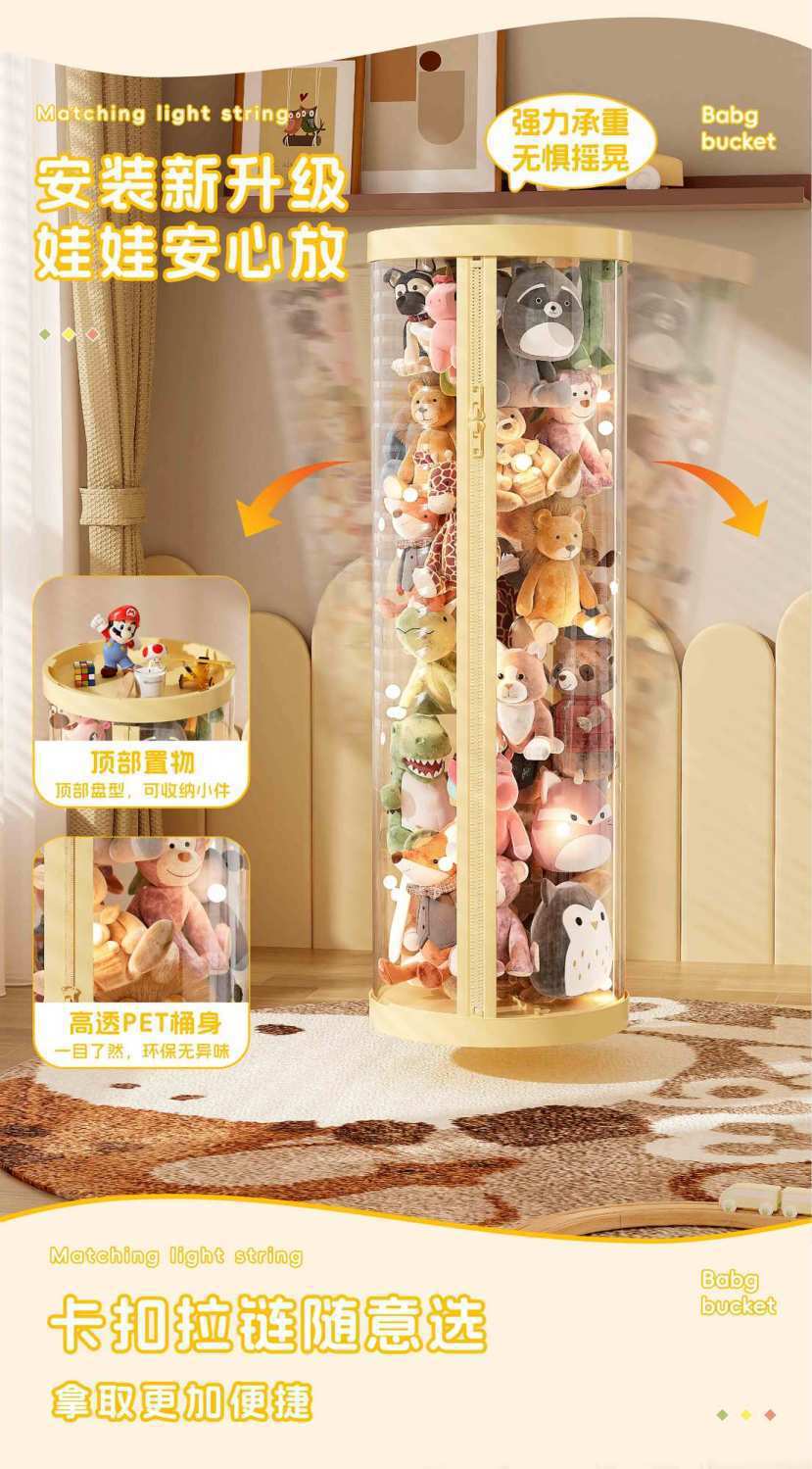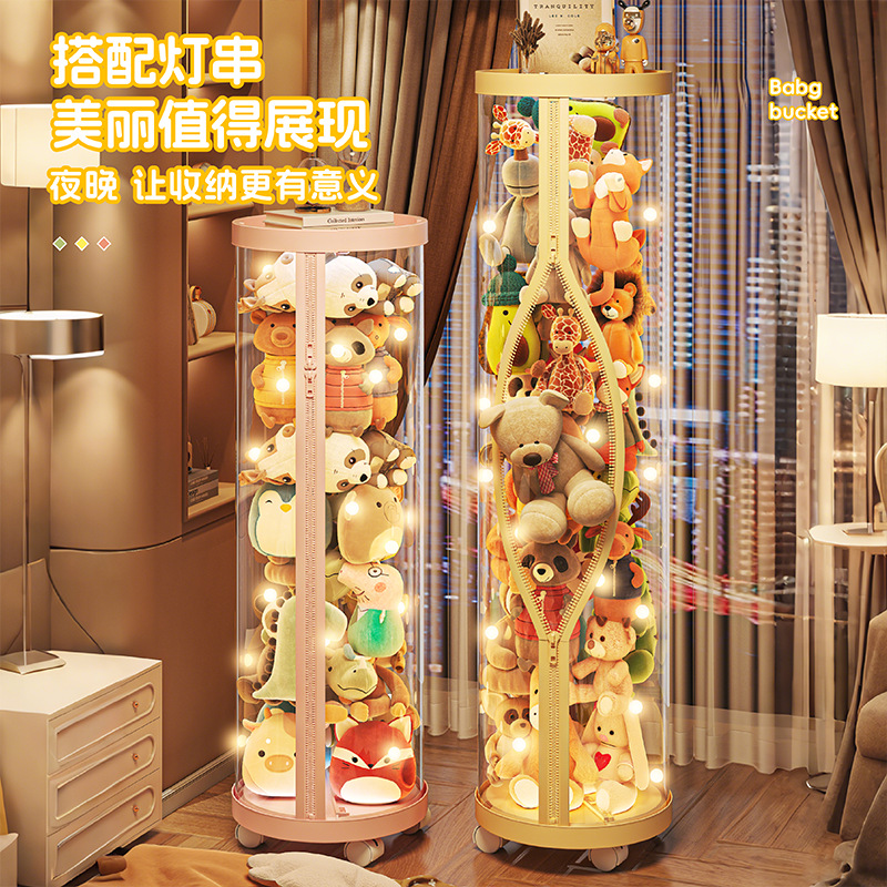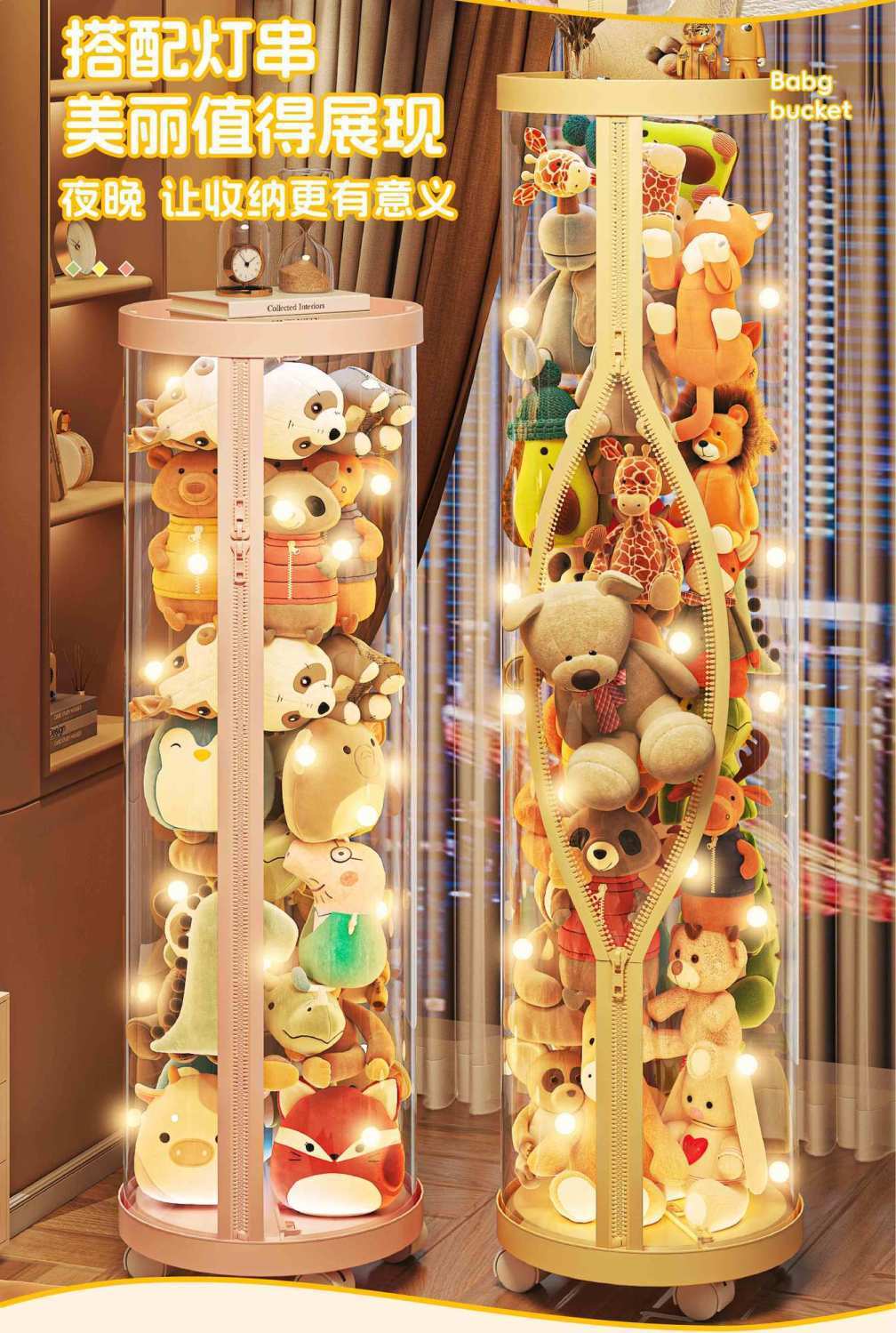 대용량 보관통, 인형, 봉제인형, 지퍼인형, 투명한 가정용 보관함, 고가치 유물