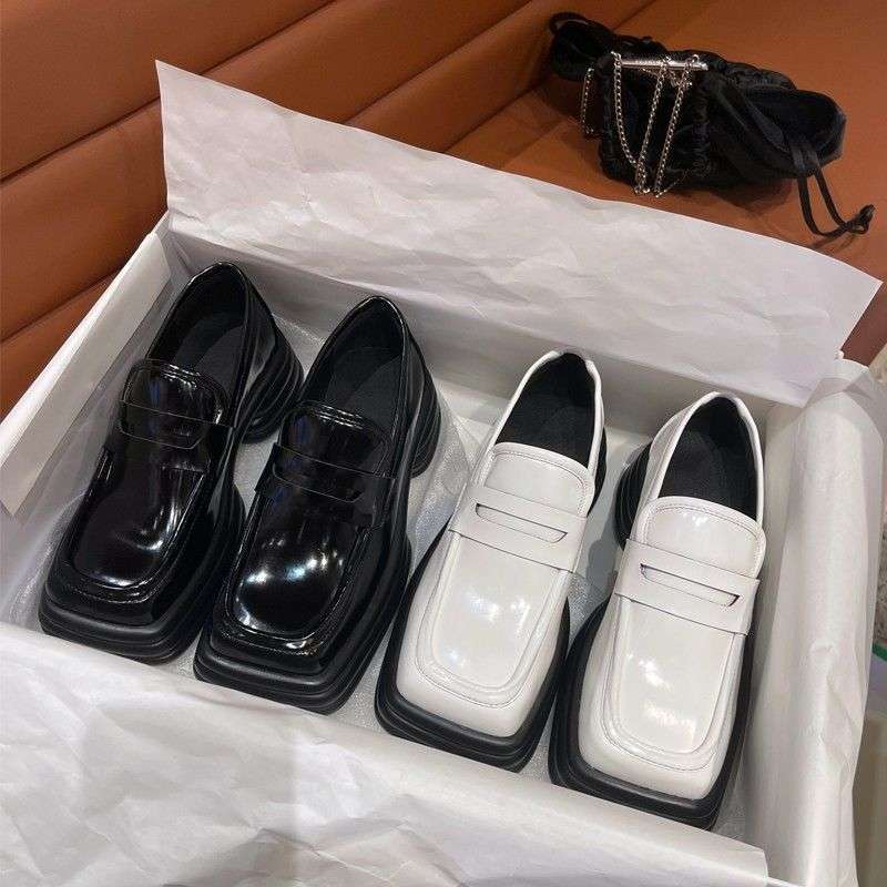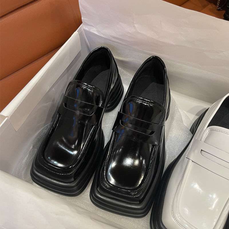 여성용 작은 가죽 신발 2025 신상 여름 스퀘어 토 플랫폼 두꺼운 밑창 일본식 영국식 미드 힐 슬립온 로퍼