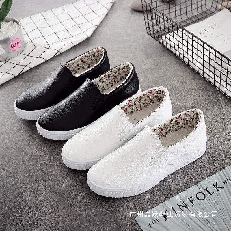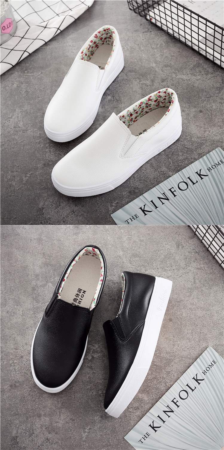 2025 봄 여름 가죽 슬립온 화이트 슈즈 여성 로퍼 한국식 여성 플랫 캐주얼 스니커즈 간호사 임산부