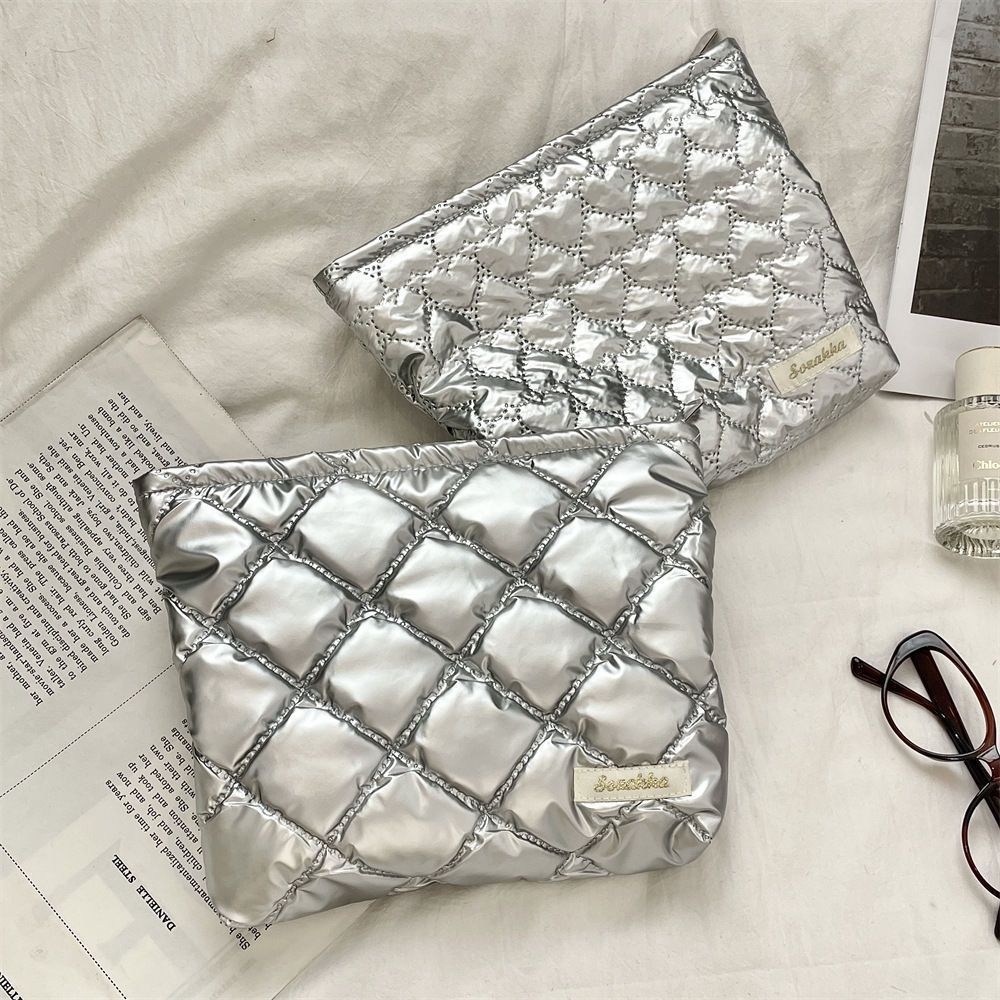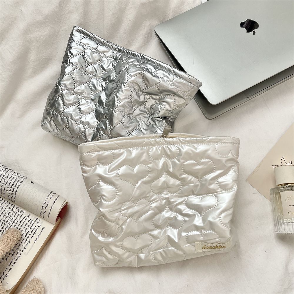 2025 한국 스타일 퀼팅 PU 러브 클러치 화장품 가방 스킨 케어 제품 동전 지갑 라이너 다기능 보관 가방