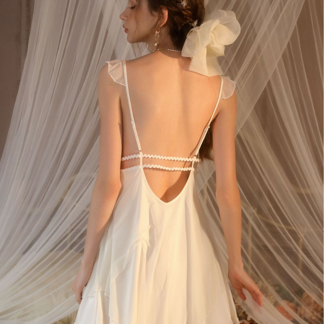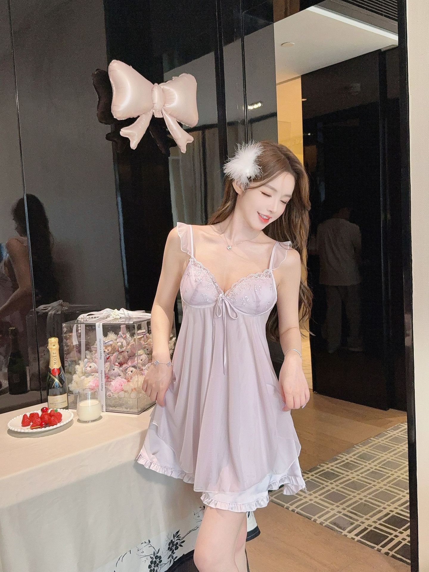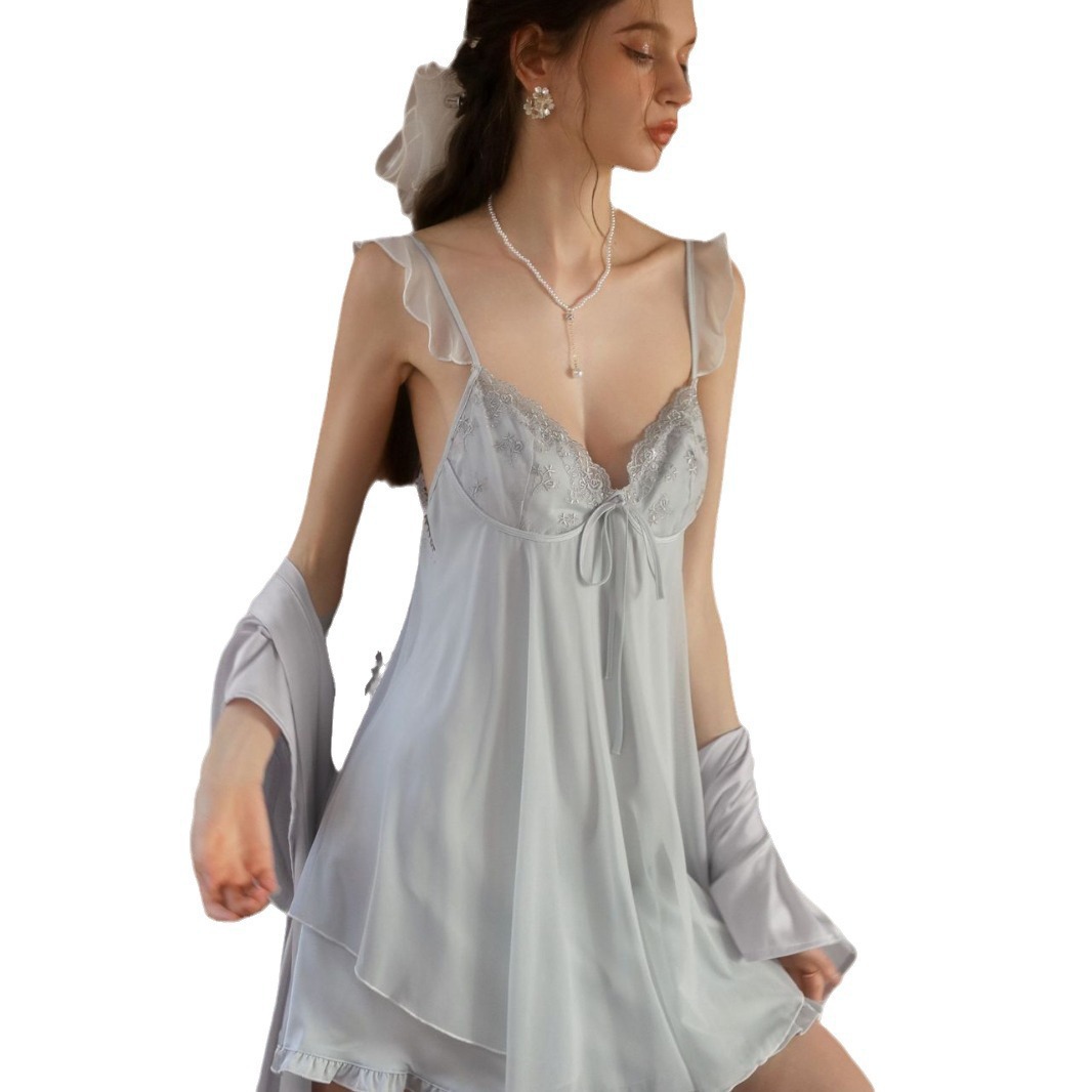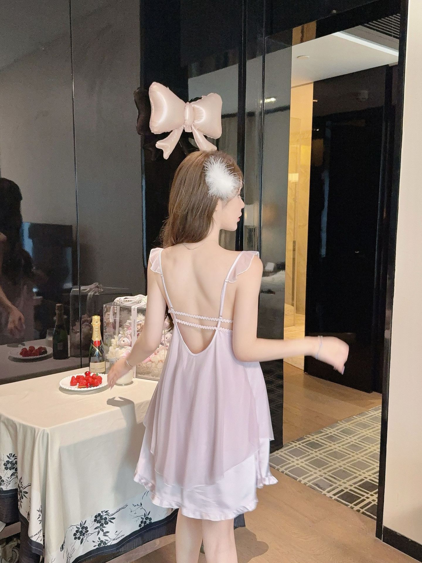 여성용 섹시 잠옷, 아이스 실크 여름 신상품, 가슴 패드가 있는 멜빵 잠옷, 아름다운 등 디자인, 순수한 섹시 스타일, 실크 홈웨어