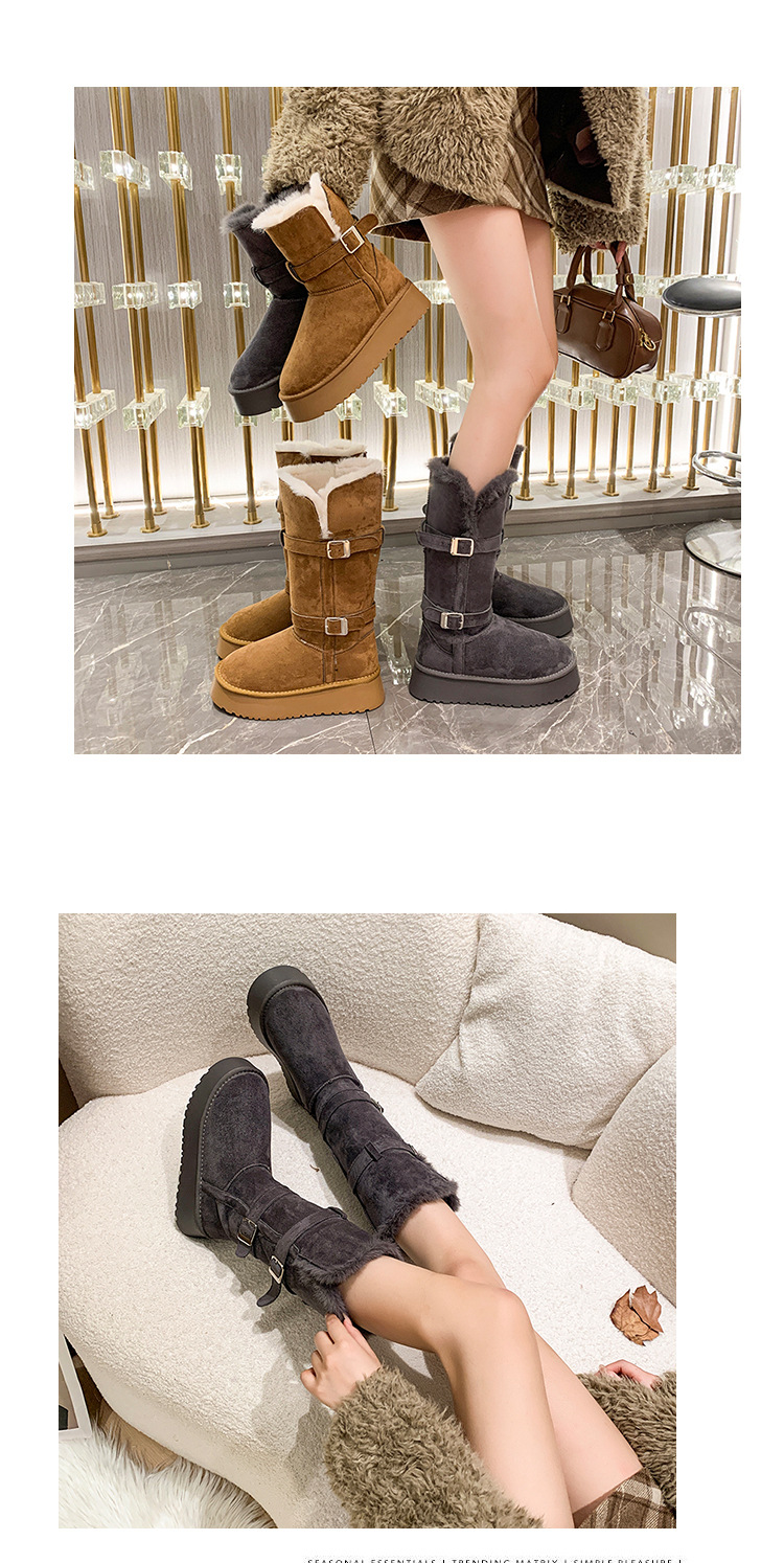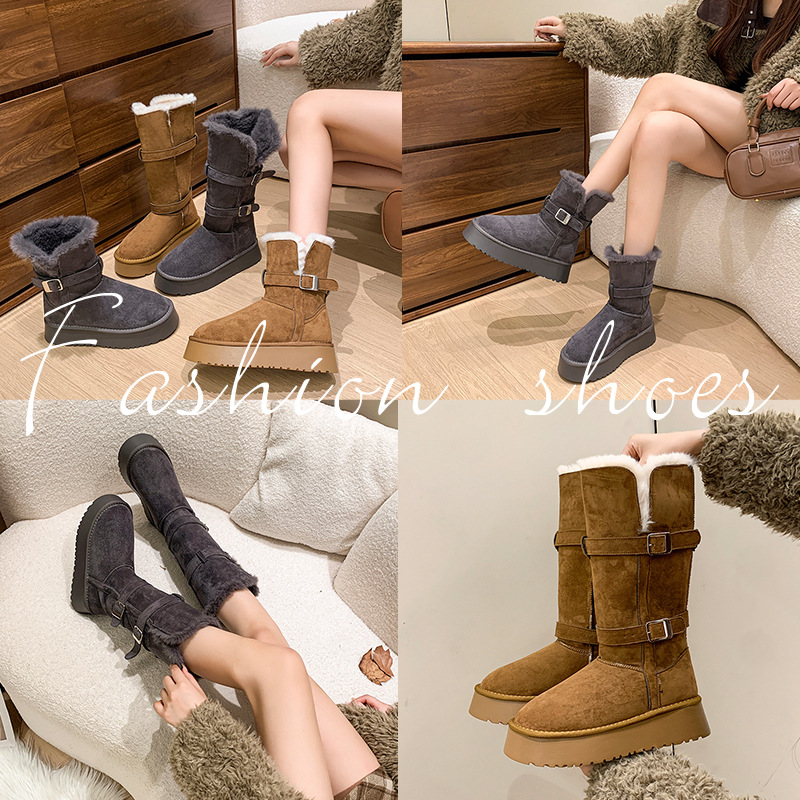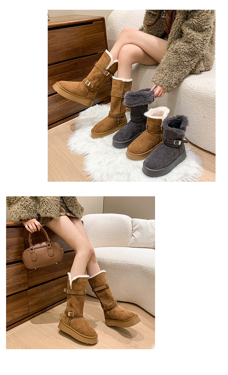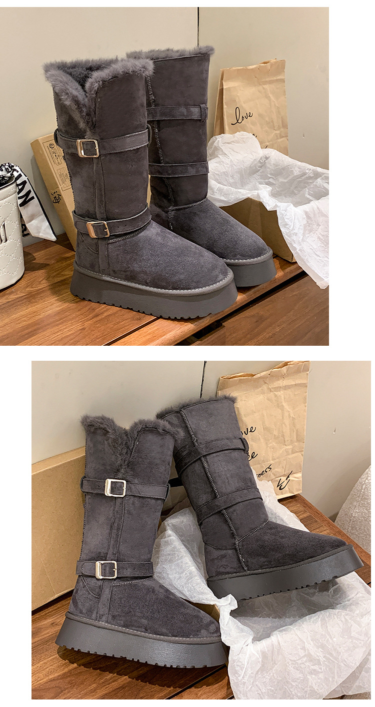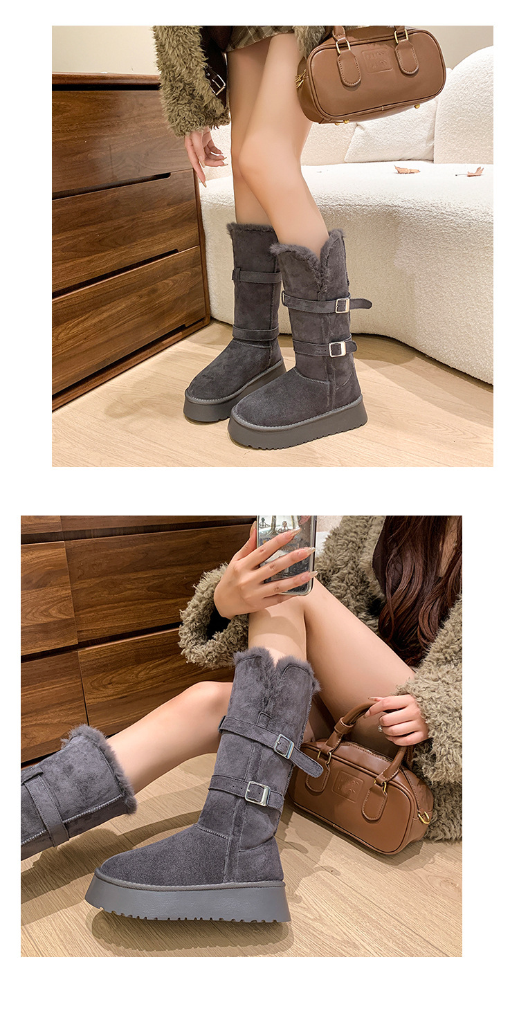 여성을위한 회색 투웨어 무릎 스노우 부츠 2025 겨울 새로운 두꺼운 밑창 높이 증가 플러스 벨벳 두꺼운 롱 튜브 스노우 코튼 슈즈