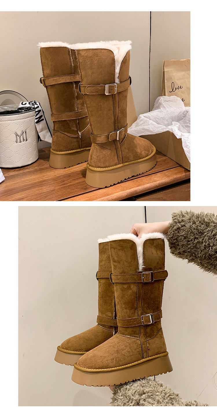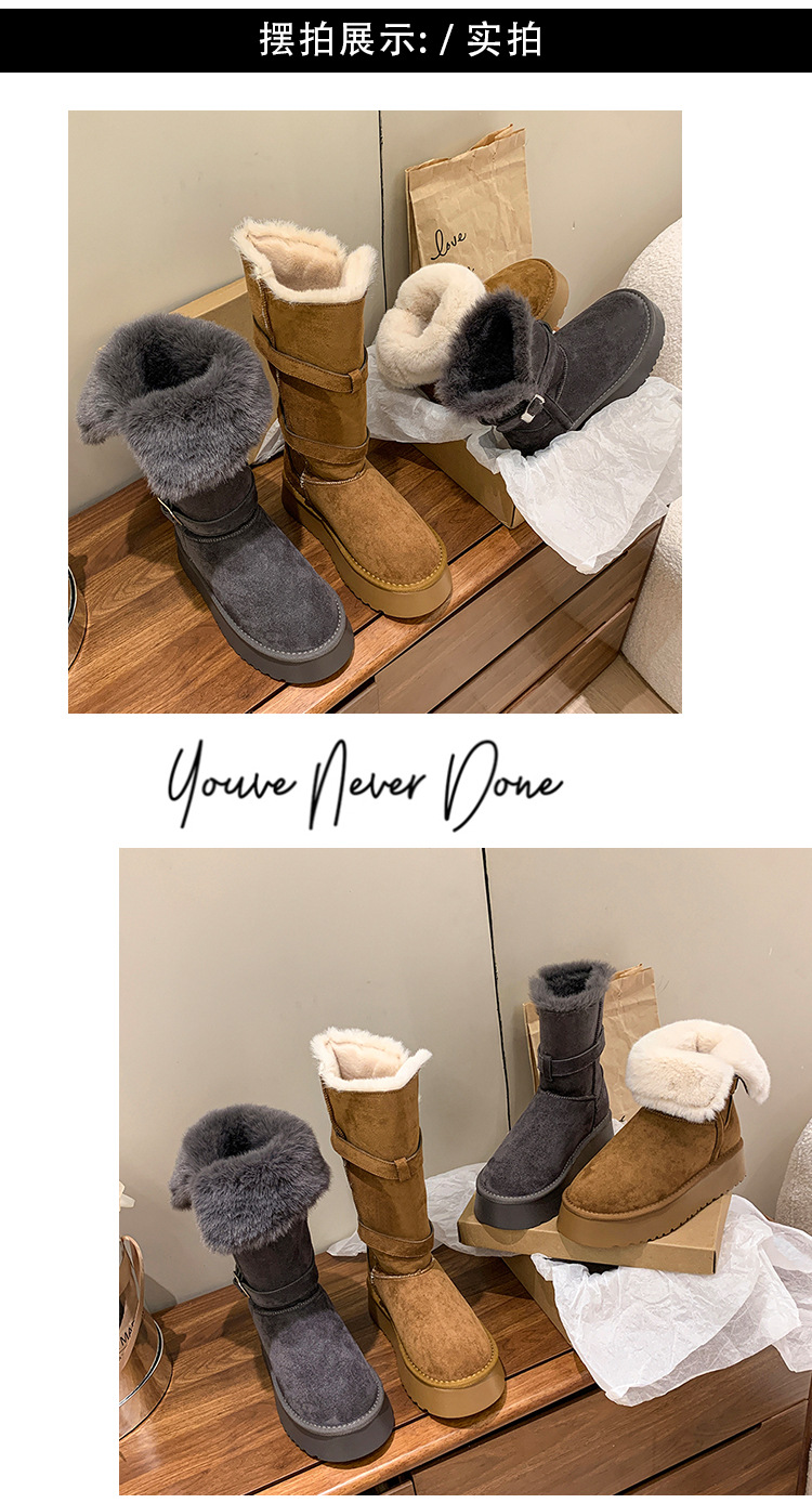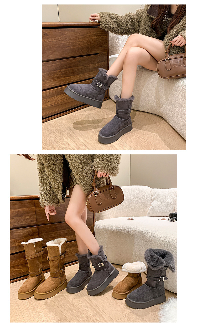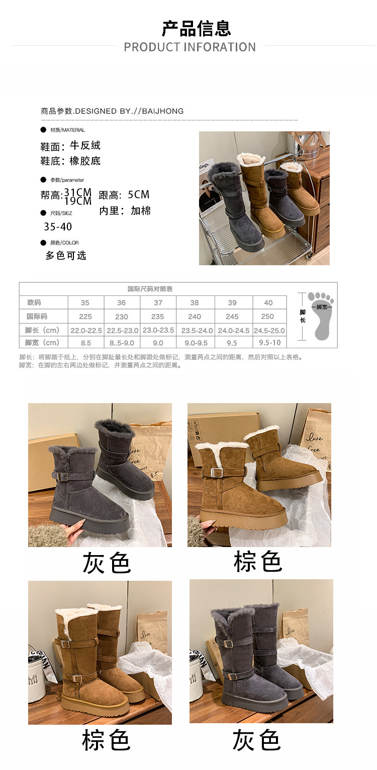 여성을위한 회색 투웨어 무릎 스노우 부츠 2025 겨울 새로운 두꺼운 밑창 높이 증가 플러스 벨벳 두꺼운 롱 튜브 스노우 코튼 슈즈