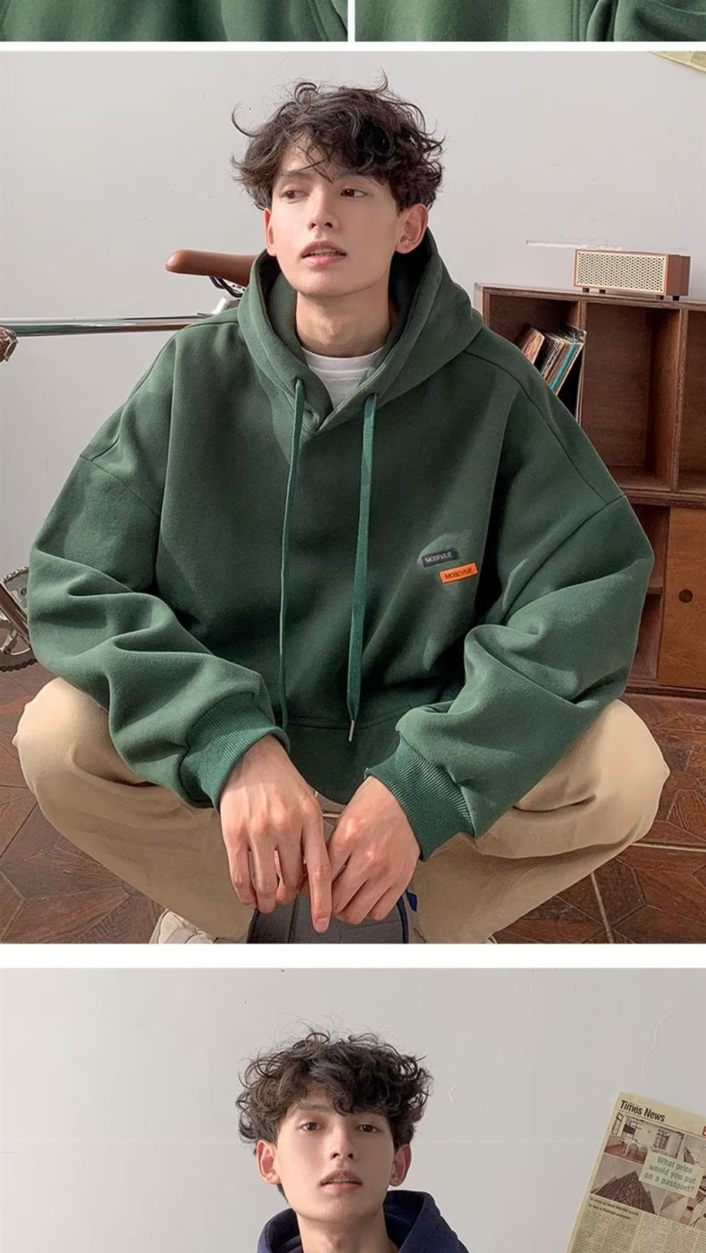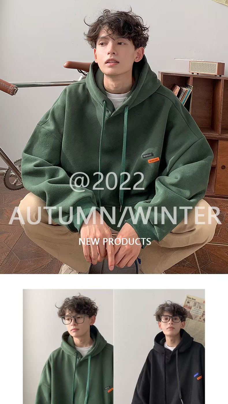 후드 티셔츠 남성 2025 봄, 가을 트렌디 브랜드 아메리칸 레트로 헤비급 루즈 패션 벨벳 캐주얼 재킷 탑