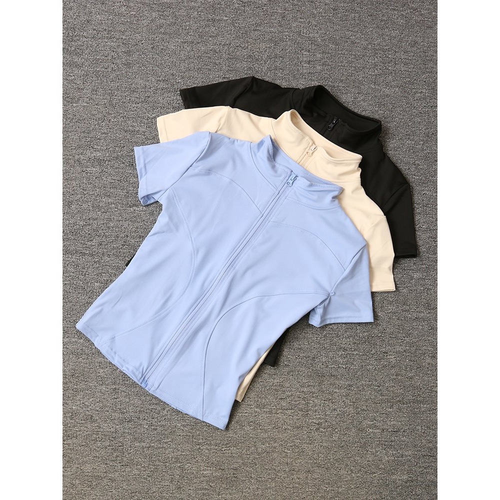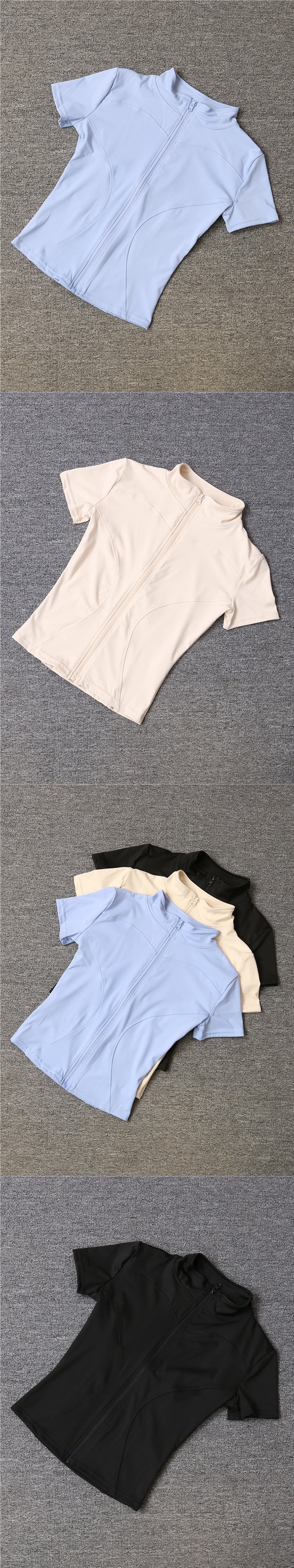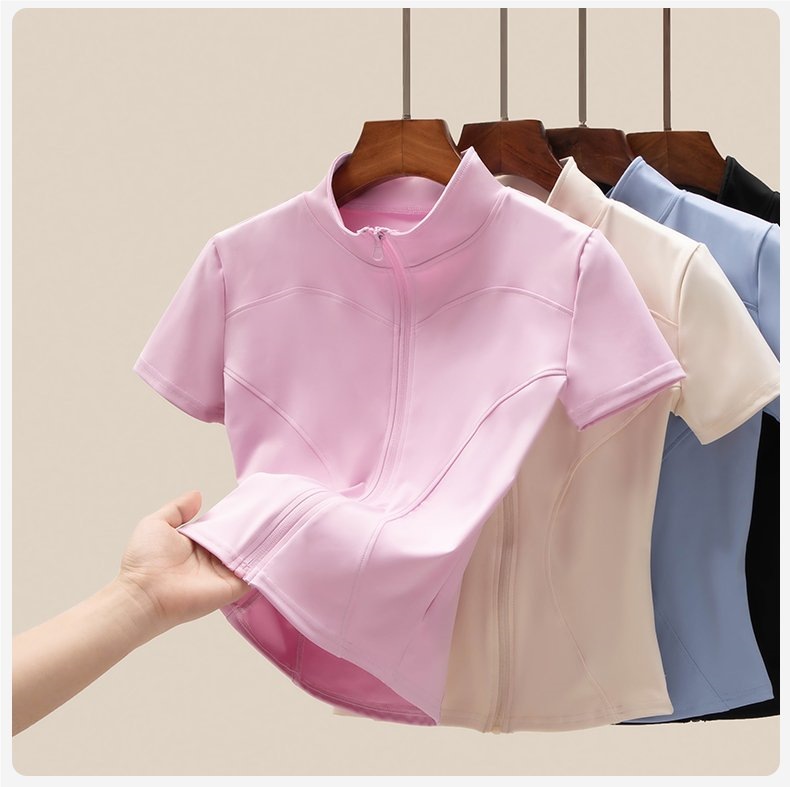 여성을위한 러닝 필라테스 스탠드 업 칼라 지퍼 요가웨어 2025 여름 신작 슬림 티셔츠 스포츠 반팔 피트니스웨어