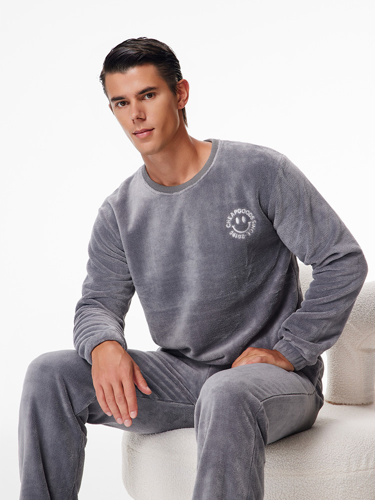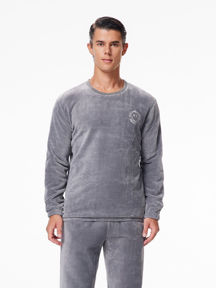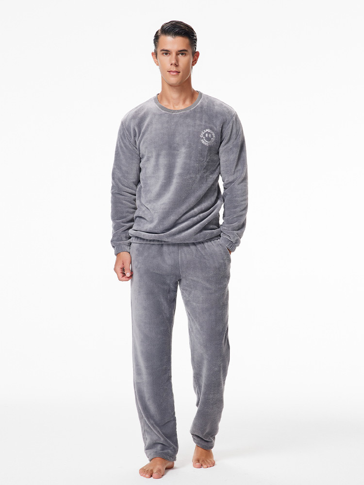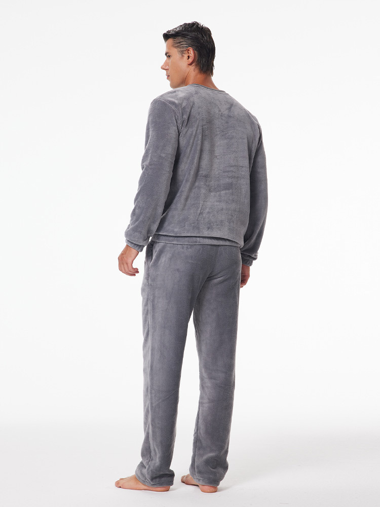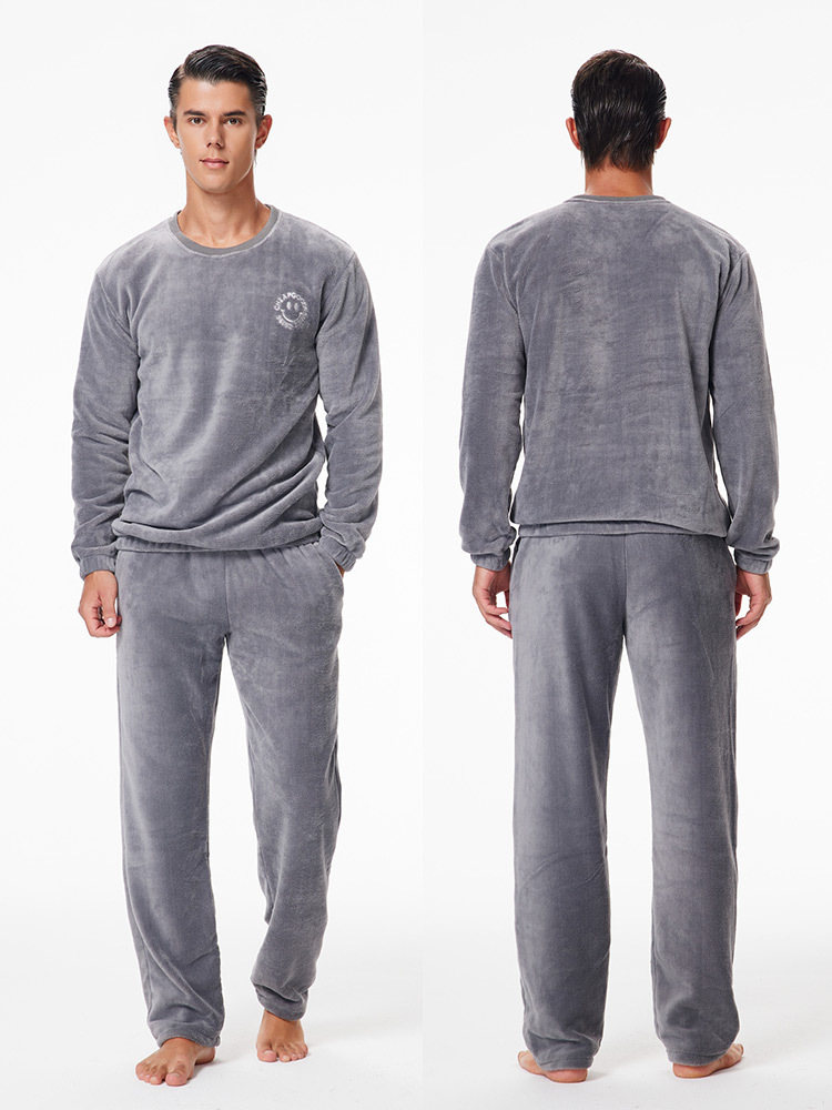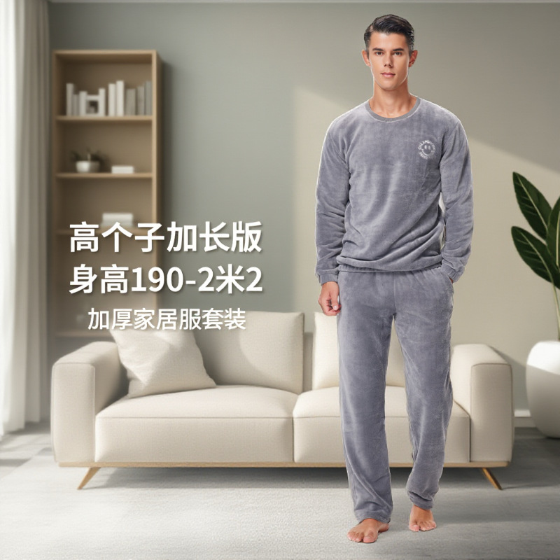 키가 큰 남성용 홈웨어 세트 가을 겨울 라운드 넥 긴팔 벨벳 두꺼운 확장 버전 잠옷 및 파자마 118A