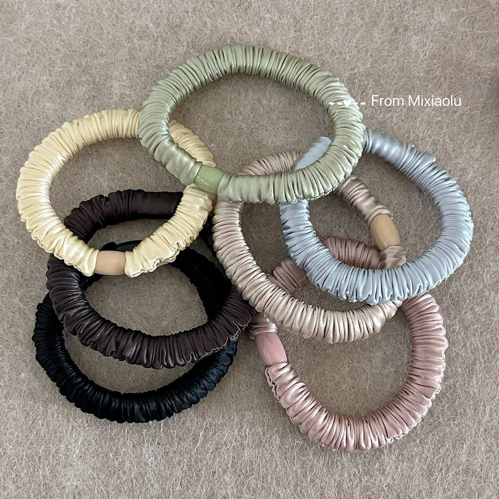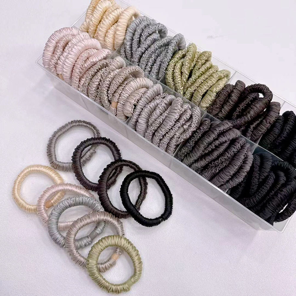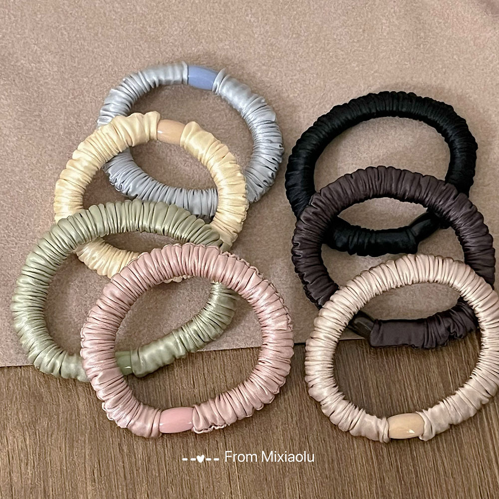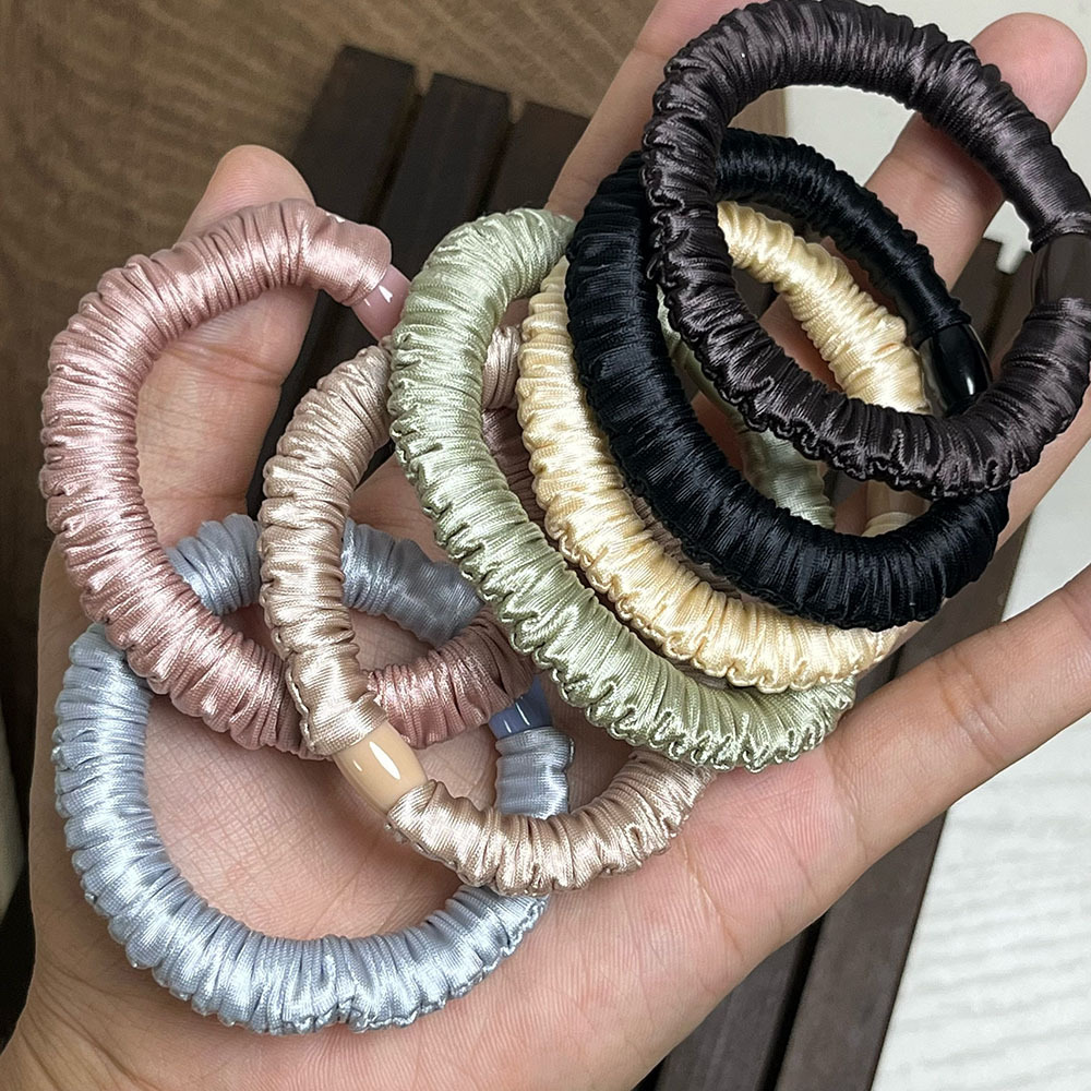 한국판 베이직 슈퍼 소프트 고탄성 심리스 아이스 실크 마스크 대장 헤어 밴드 새틴 포니테일 고무 밴드 여성용 솔리드 컬러 헤드 로프