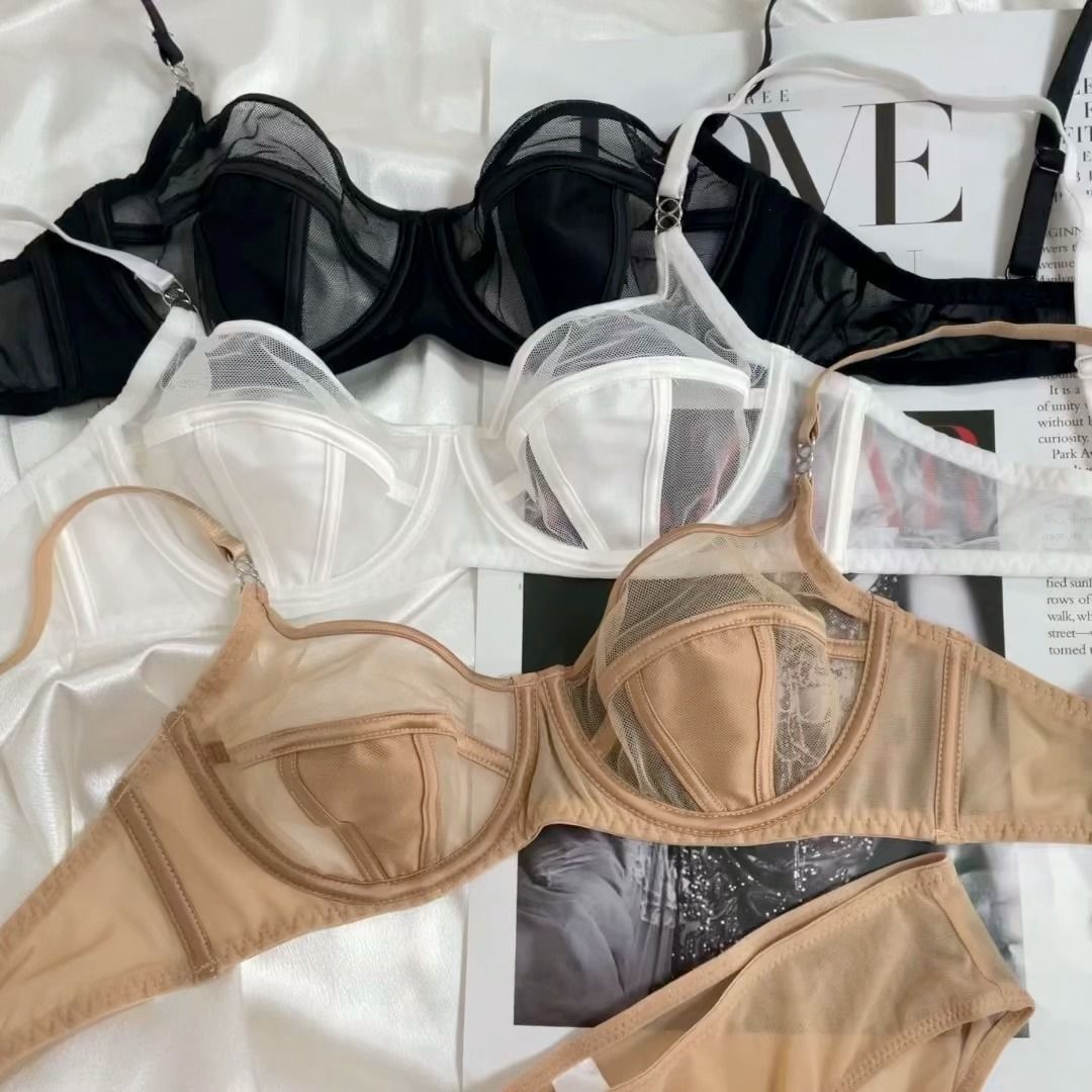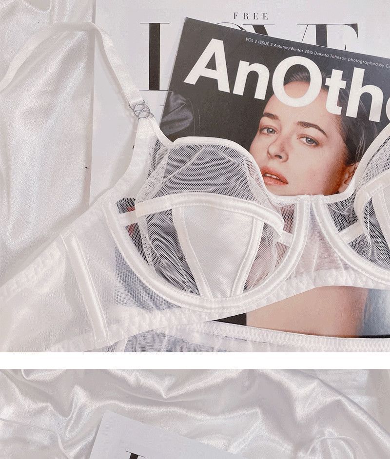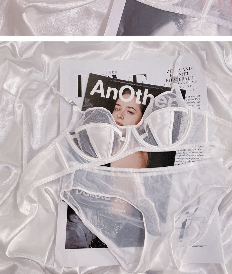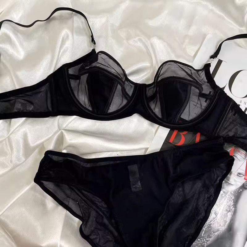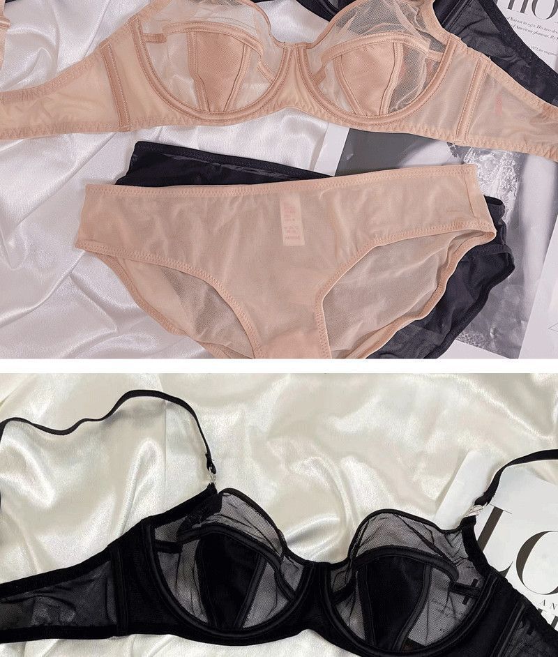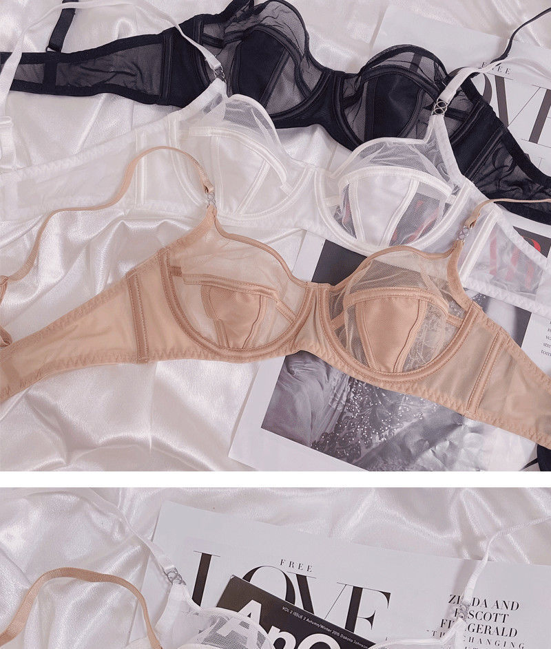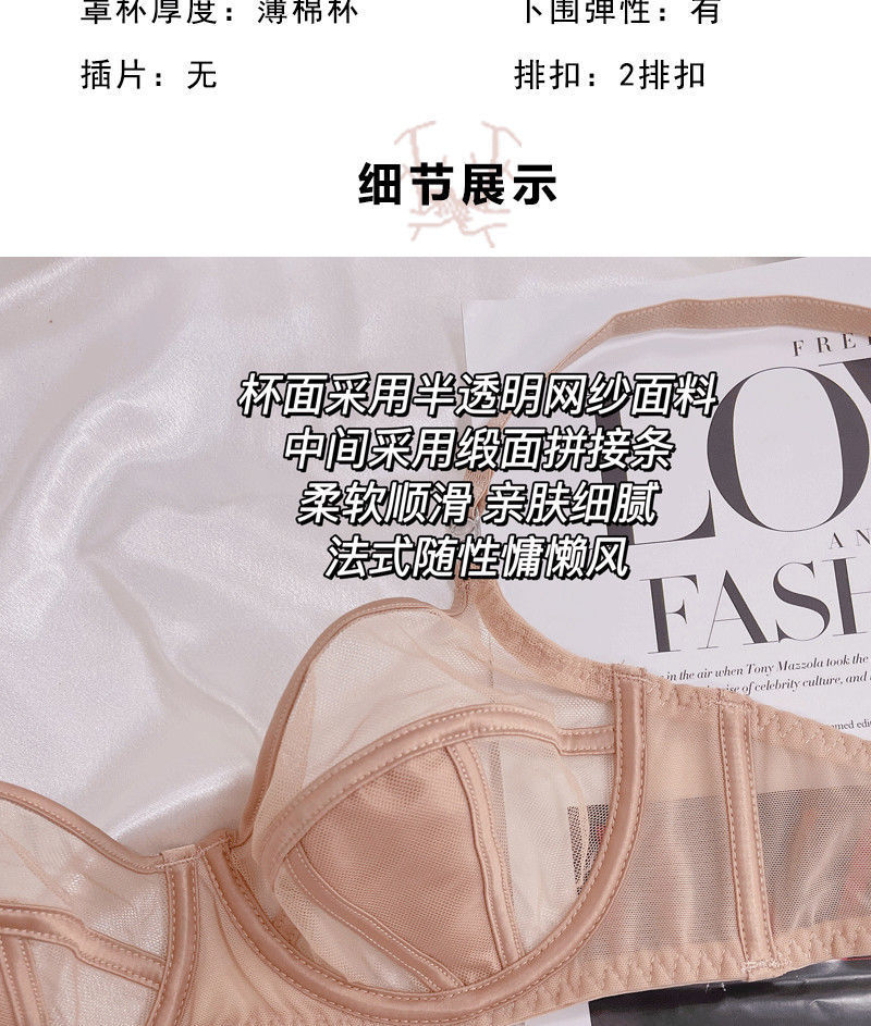 여름 큰 가슴, 투명한 반컵 브라, 섹시한 속옷, 프렌치 초박형 브라 세트, 크로스보더