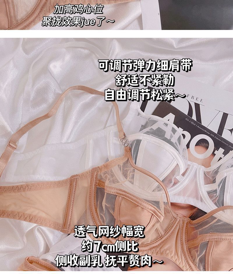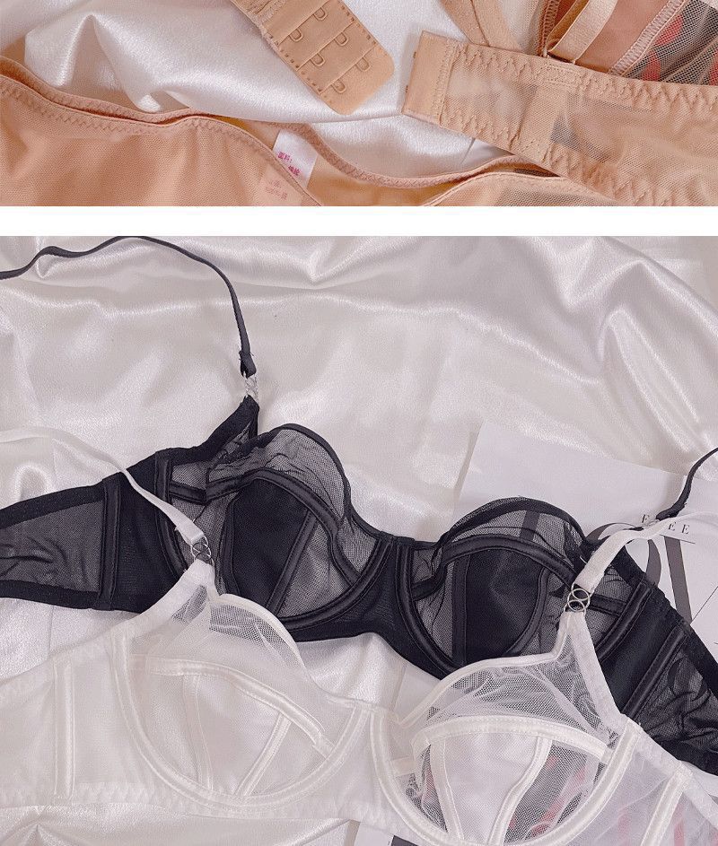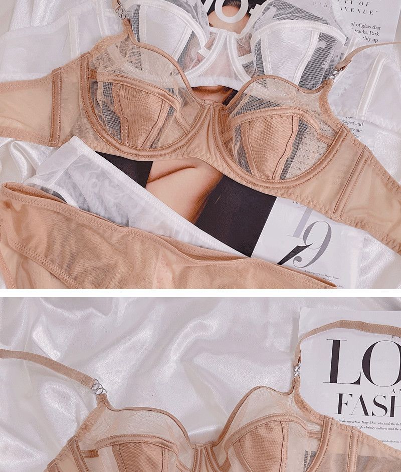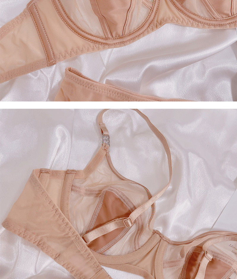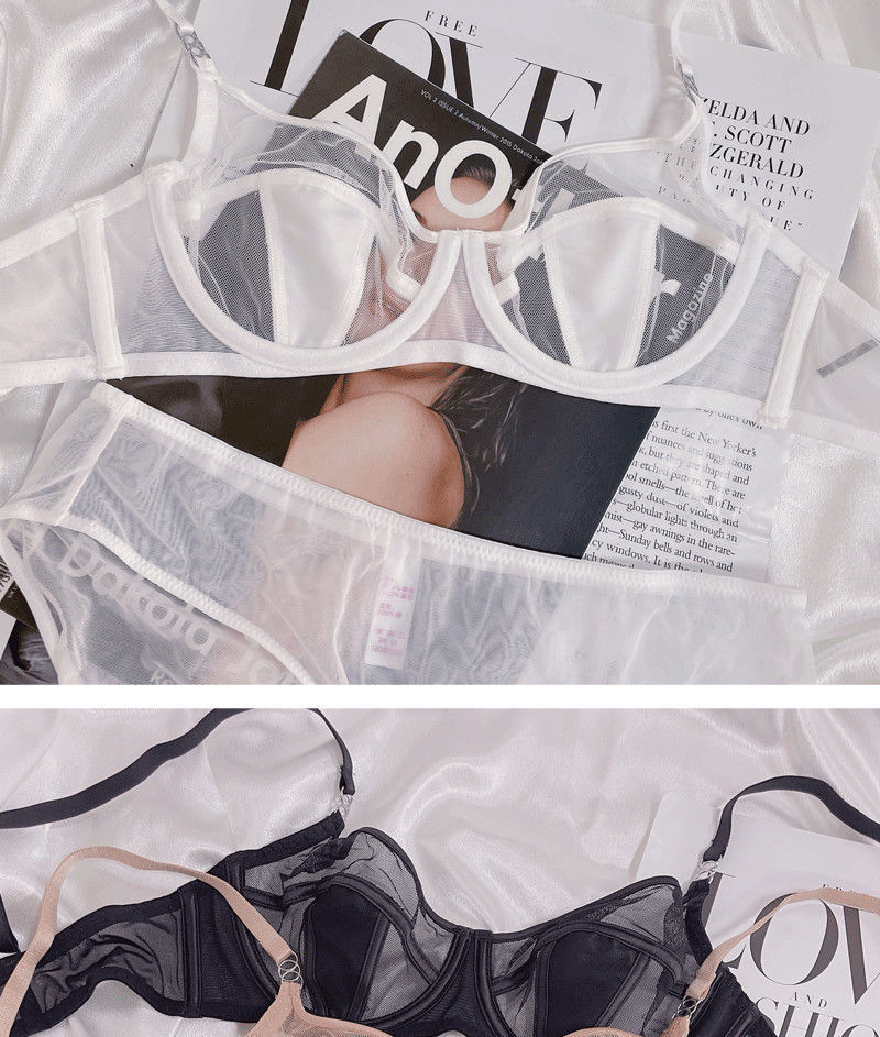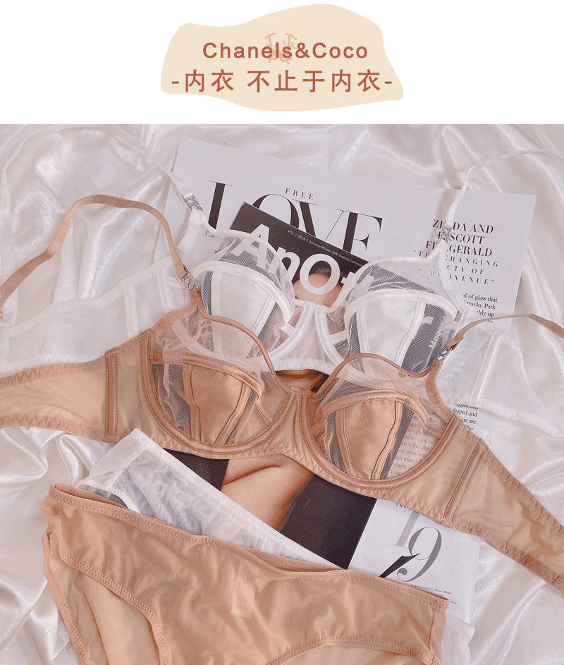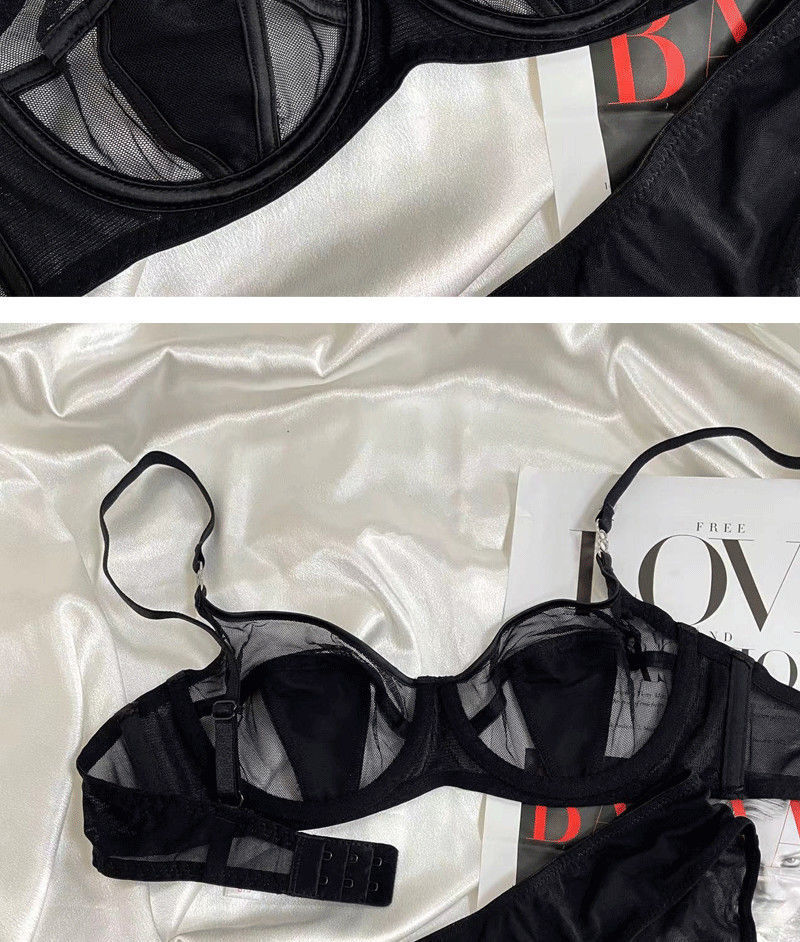 여름 큰 가슴, 투명한 반컵 브라, 섹시한 속옷, 프렌치 초박형 브라 세트, 크로스보더