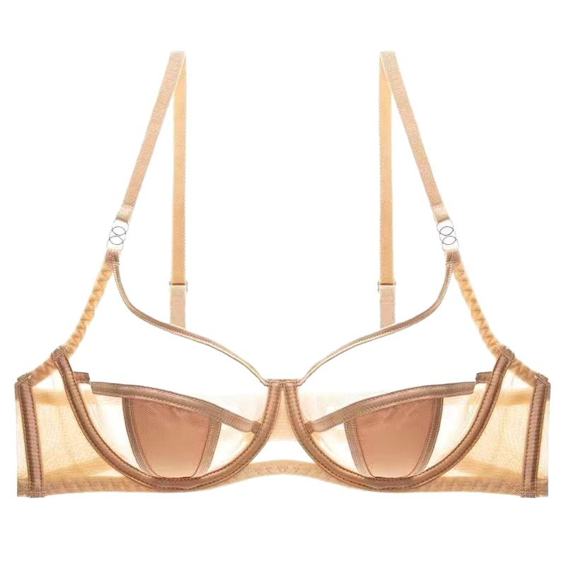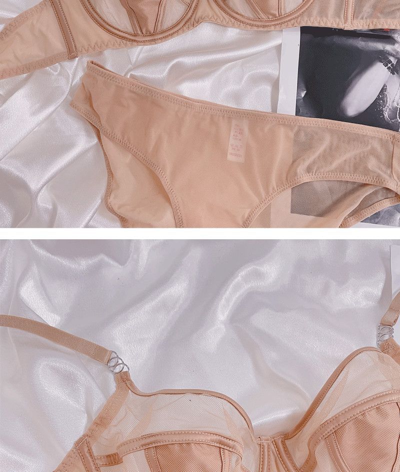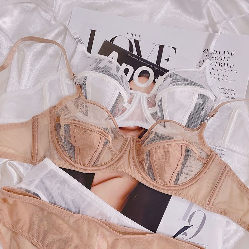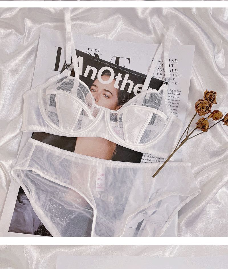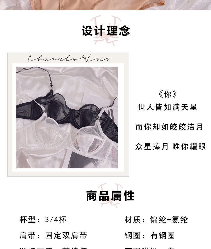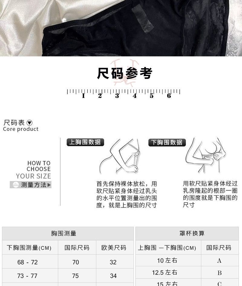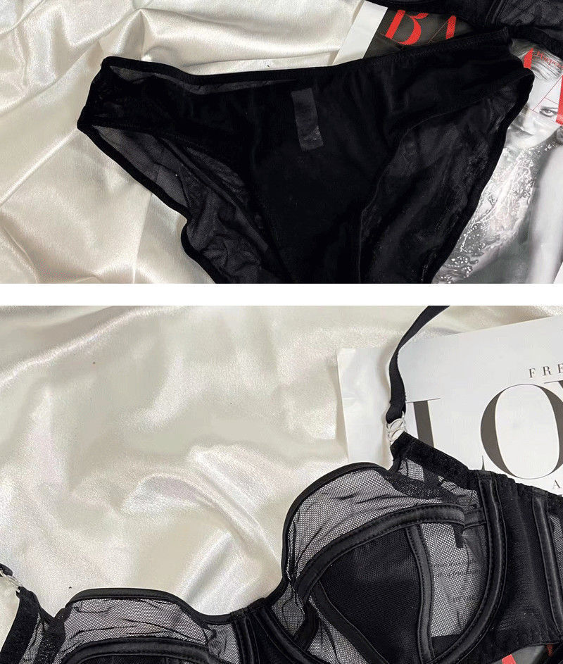 여름 큰 가슴, 투명한 반컵 브라, 섹시한 속옷, 프렌치 초박형 브라 세트, 크로스보더