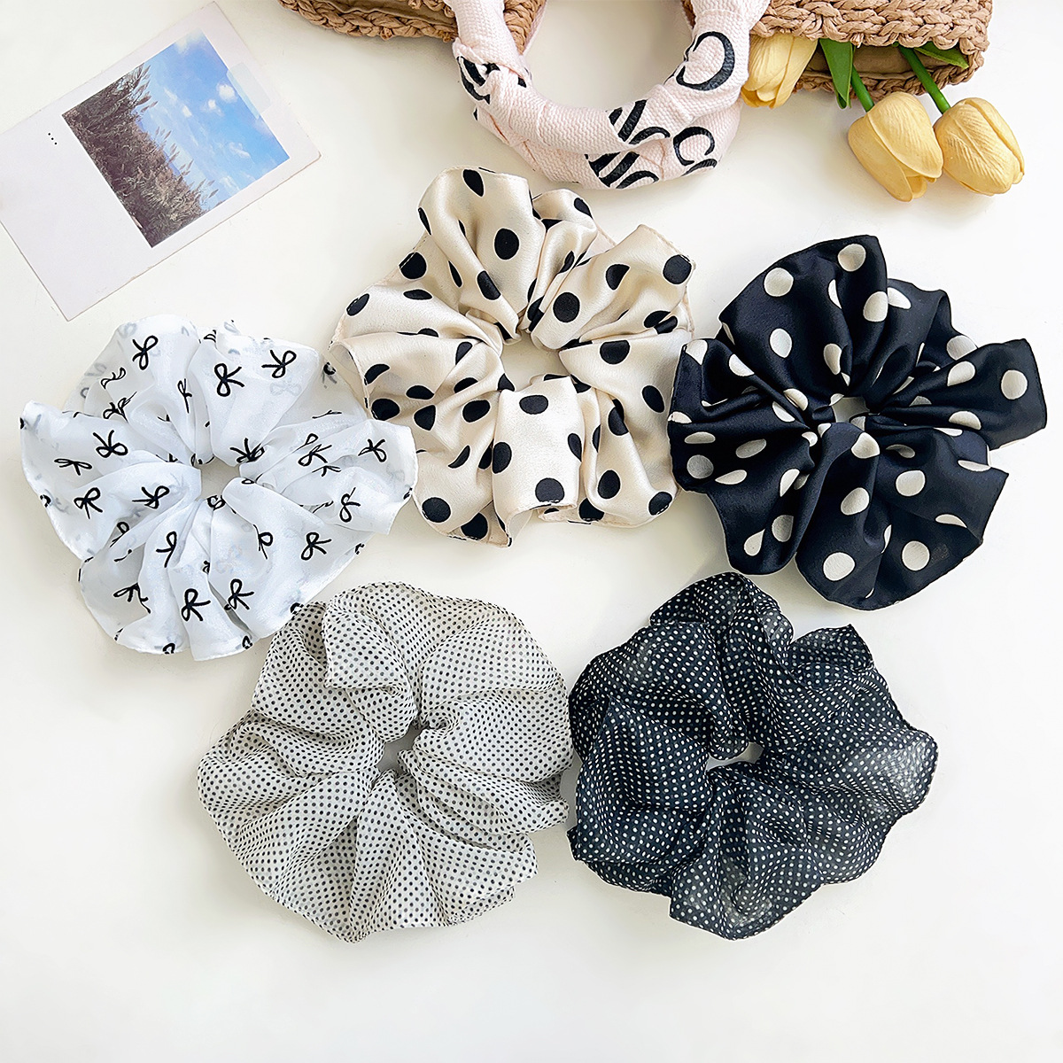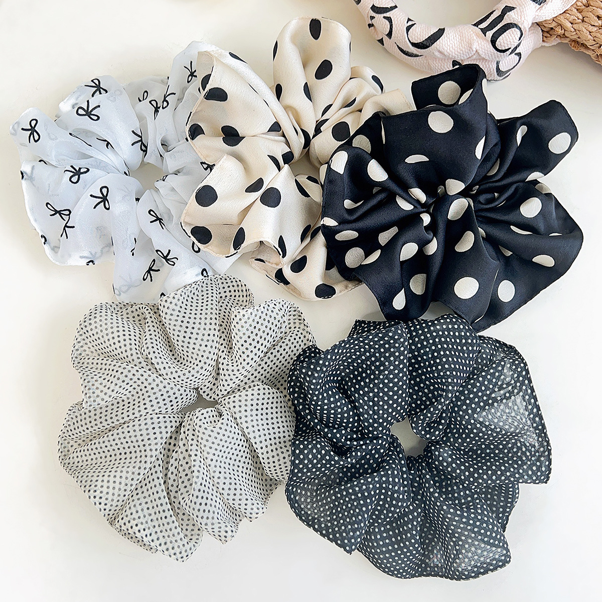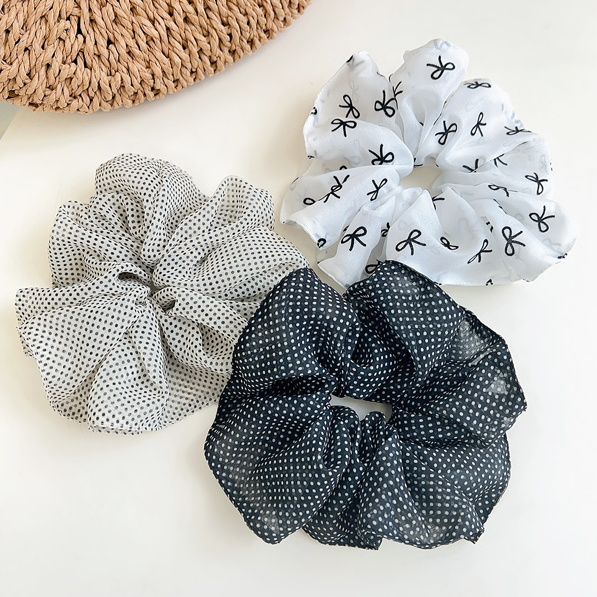 오프화이트 + 도트무늬 + 메쉬머리끈