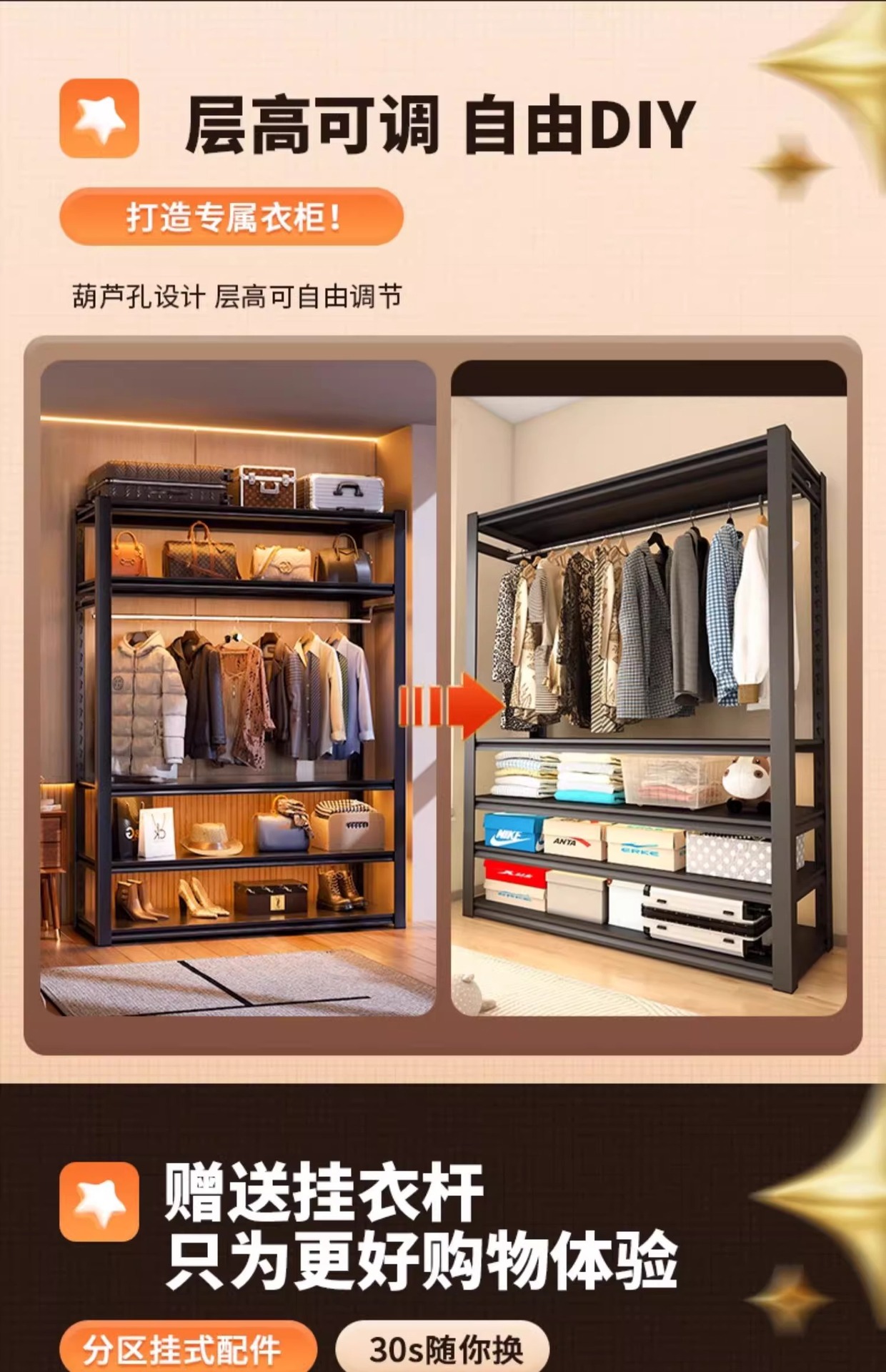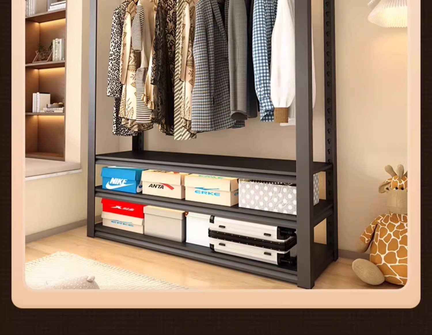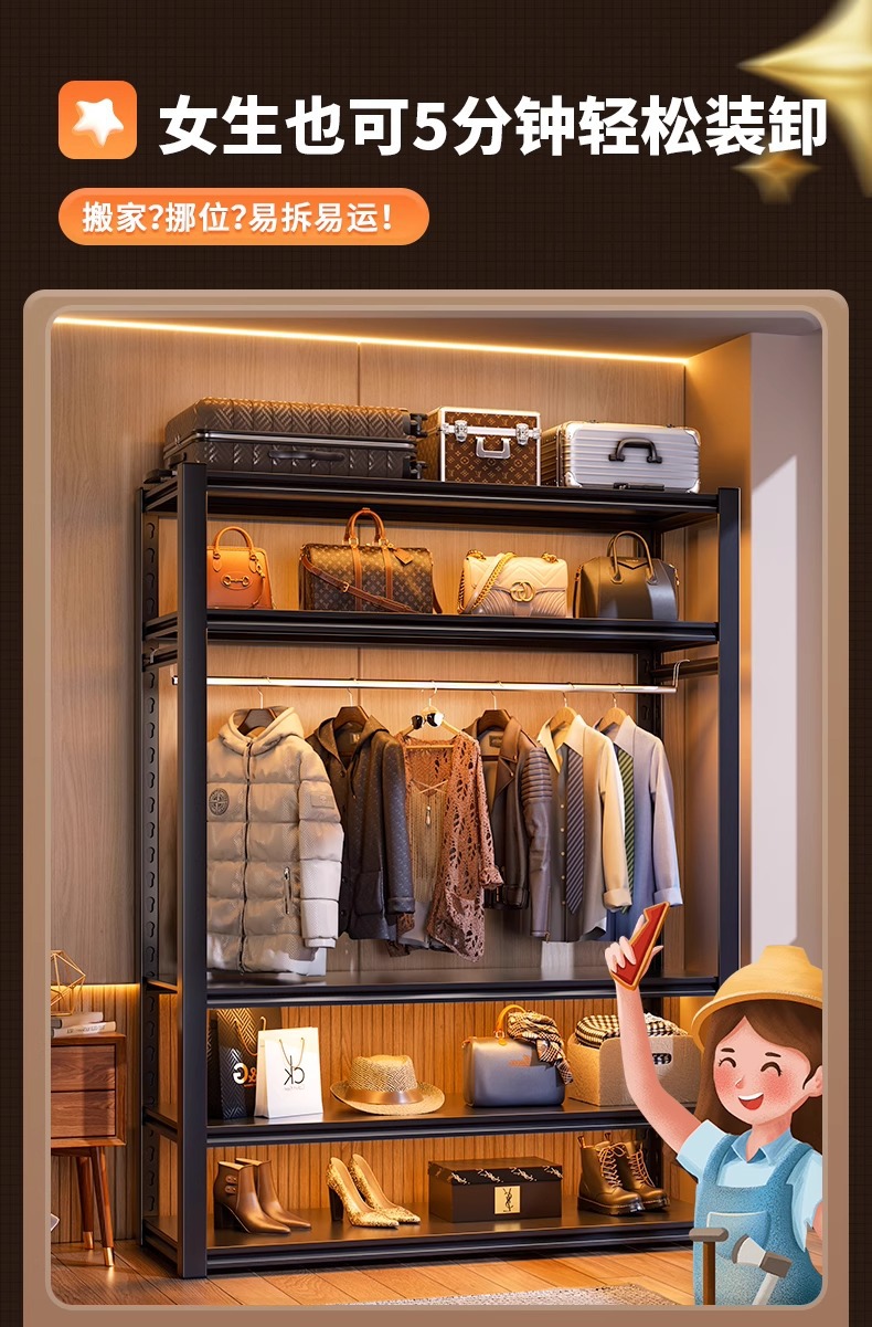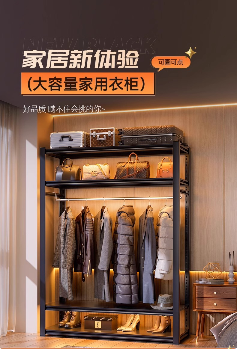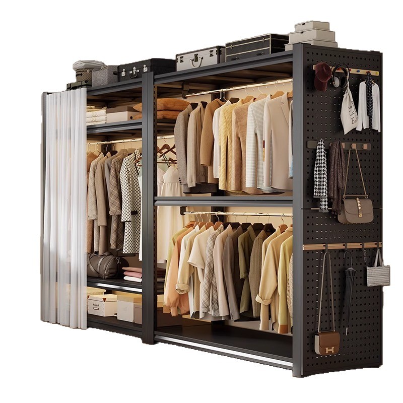 가정용 선반, 옷장, 간단한 조립, 개방형 침실 옷걸이, 가정용 발코니 수납 철제 선반
