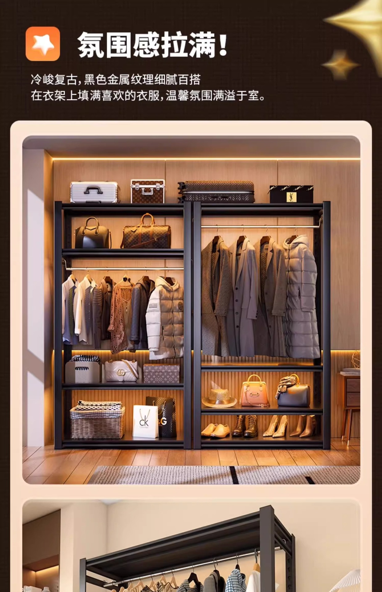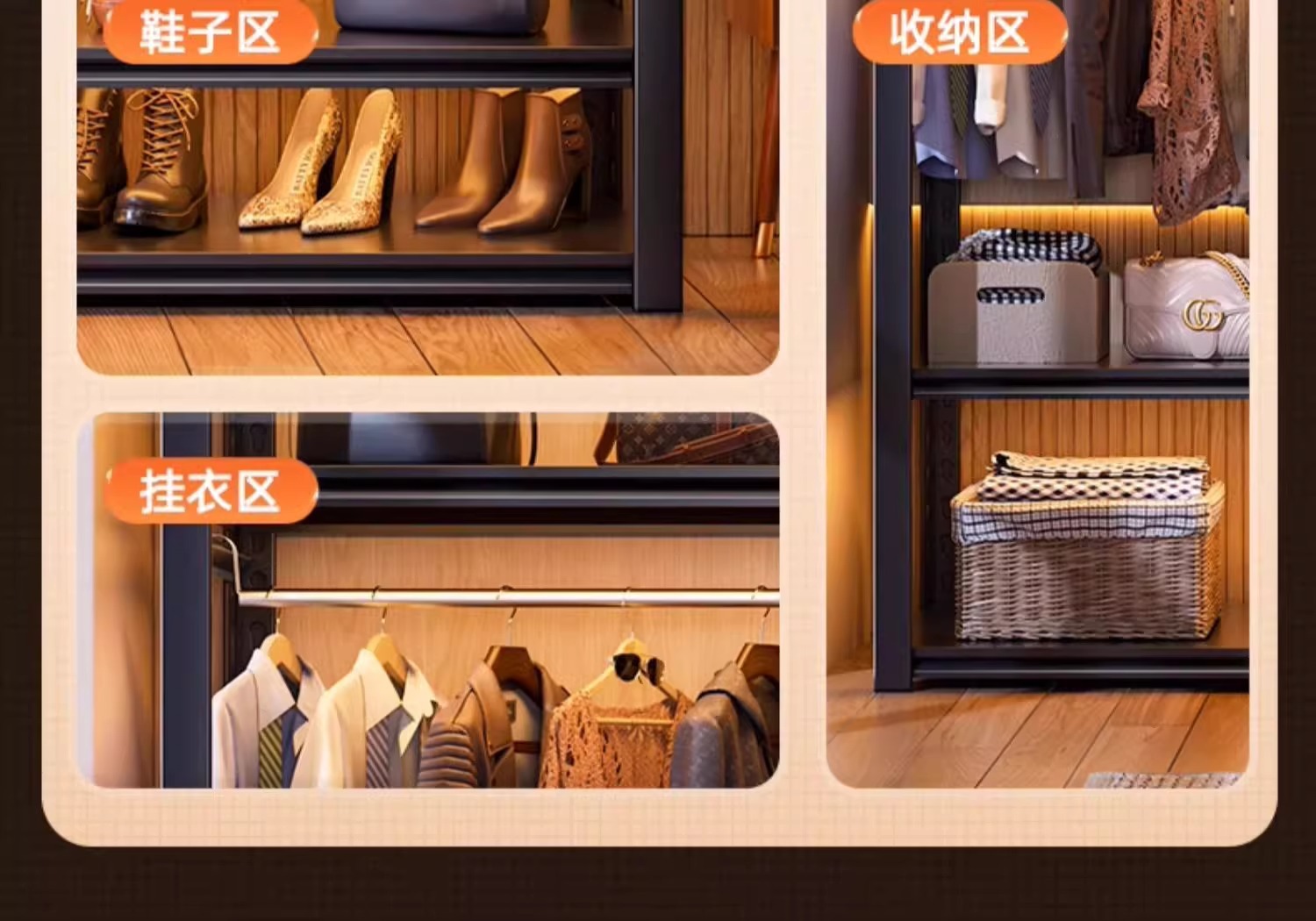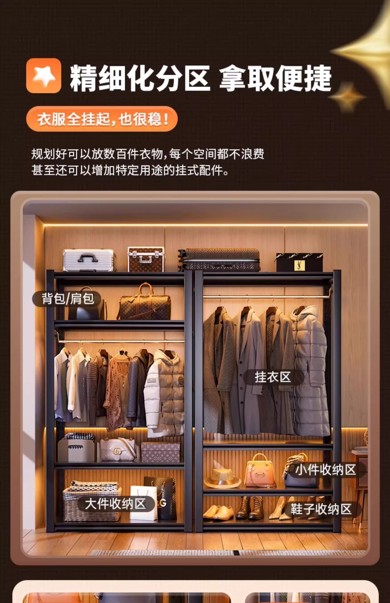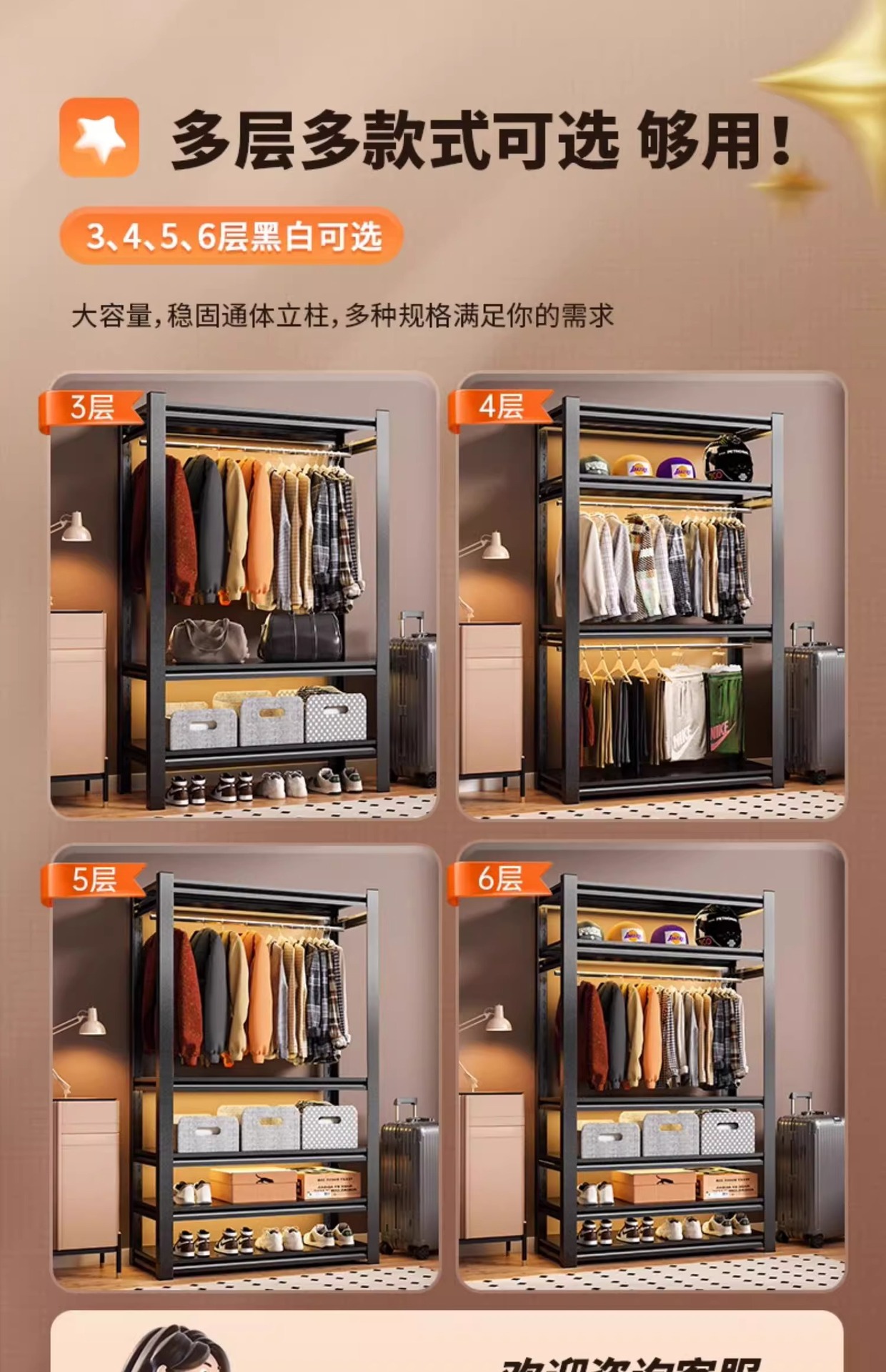 가정용 선반, 옷장, 간단한 조립, 개방형 침실 옷걸이, 가정용 발코니 수납 철제 선반