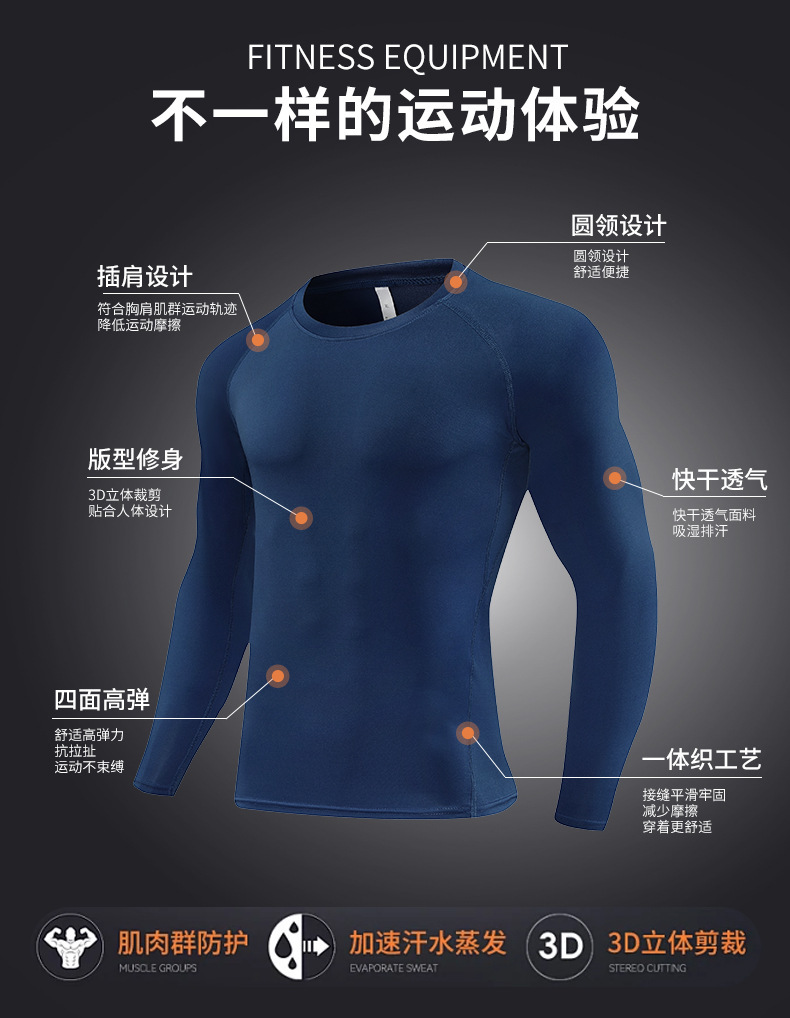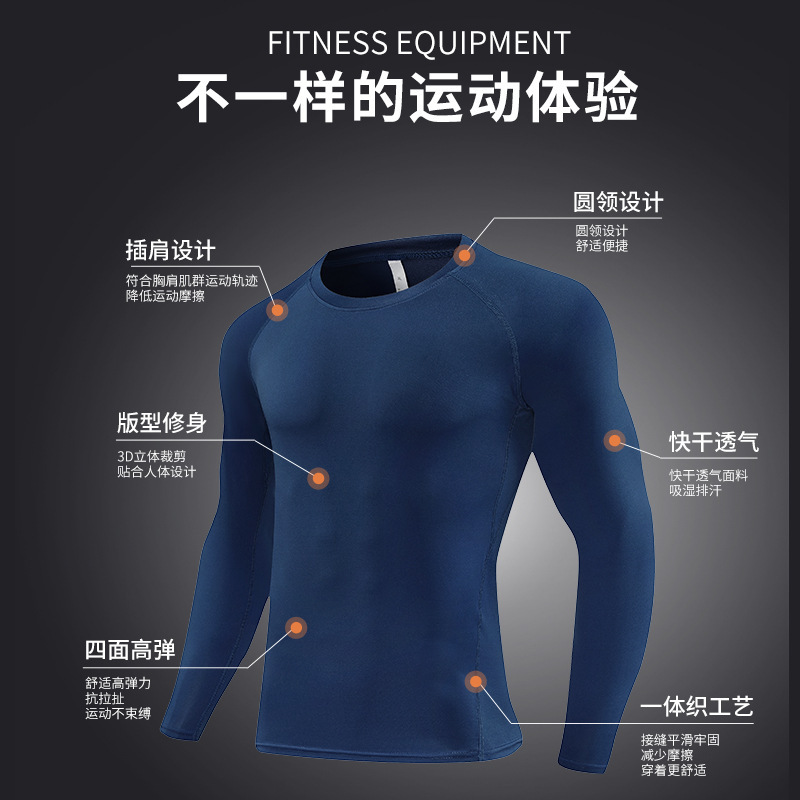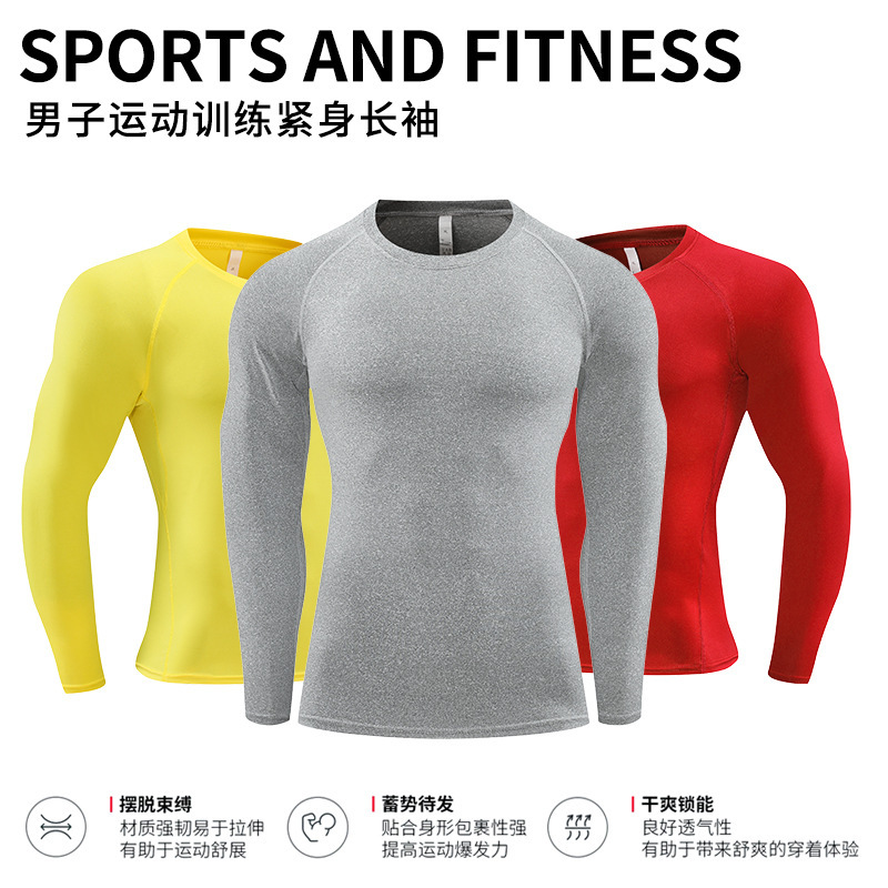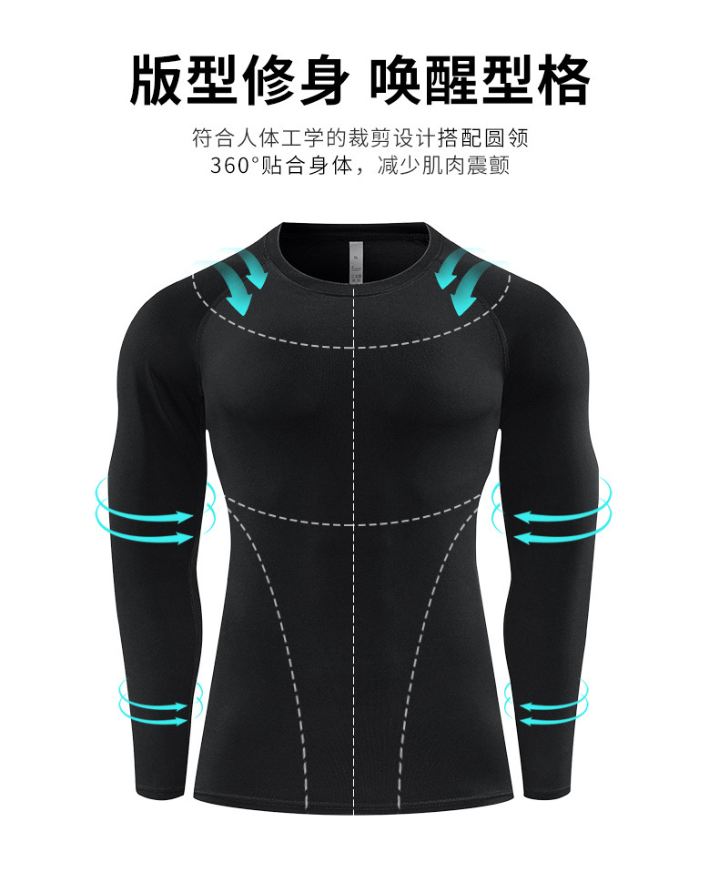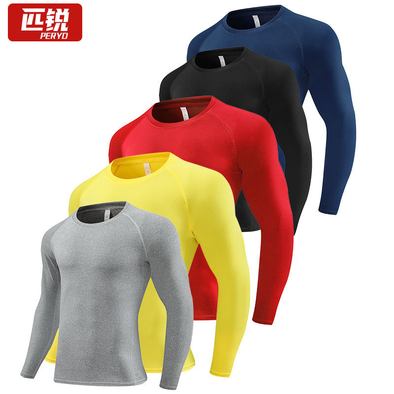 Amazon PRO 속건성 스타킹 남성용 프린트 긴팔 스포츠 러닝 피트니스 압축 의류 라운드 넥 티셔츠 도매