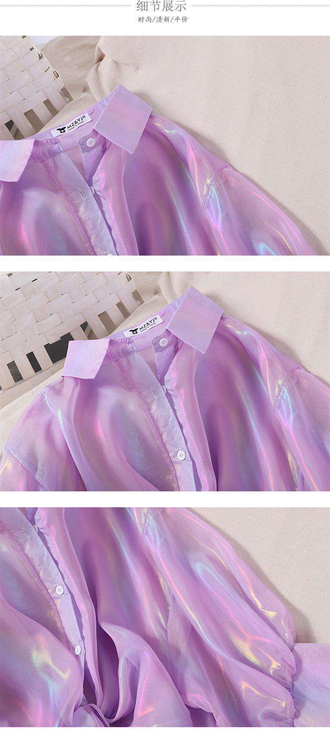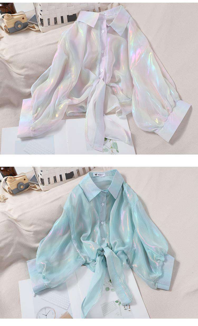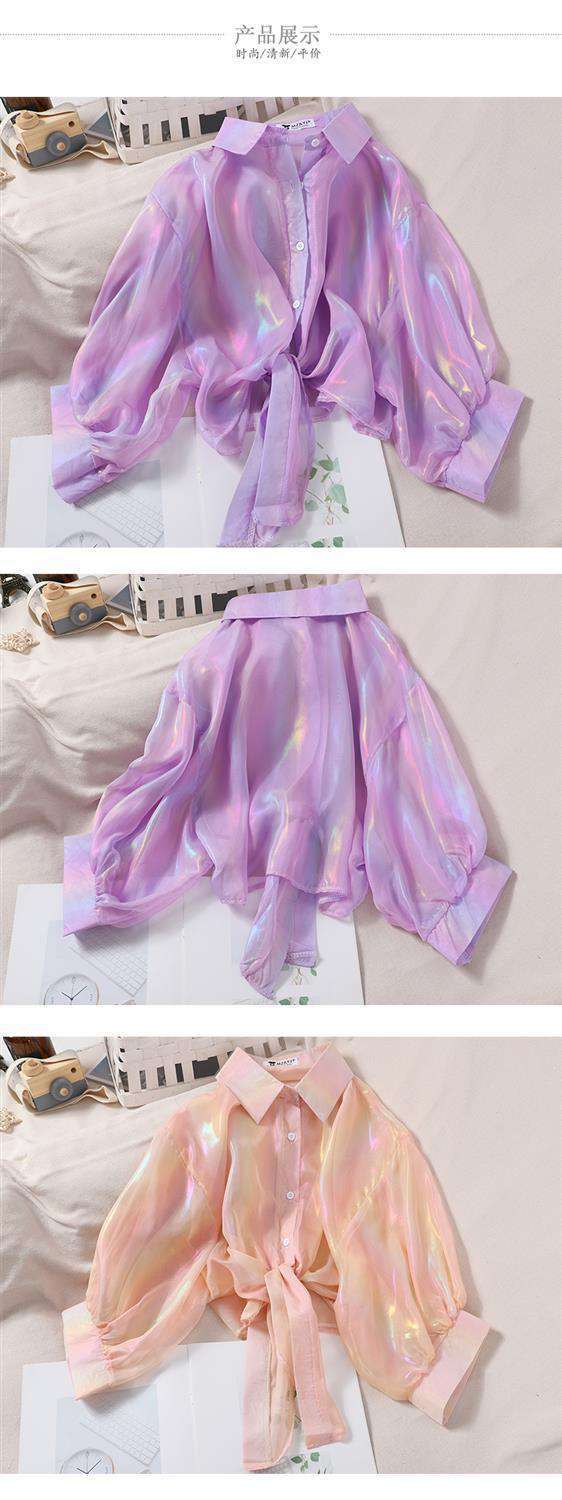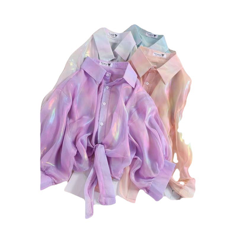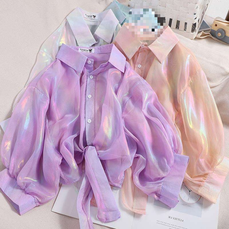 패셔너블한 무지개 광택 연령 감소 달콤한 소녀 자외선 차단 셔츠 여름 한국 스타일 슬림하고 상쾌한 카디건 쉬폰 셔츠