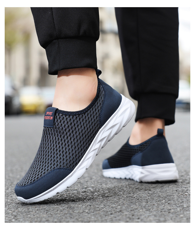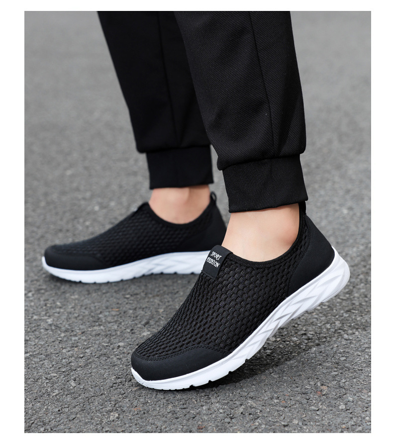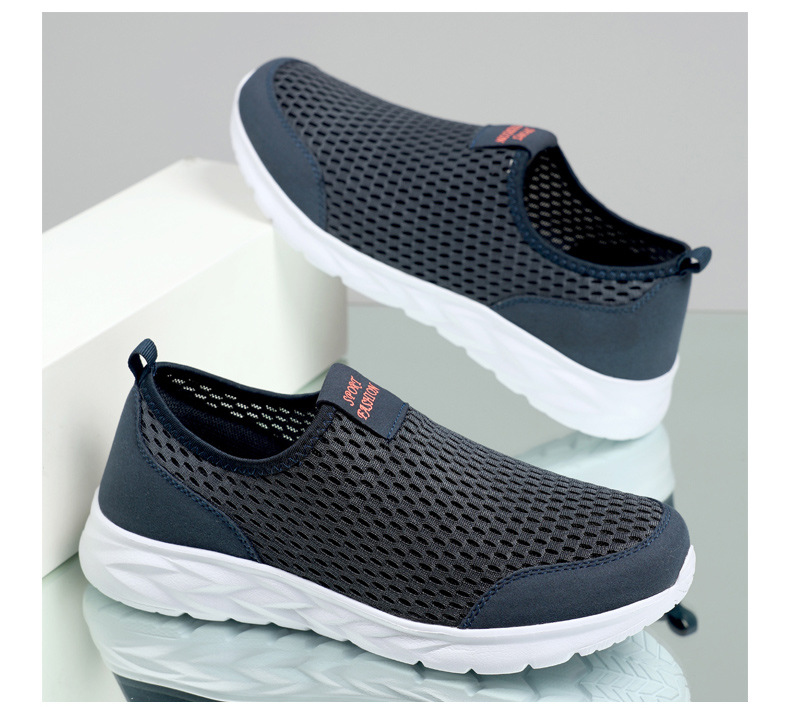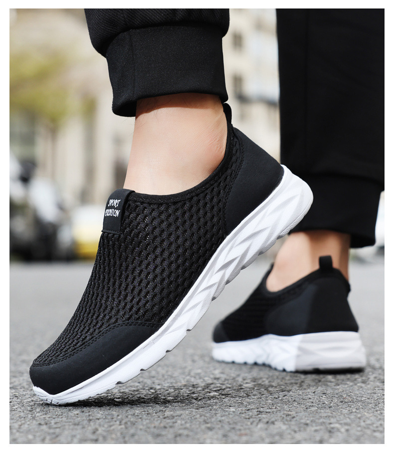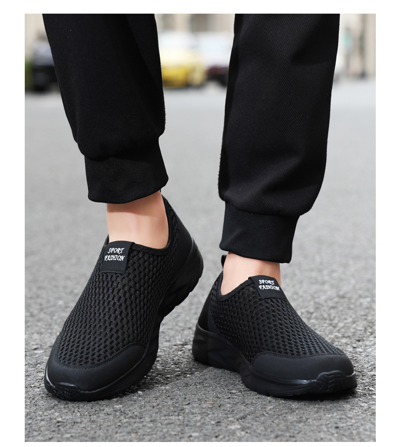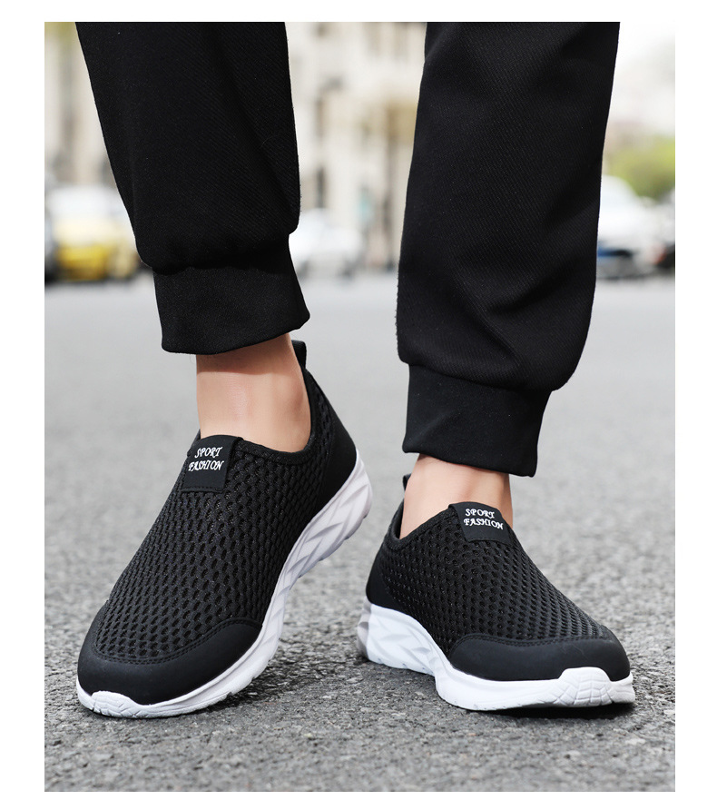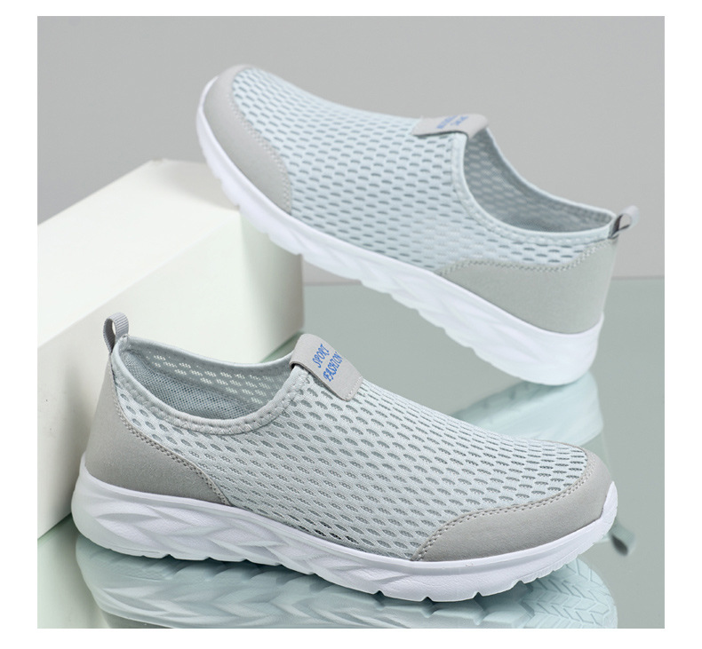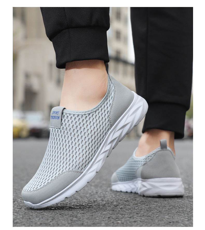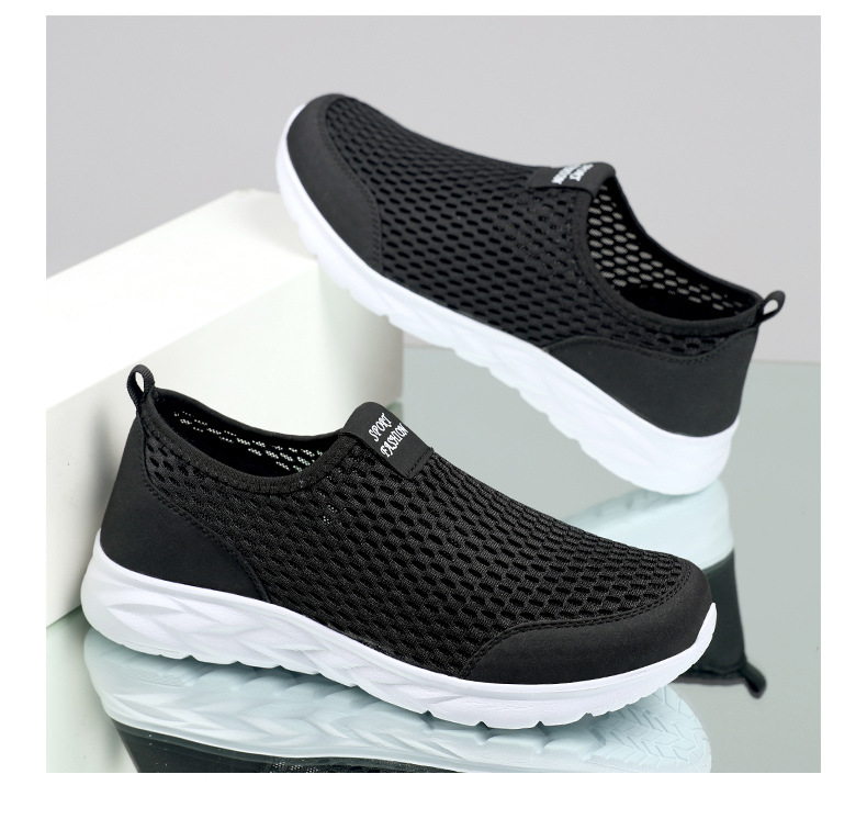 커플을 위한 크로스보더 남성용 사계절 로우탑 플라이 메쉬 슈즈, 경량 운동화, 대형 운동화, 원스텝 드롭쉬핑