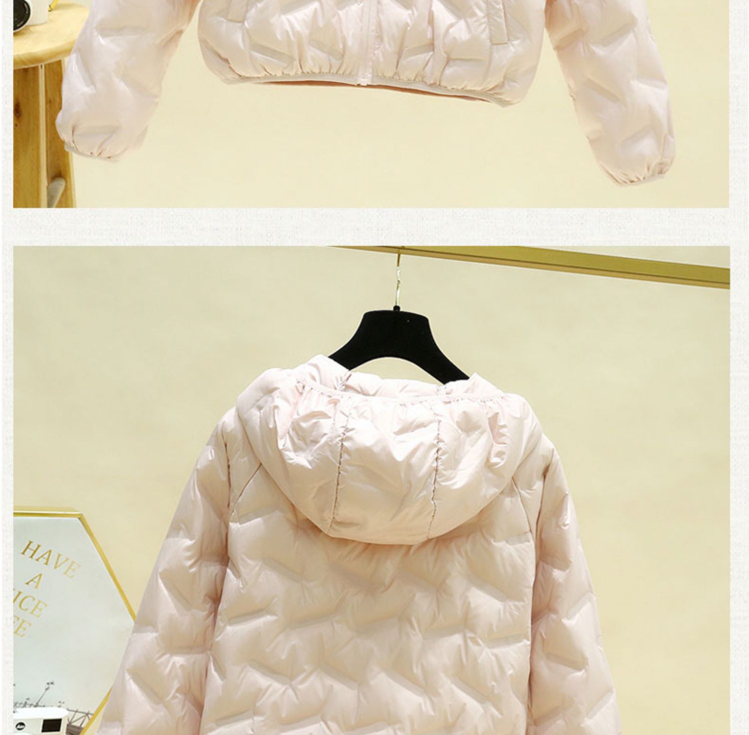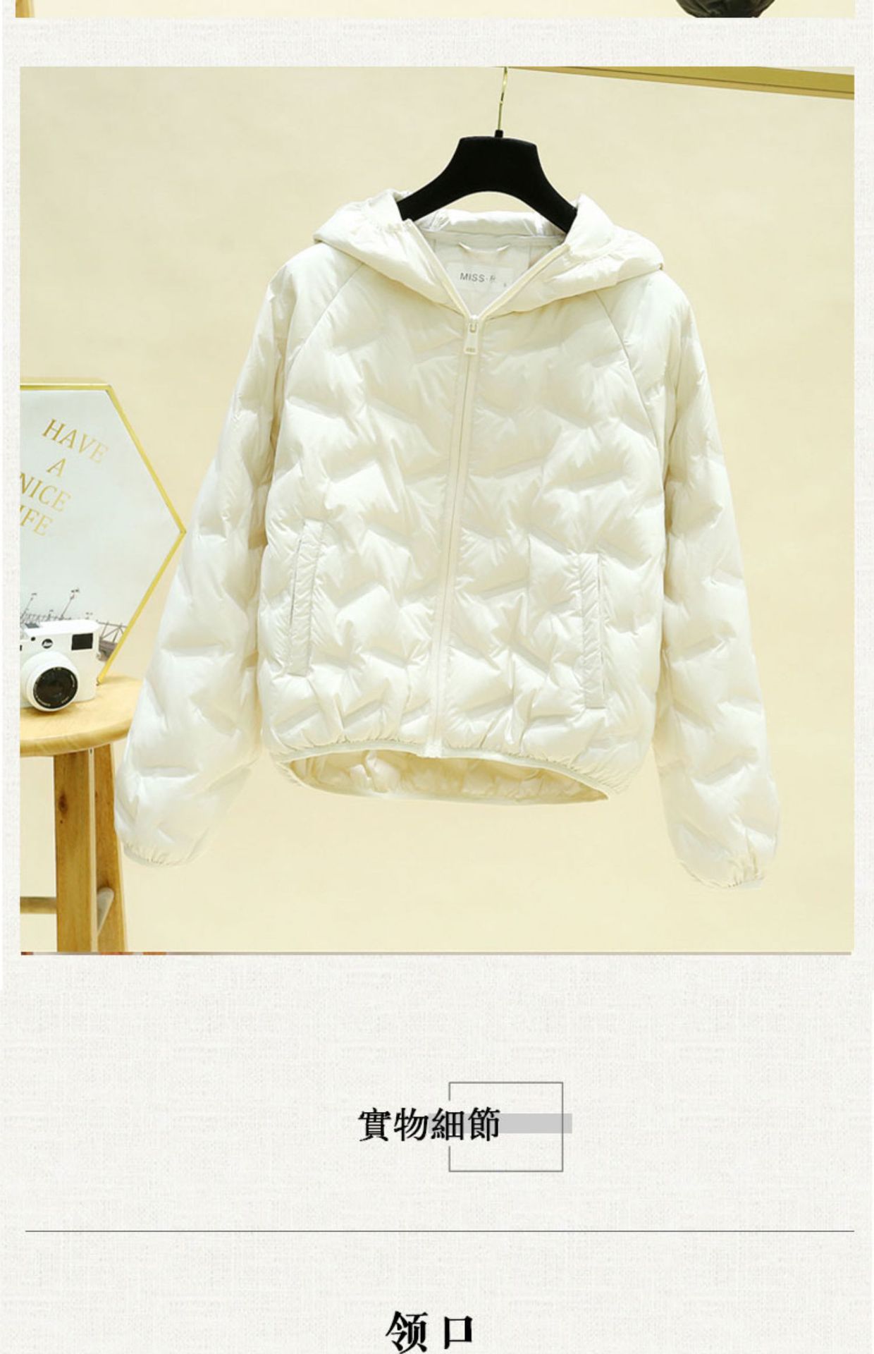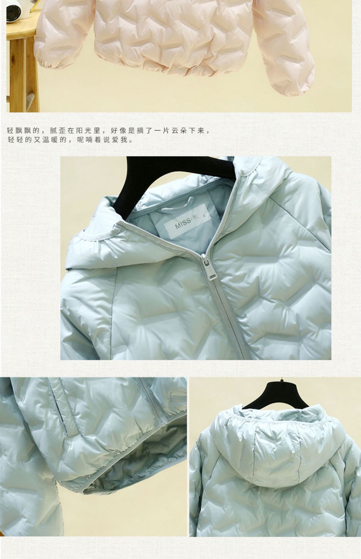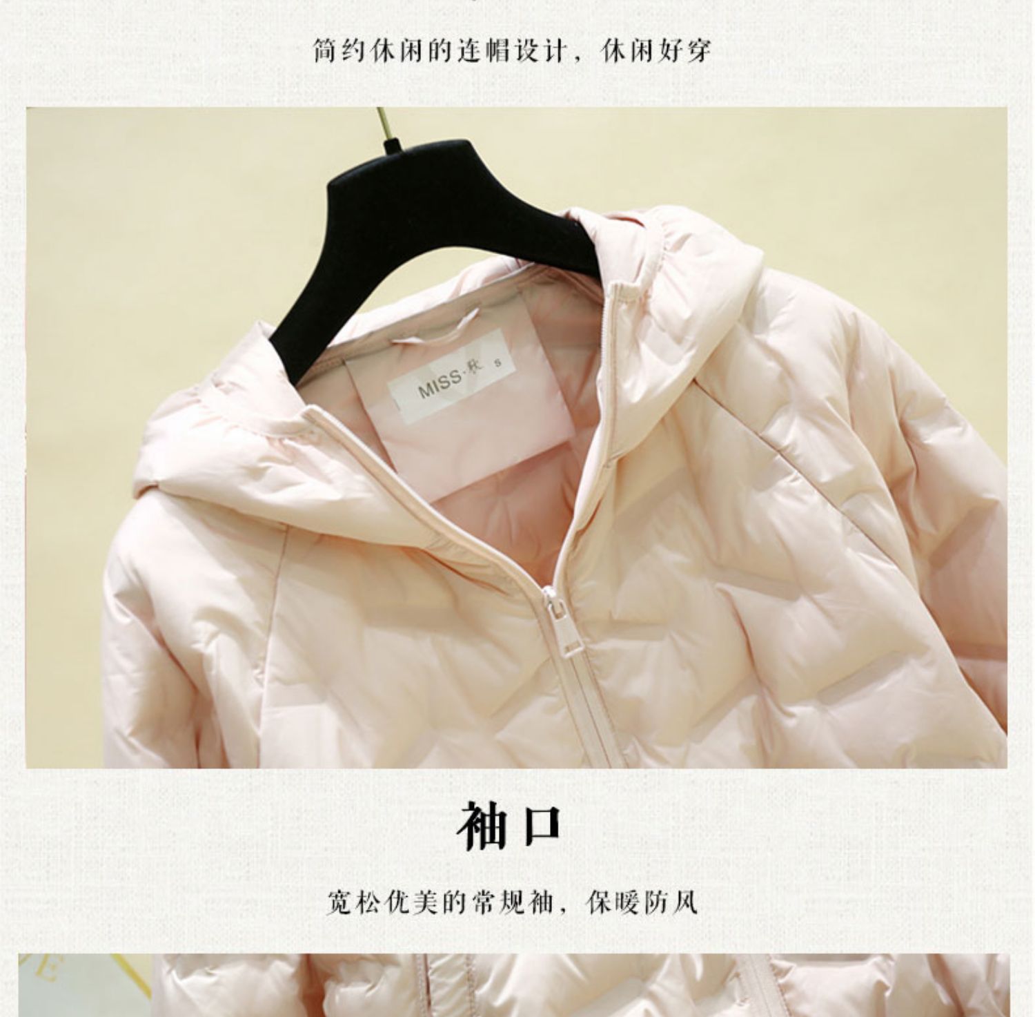 여성용 얇은 다운 자켓, 짧은 기장, 작은 체형을 위한 신상품, 엠보싱 후드, 겨울용, 화이트 덕다운, 보온성, 슬림핏, 방한