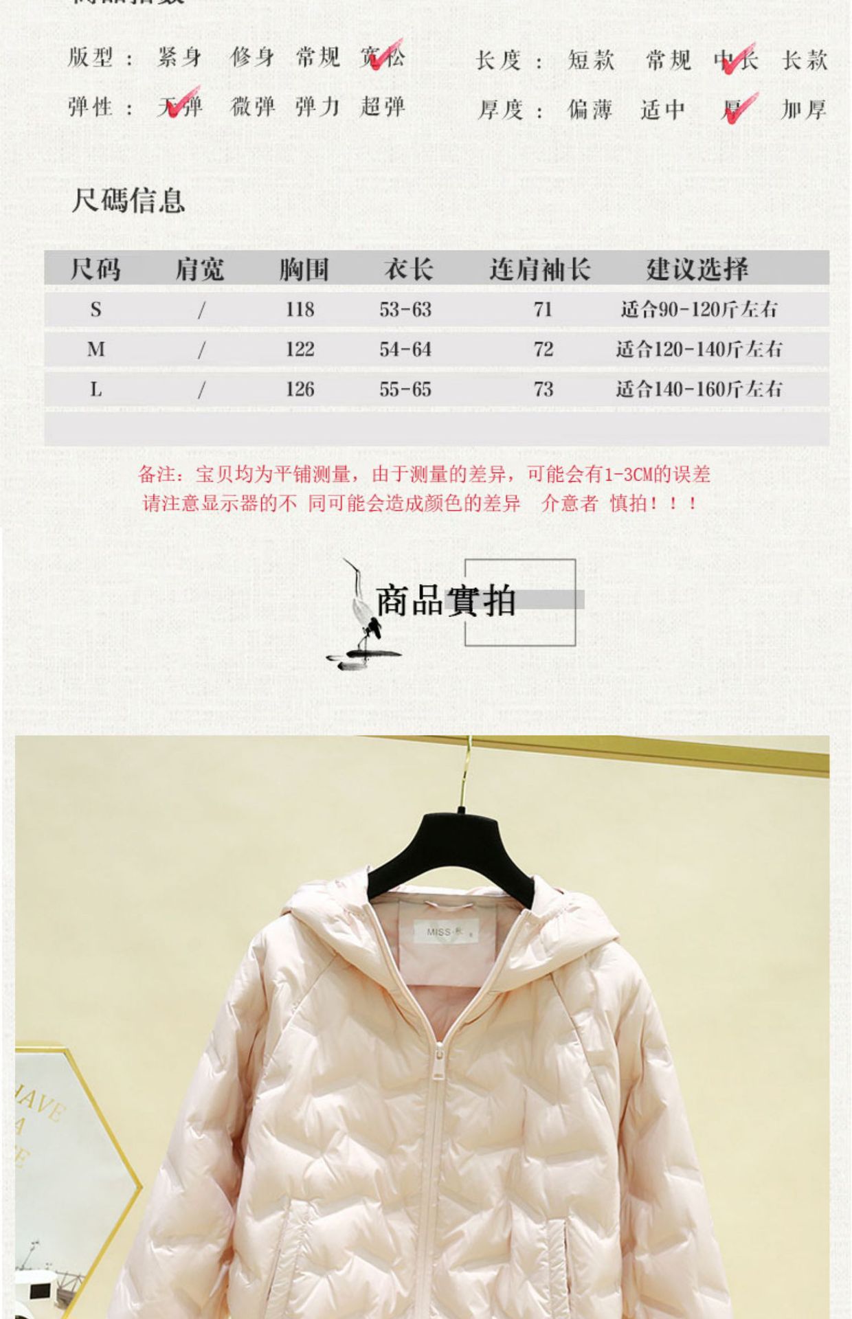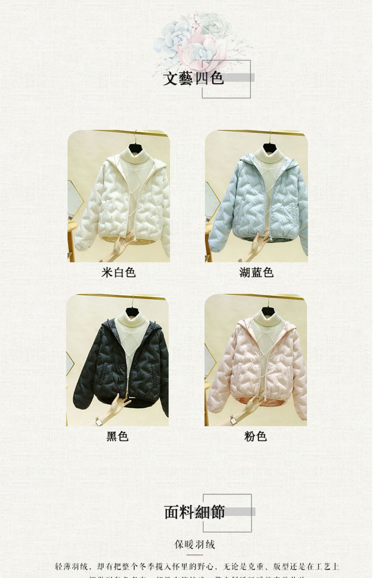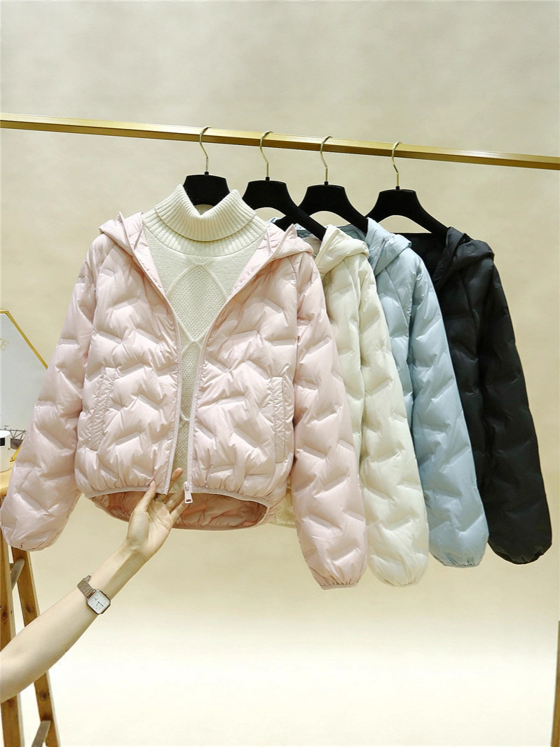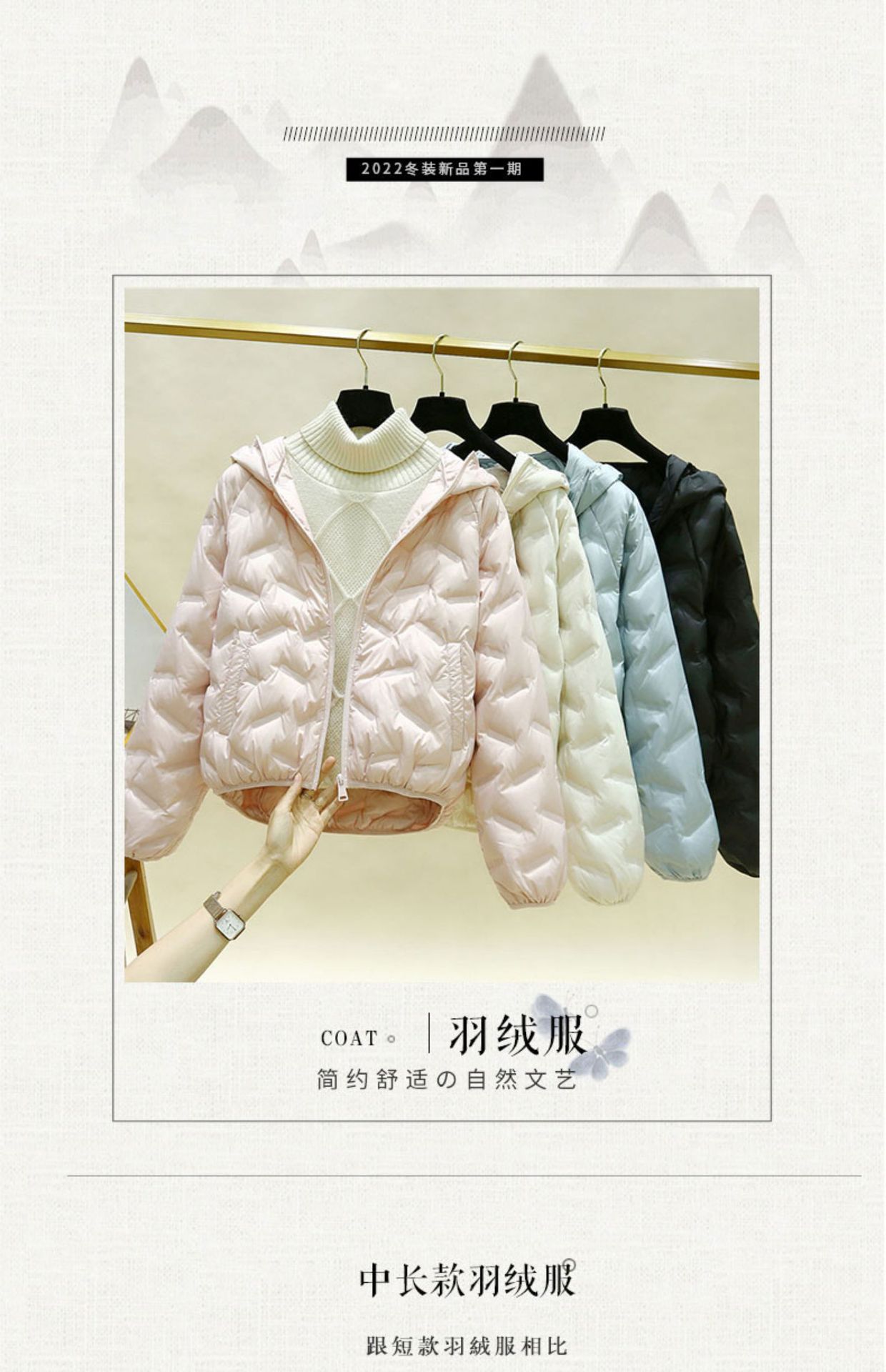 여성용 얇은 다운 자켓, 짧은 기장, 작은 체형을 위한 신상품, 엠보싱 후드, 겨울용, 화이트 덕다운, 보온성, 슬림핏, 방한