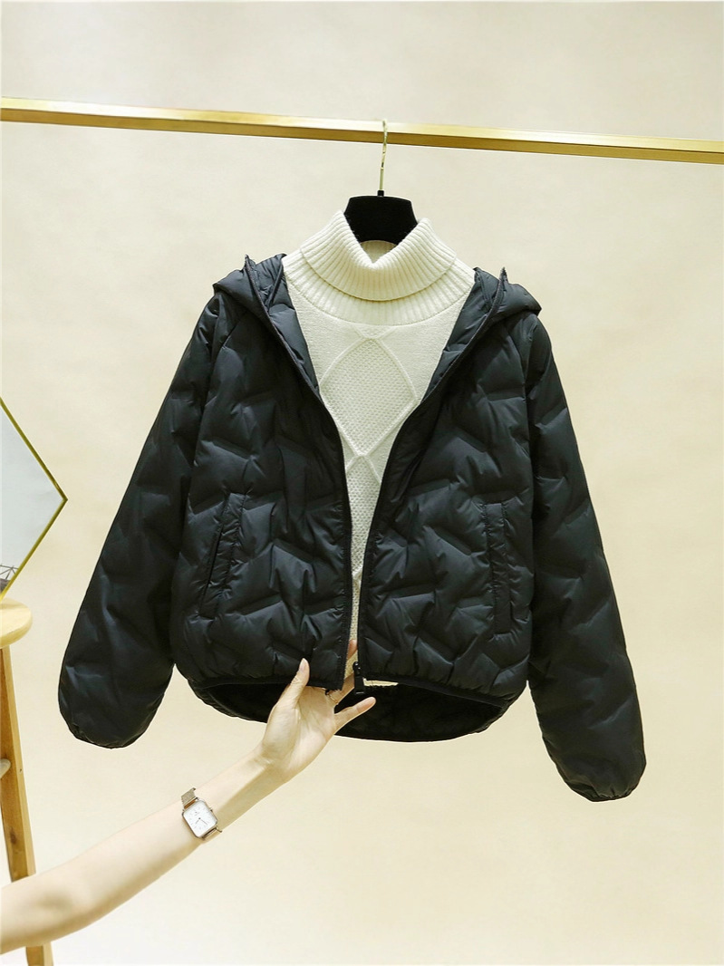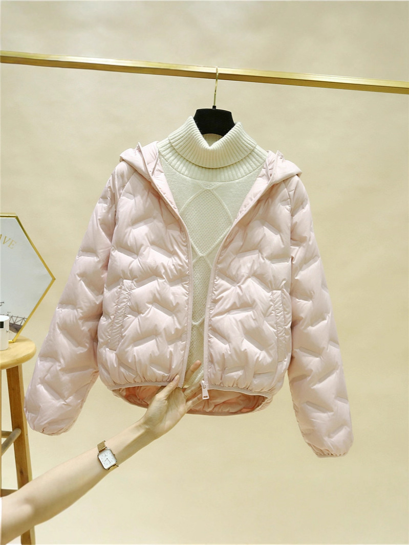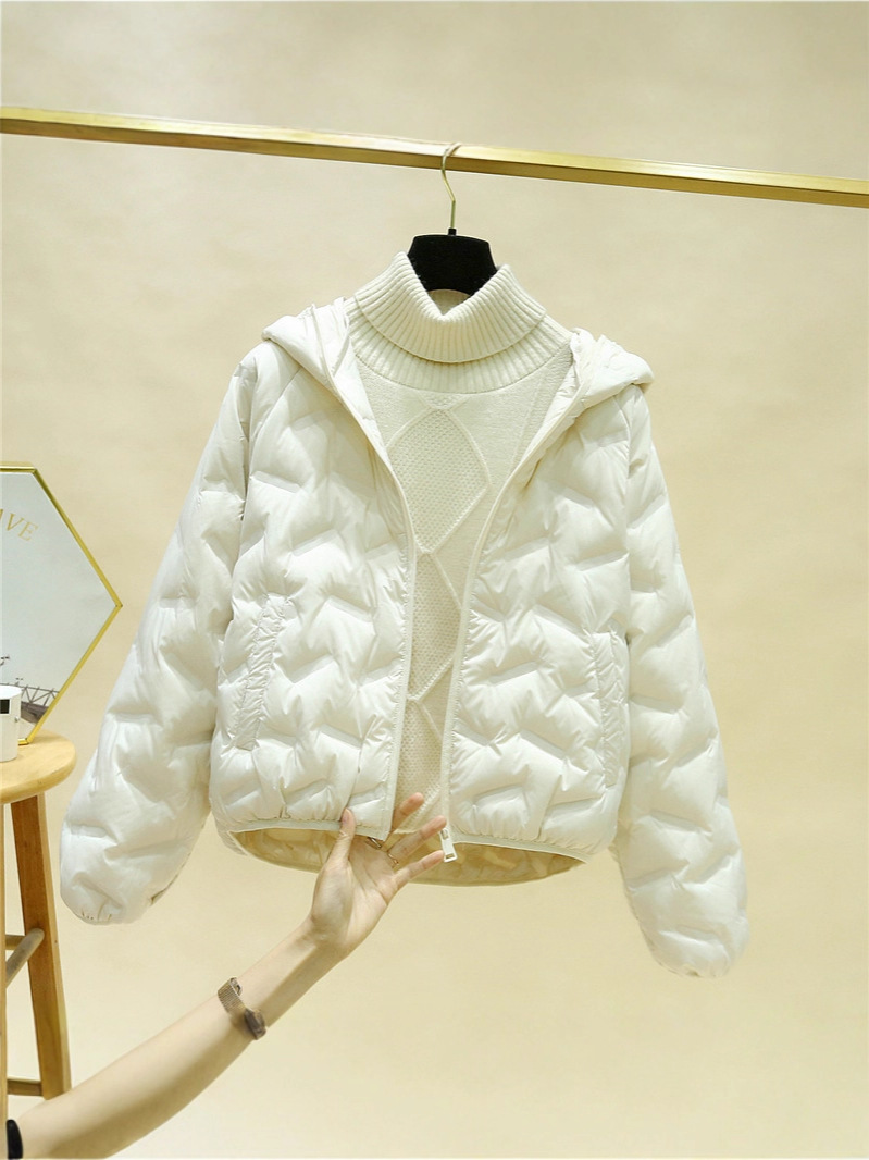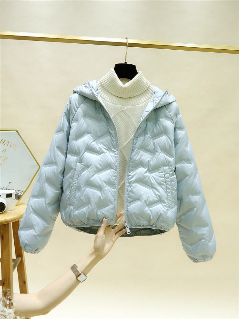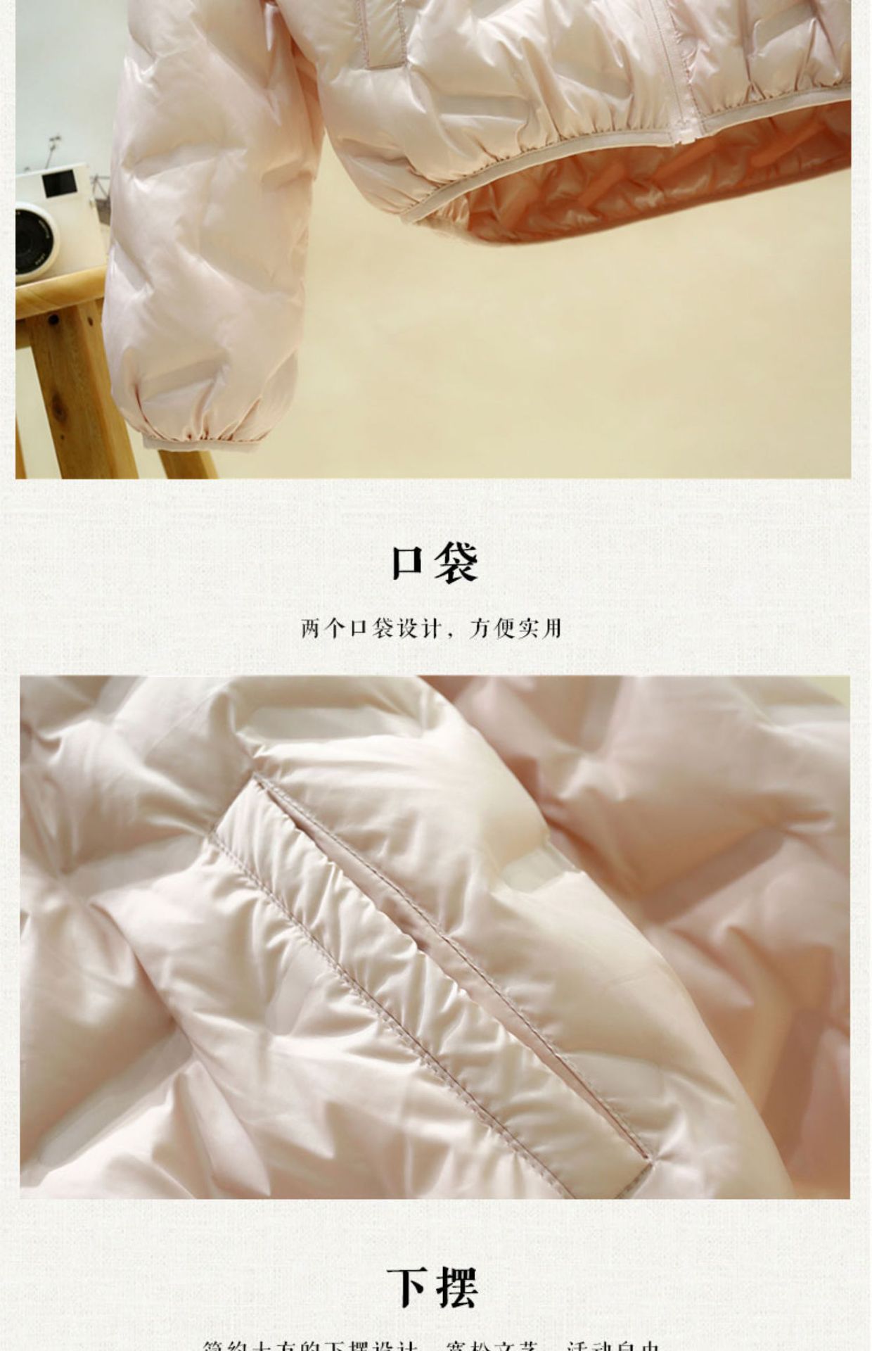 여성용 얇은 다운 자켓, 짧은 기장, 작은 체형을 위한 신상품, 엠보싱 후드, 겨울용, 화이트 덕다운, 보온성, 슬림핏, 방한