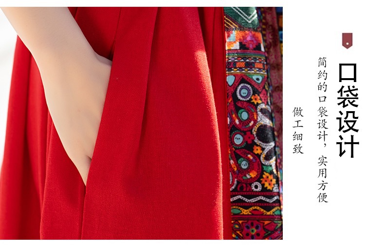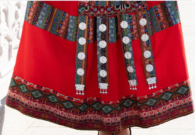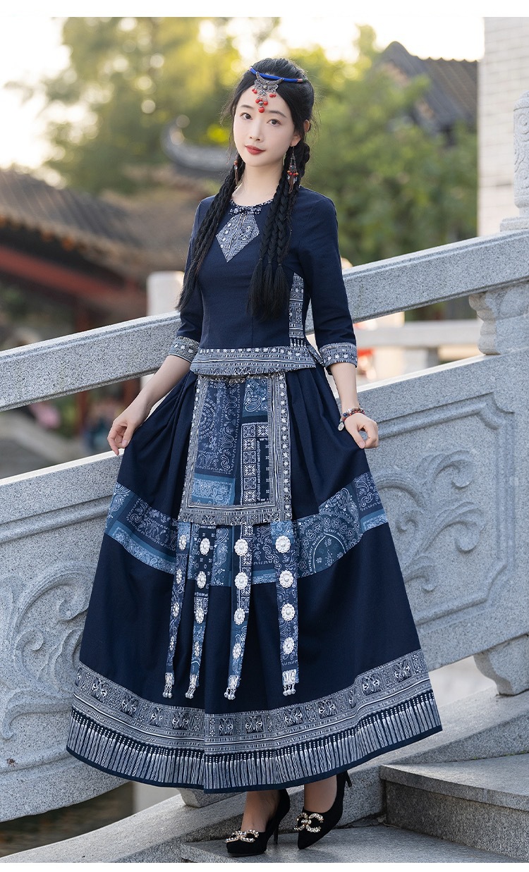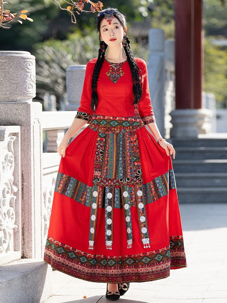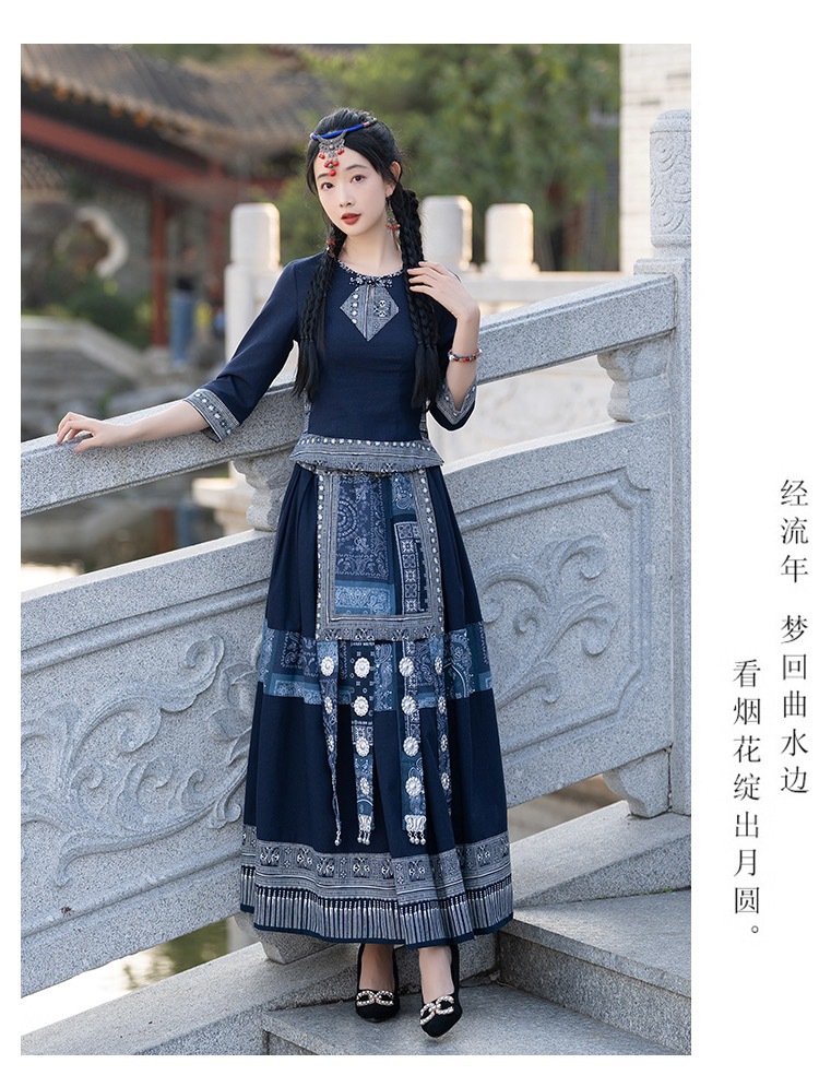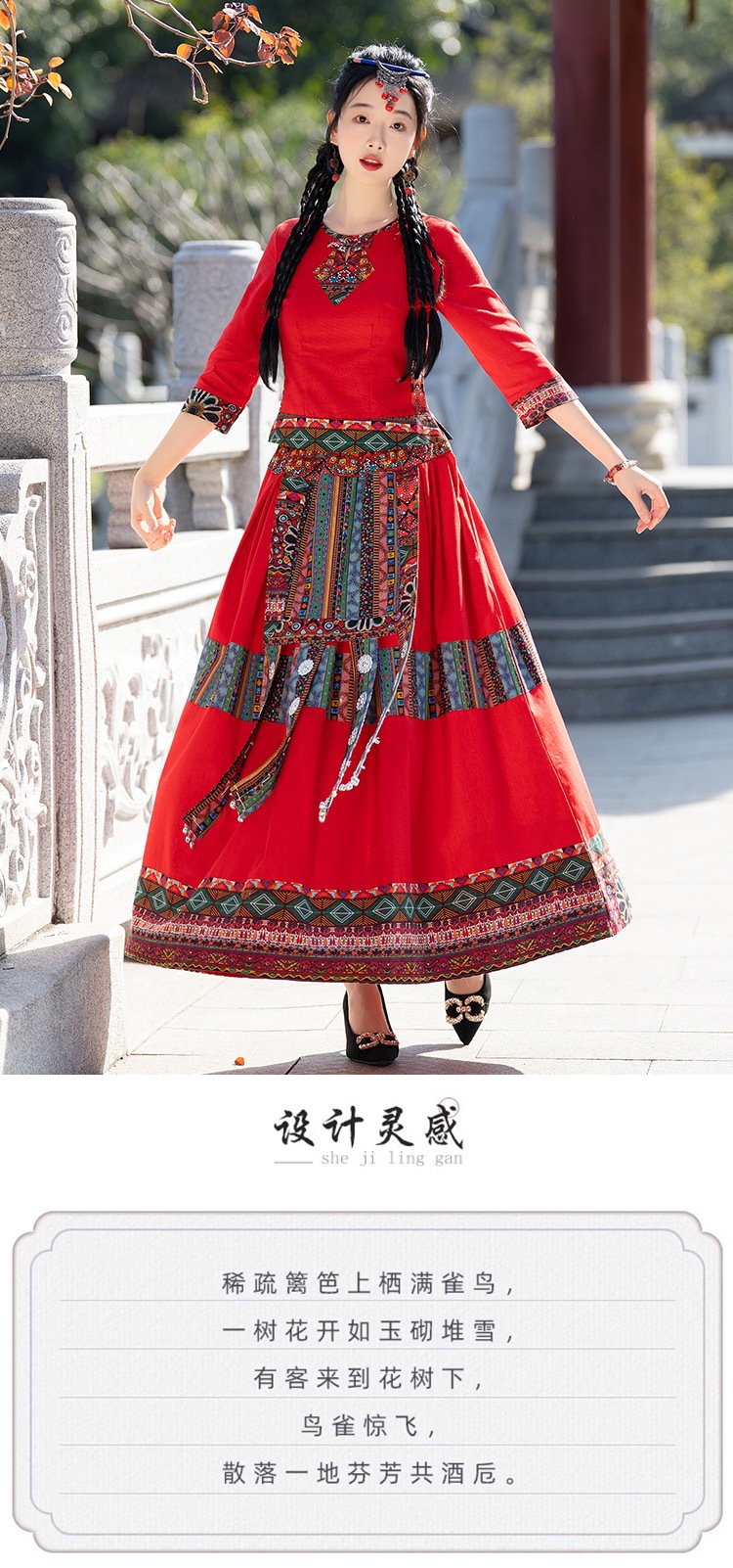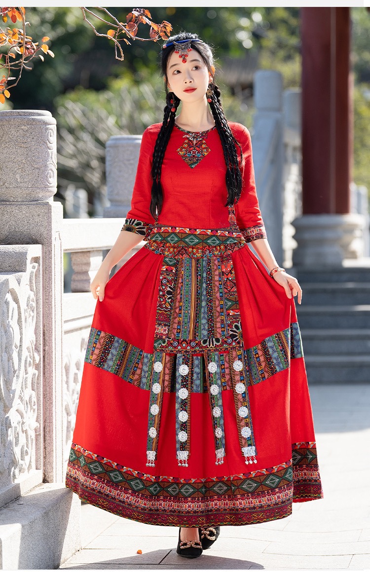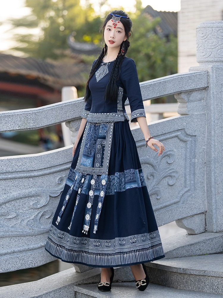 여성을 위한 중국 스타일 슈트, 민족 스타일 자수 탑과 스커트 투피스 세트, 봄 여름 공연 의상, 면 및 린넨 댄스 의상