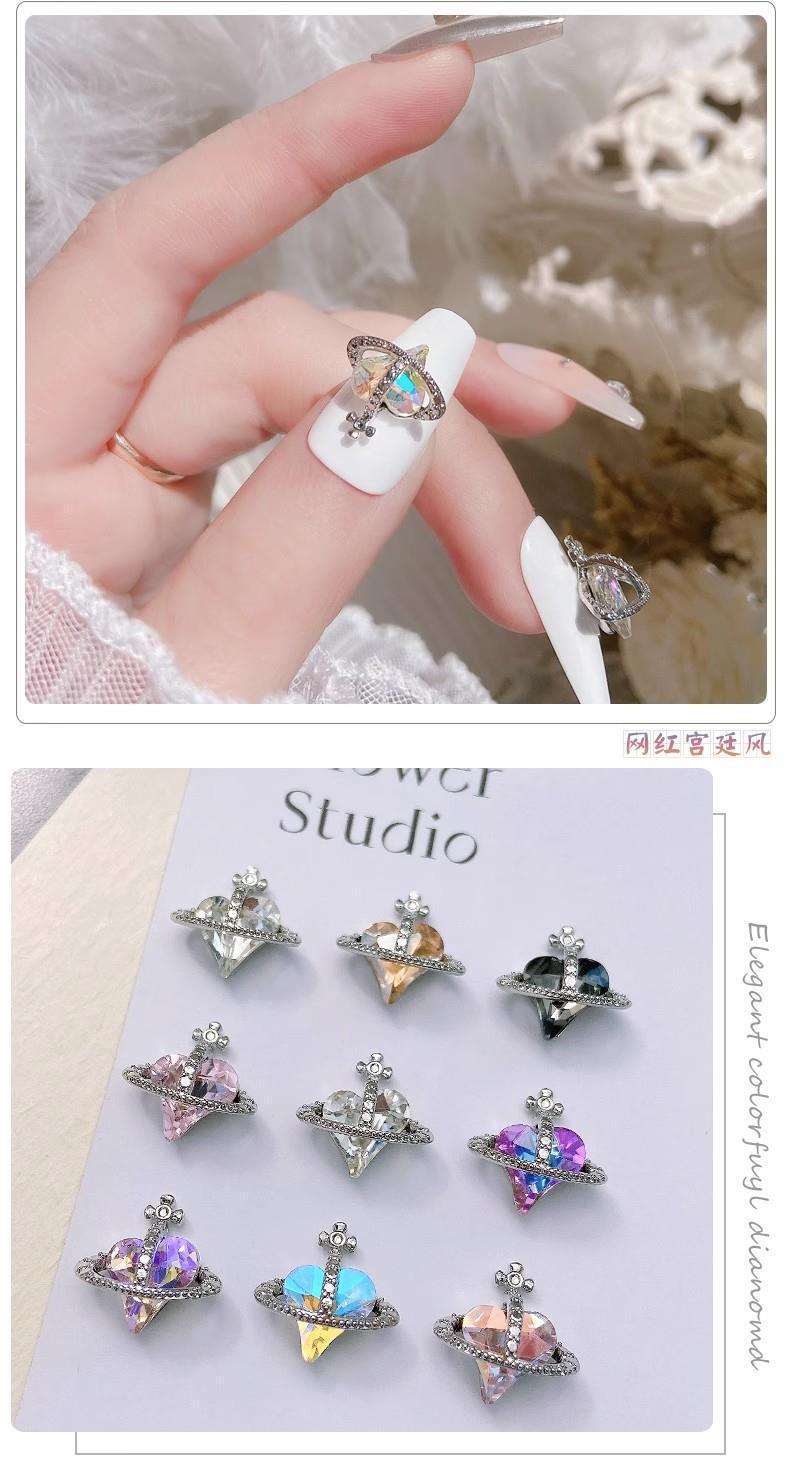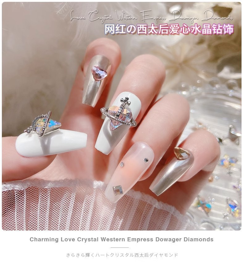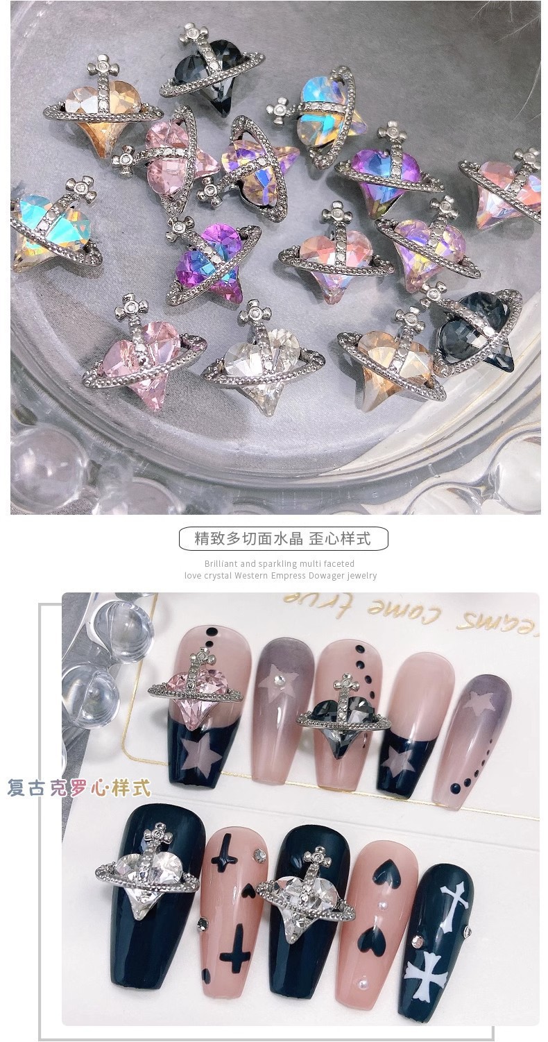 인터넷 연예인 황후 네일 아트 합금 쥬얼리 새로운 입체 틀린 하트 다이아몬드 레트로 네일 쥬얼리 액세서리 도매