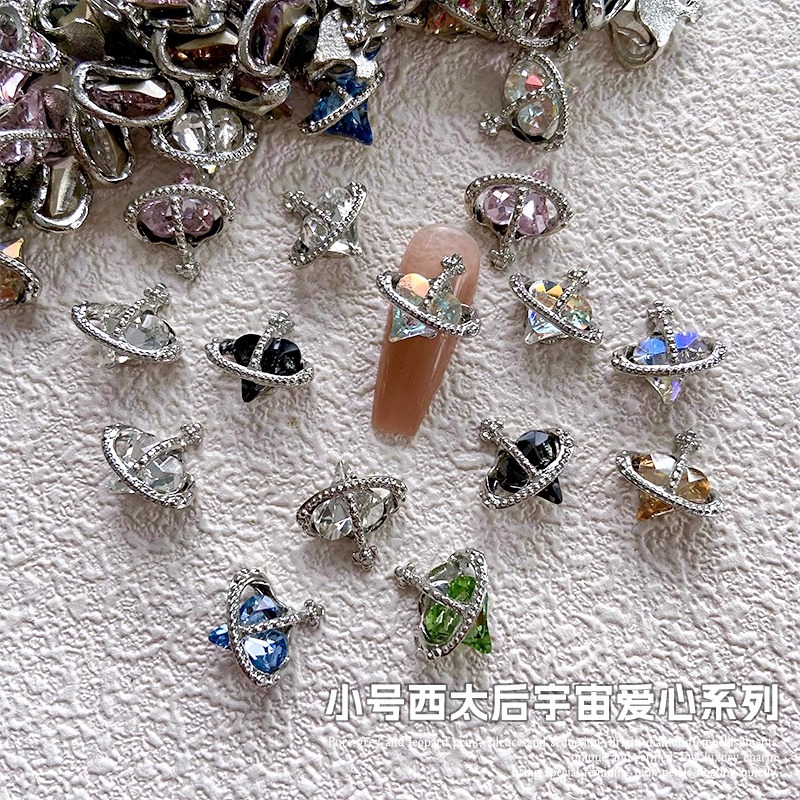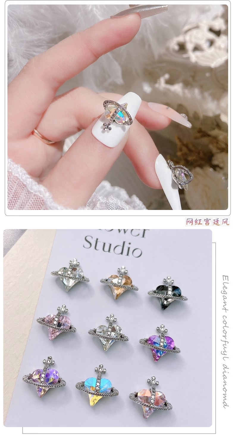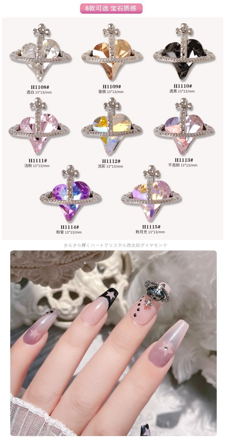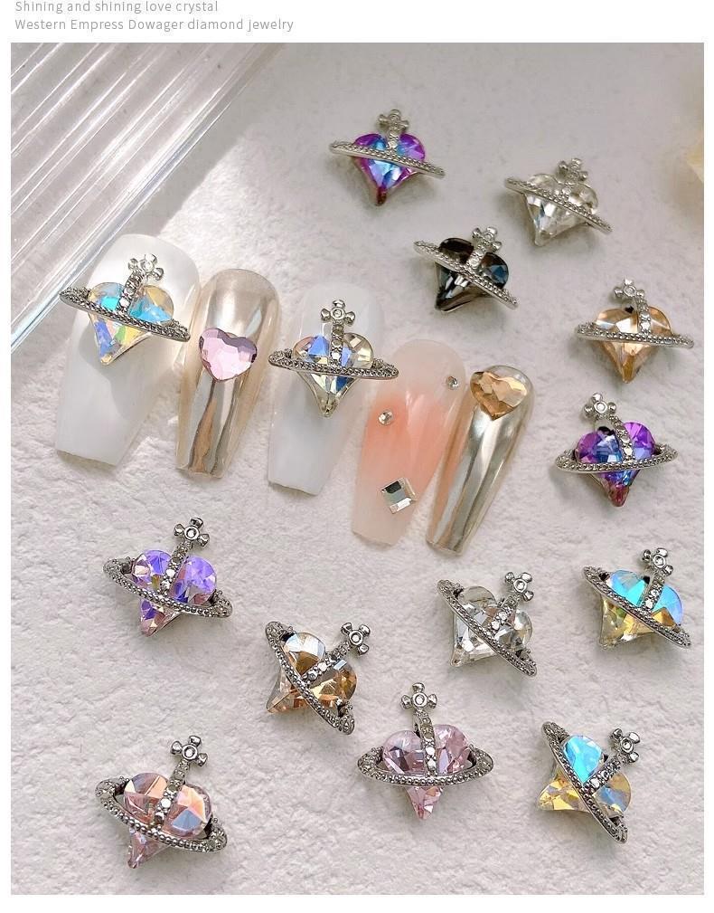 인터넷 연예인 황후 네일 아트 합금 쥬얼리 새로운 입체 틀린 하트 다이아몬드 레트로 네일 쥬얼리 액세서리 도매