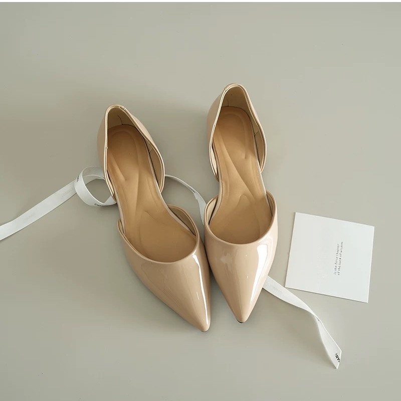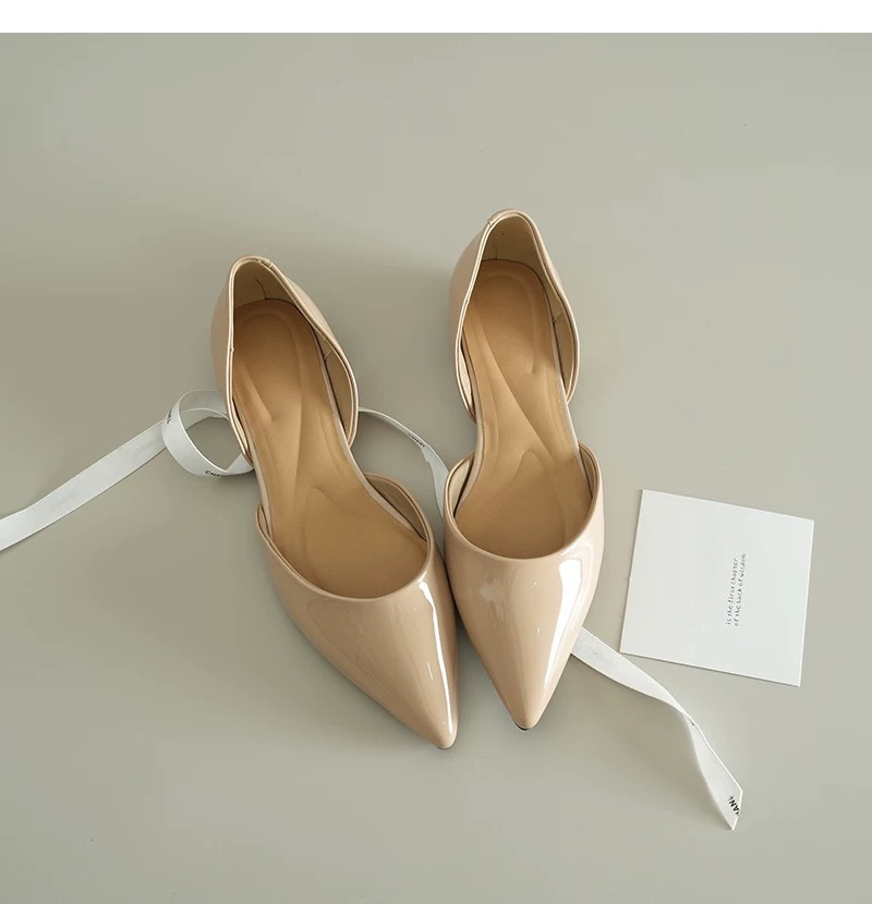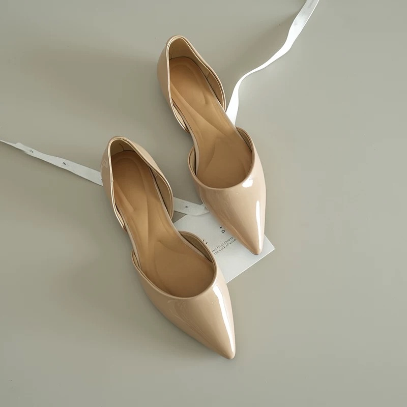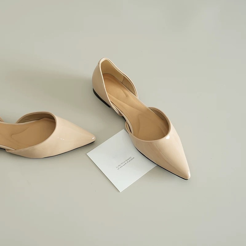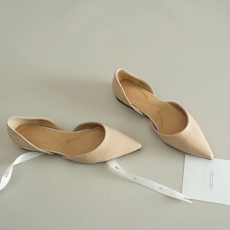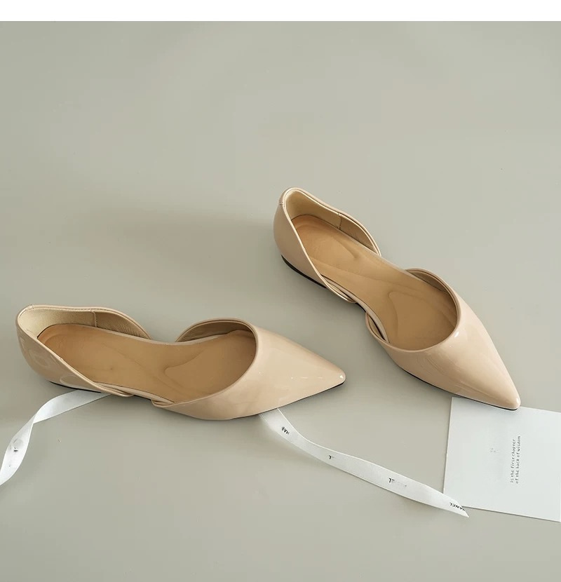프렌치 스타일의 아름다운 누드 컬러의 포인티드 토 중공 슈즈, 심플하고 활용도가 높은 플랫 바닥, 편안하고 발이 피곤하지 않은 여름 여성화
