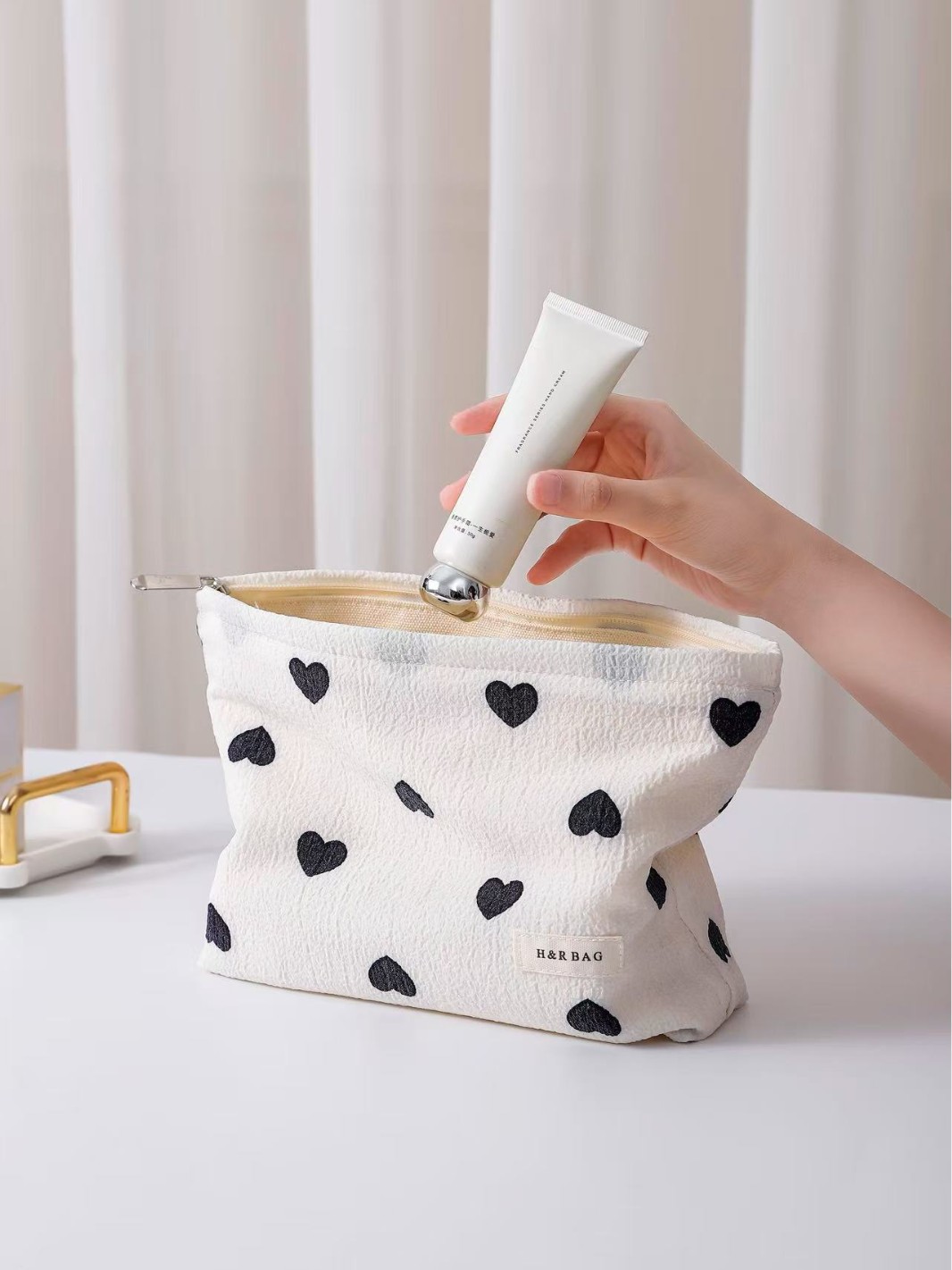 새로운 스타일의 신선하고 달콤한 소녀 사랑 화장품 가방 휴대용 스킨 케어 제품 보관 가방 클러치 백 동전 지갑