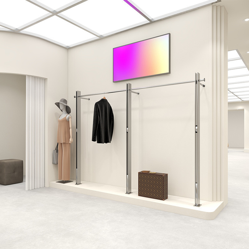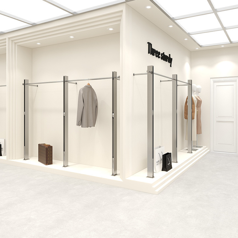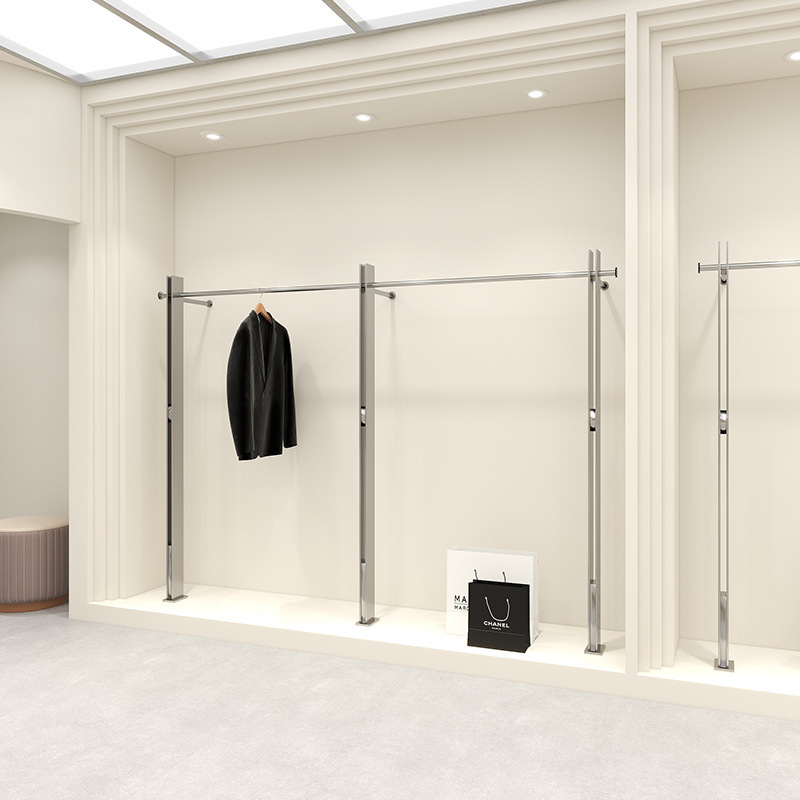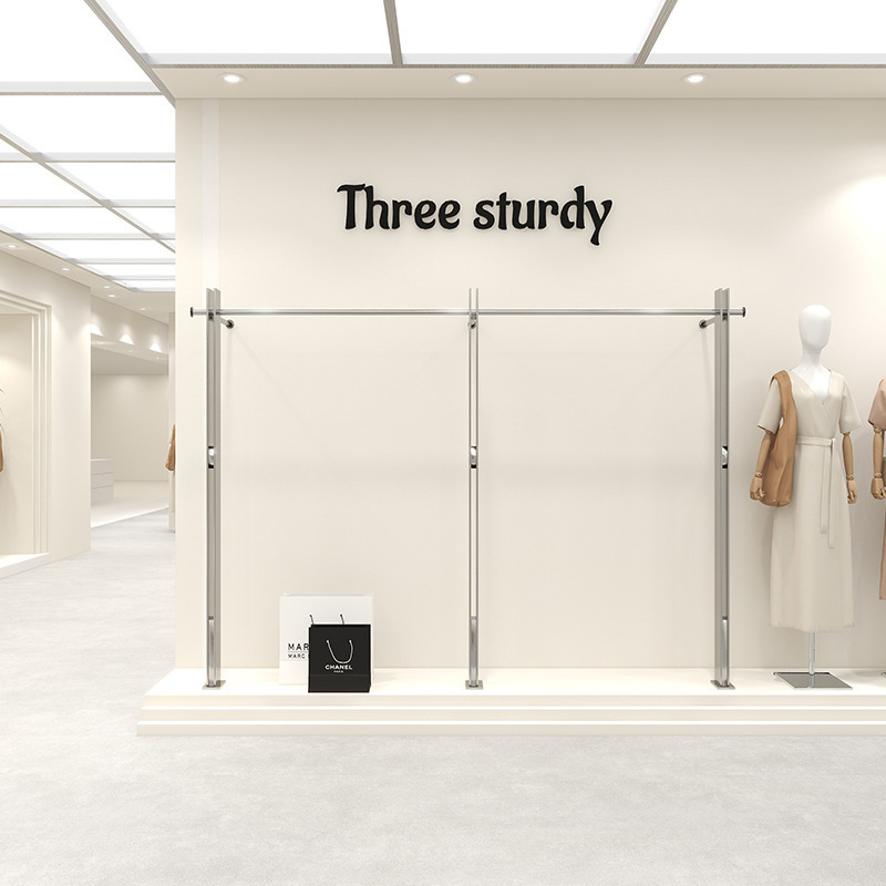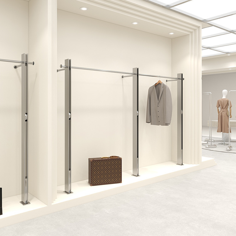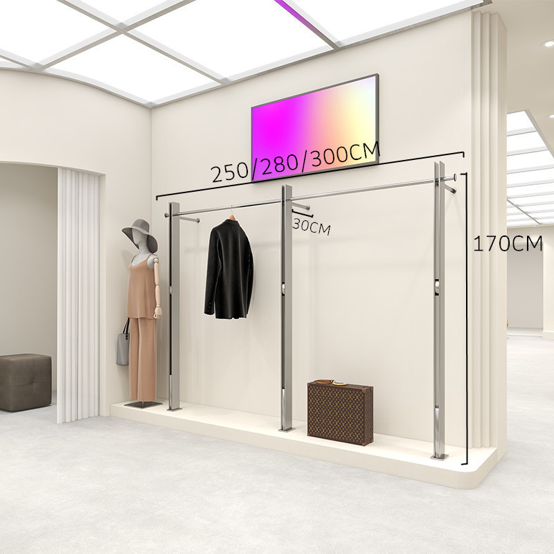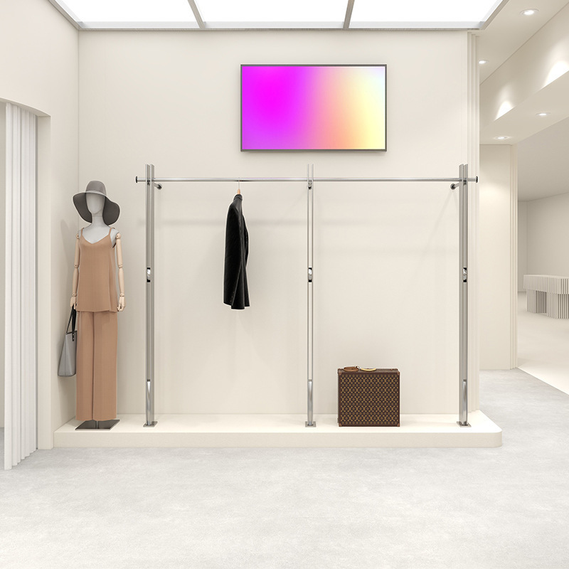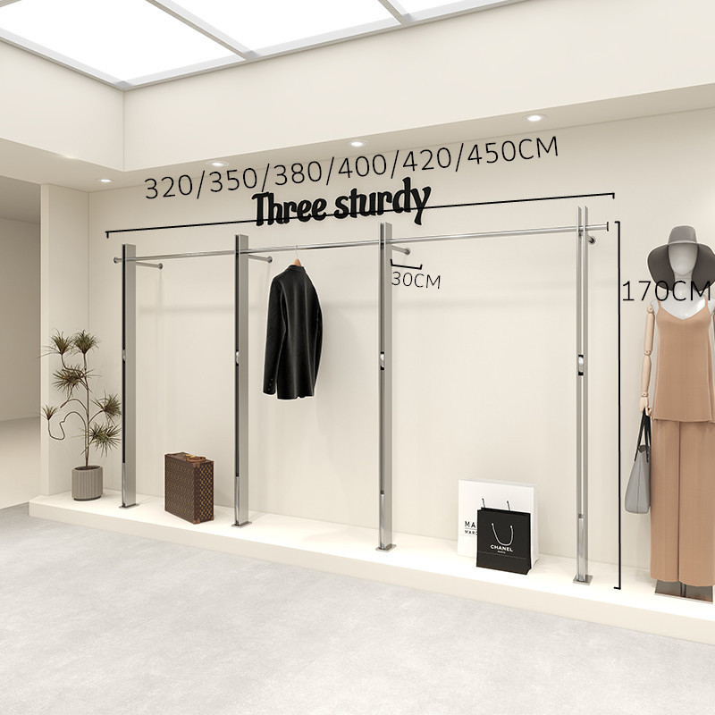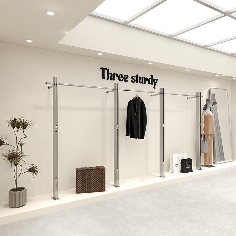 의류 매장 디스플레이 랙 스테인레스 스틸 벽걸이 형 바닥 선반 여성 의류 매장 디스플레이 옷 걸이 고급