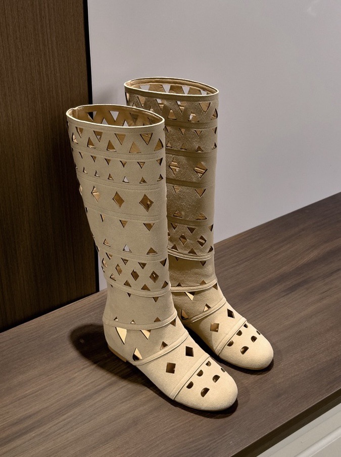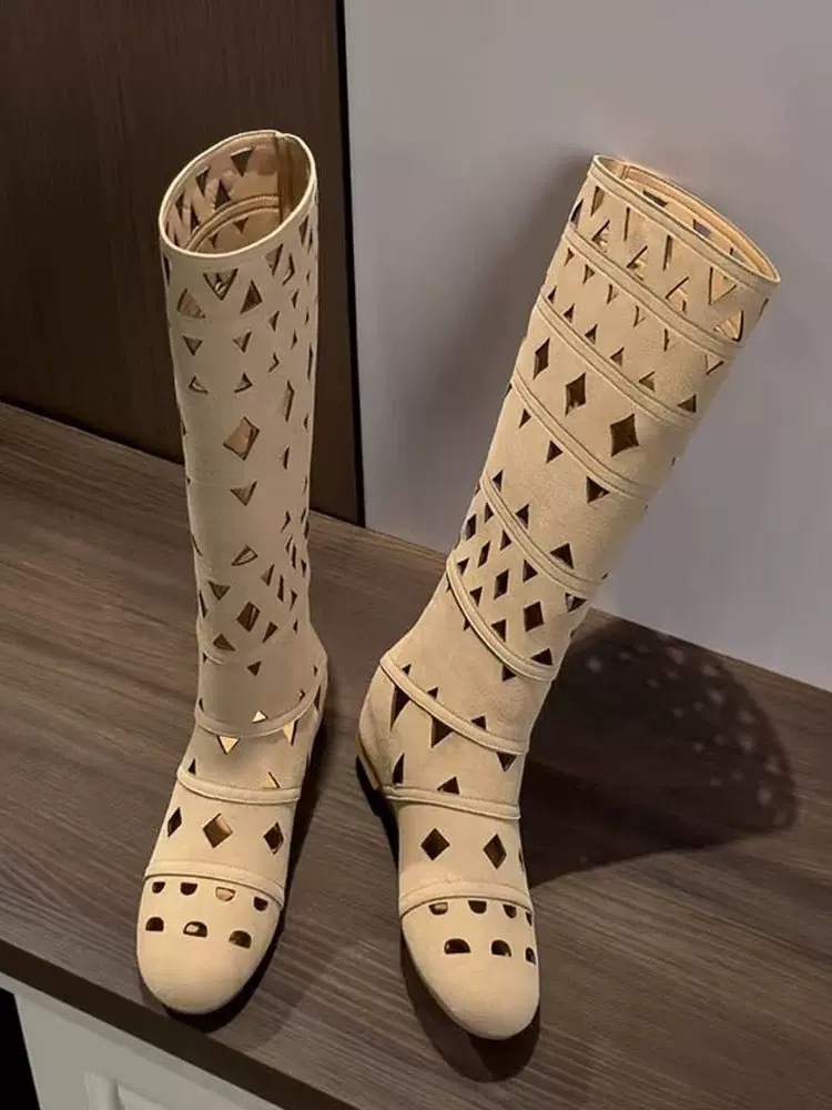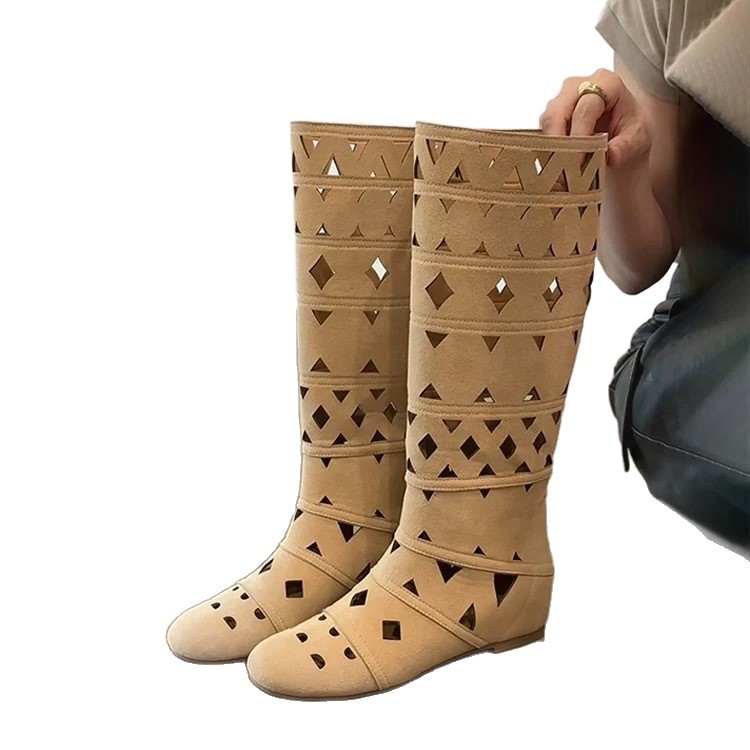 재고 있음, 즉시 배송~보헤미안 스타일 틈새 디자인 여성용 키높이 나이트부츠, 속이 빈 조각 슬리밍 부츠