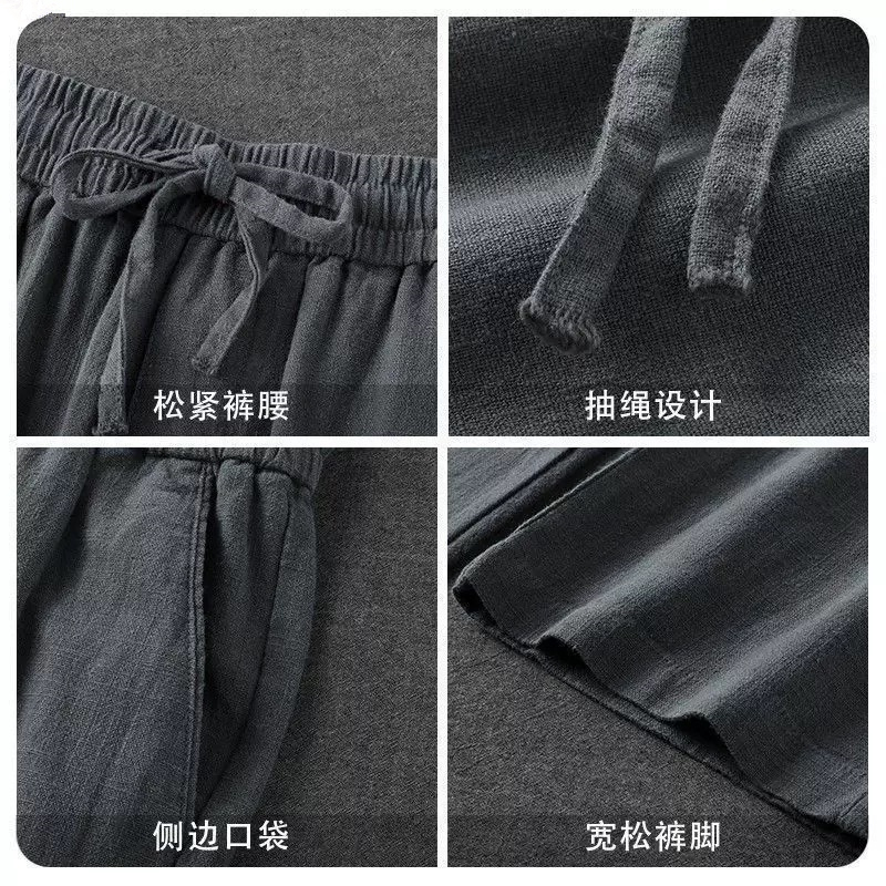 린넨 팬츠 남성 루즈한 면 및 린넨 남성 캐주얼 팬츠 봄 여름 스트레이트 린넨 남성 팬츠 여름 팬츠 고급 남성 바지 얇은
