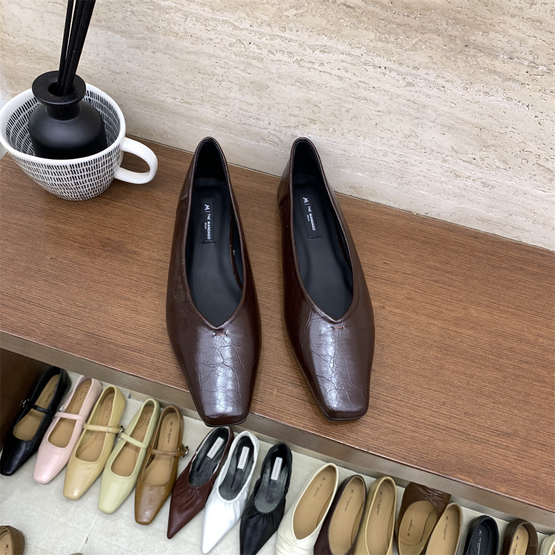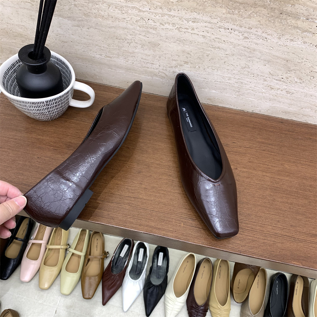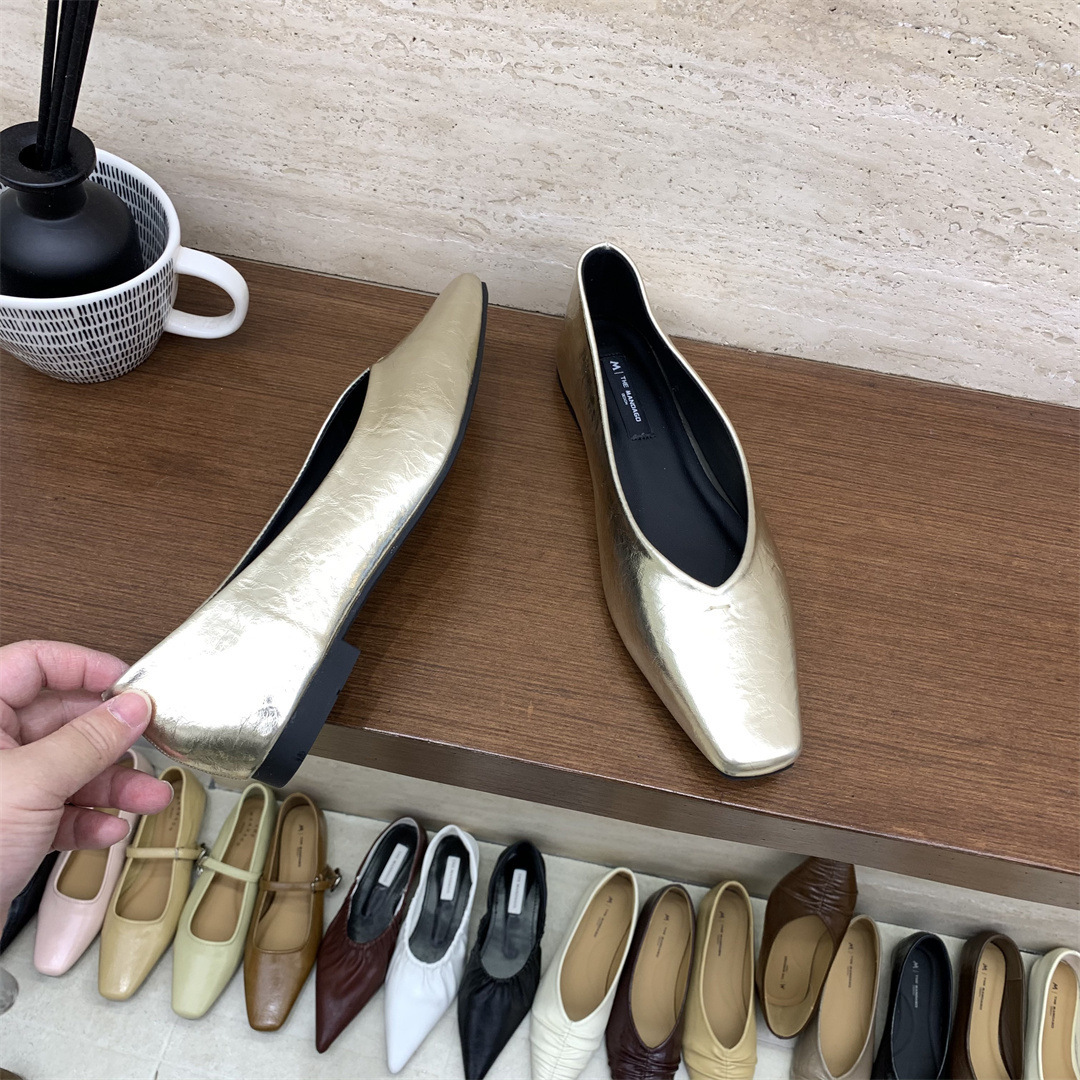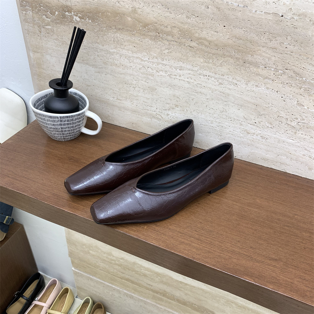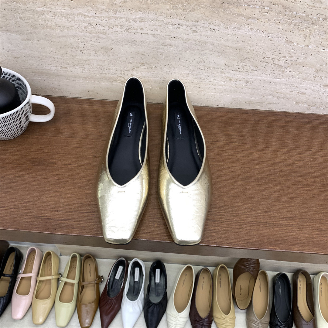 봄, 가을 여성용 얕은 구멍 실버 슈즈 한국식 프렌치 스타일 저녁 통근용 로우힐 플랫 가죽 슈즈