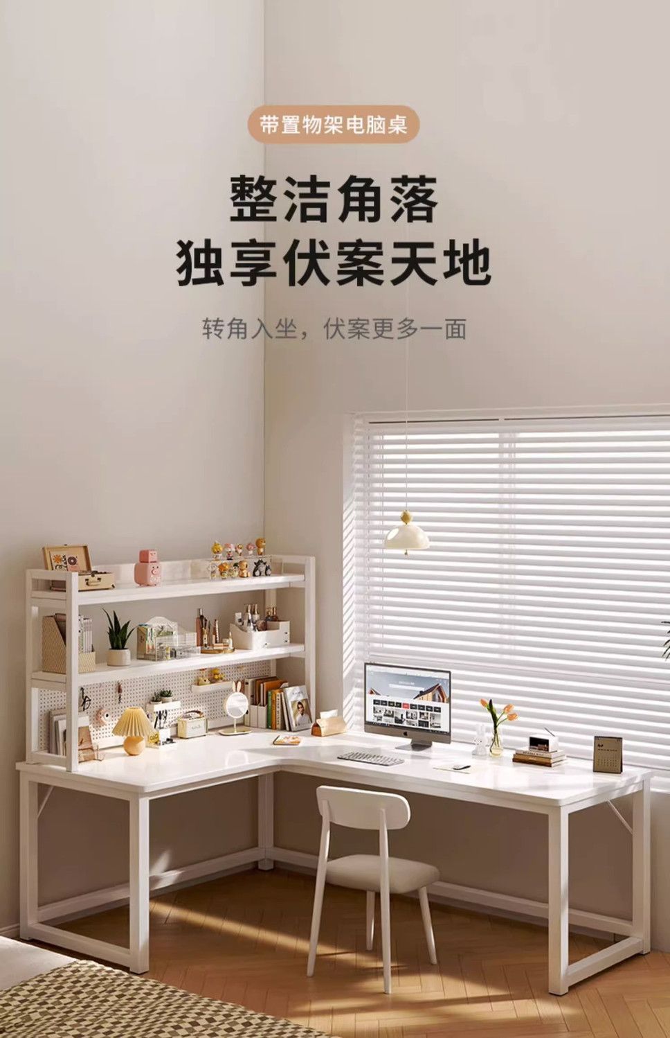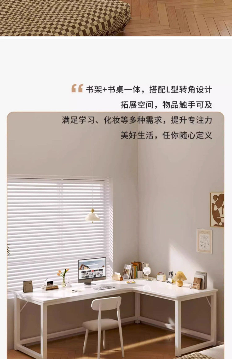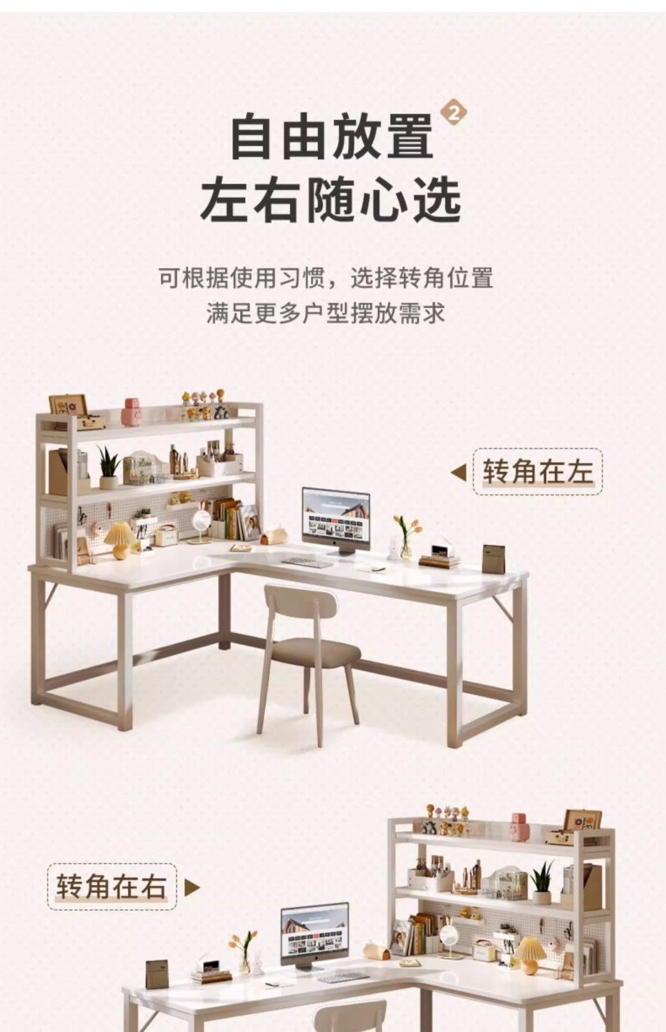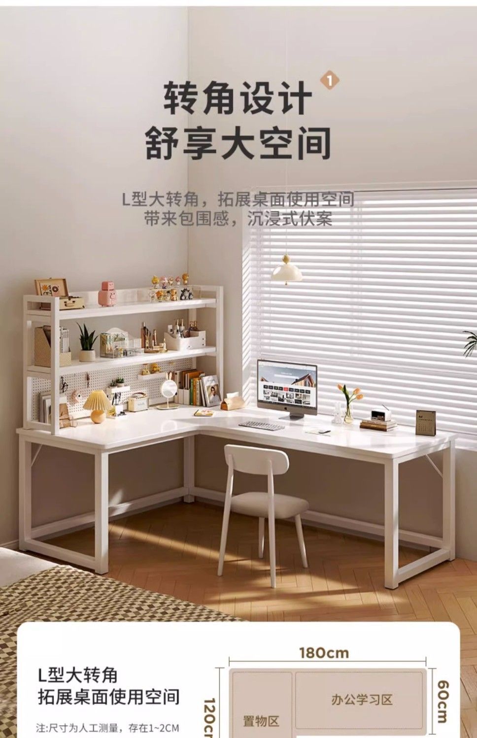 Jmo 크림 코너 책상 책장 통합 책상 데스크탑 컴퓨터 책상 코너 침실 홈 학생 테이블
