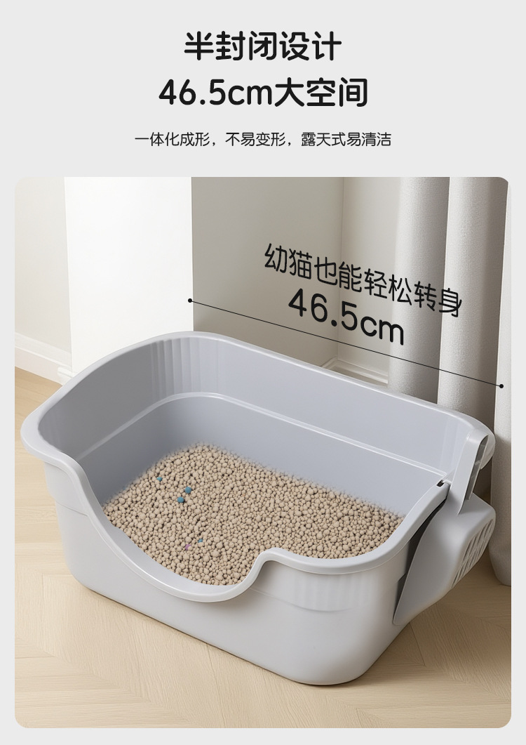초대형 반밀폐형 고양이 화장실, 높이와 깊이가 더해진 울타리, 고양이 배설물이 튀어나오지 않는 대형 고양이 화장실, 반려동물 용품