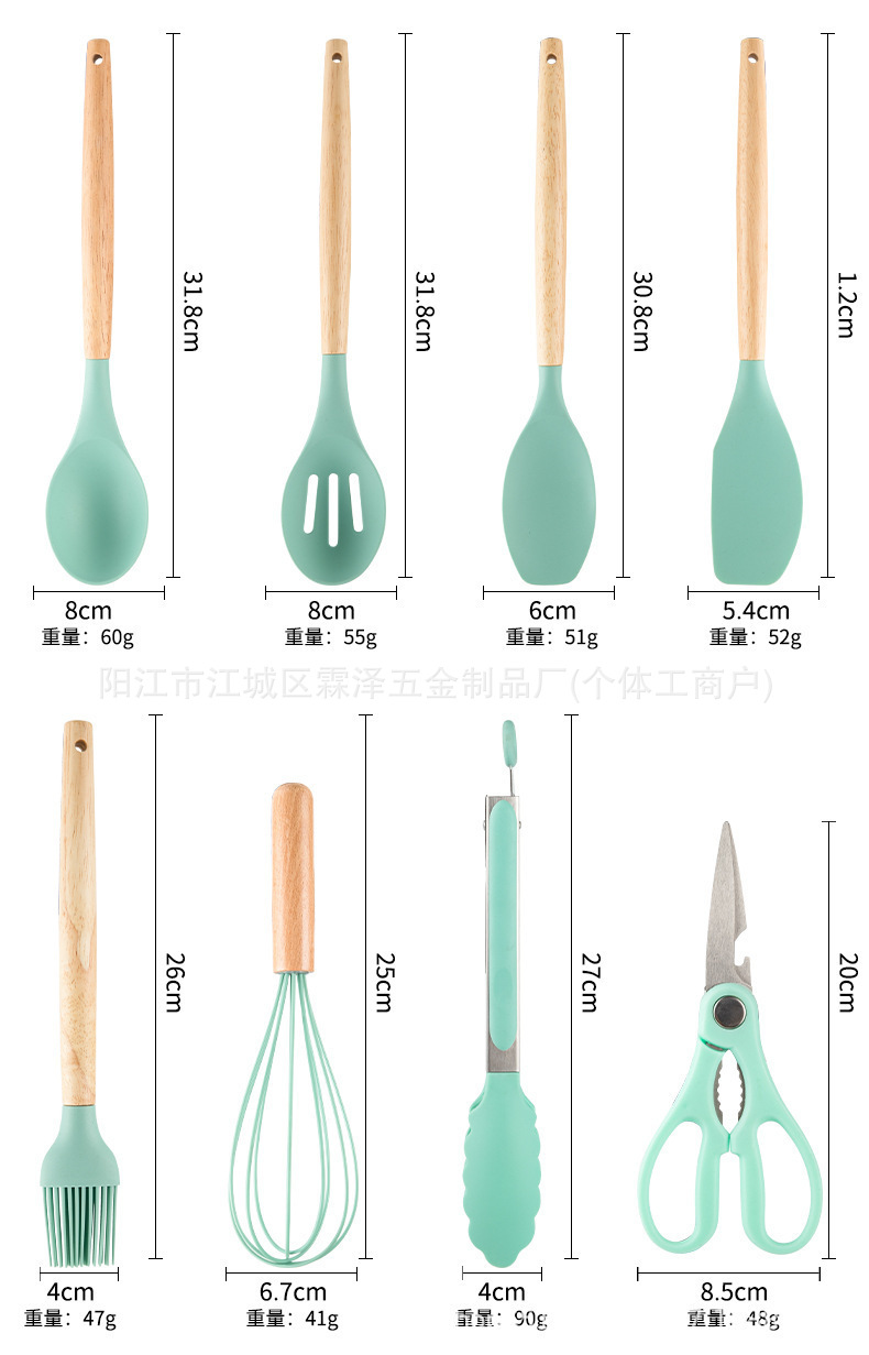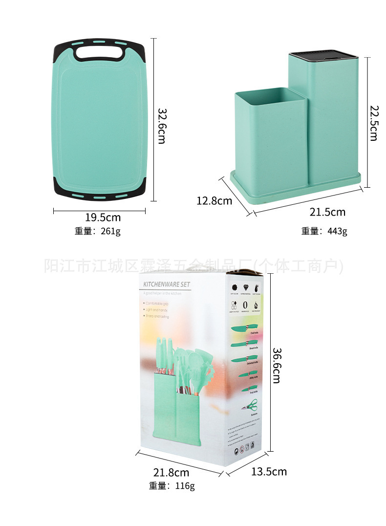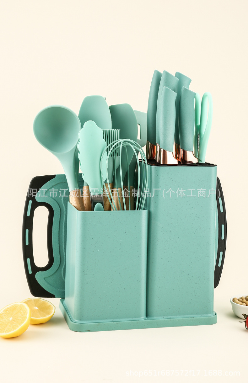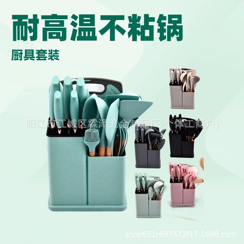 국경을 넘는 실리콘 주방용품 19종 세트, 고온 내성, 보관 용이, 논스틱 팬, 칼, 요리 도구