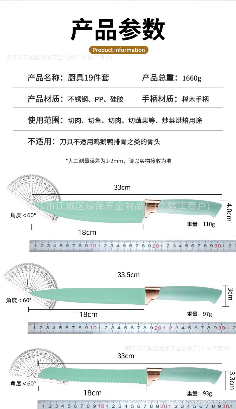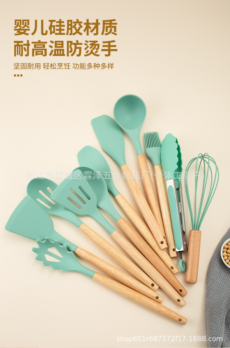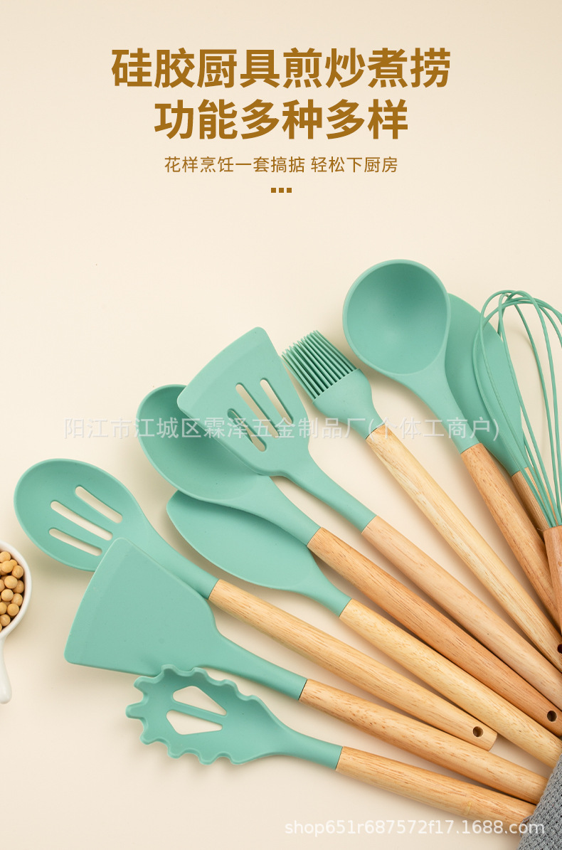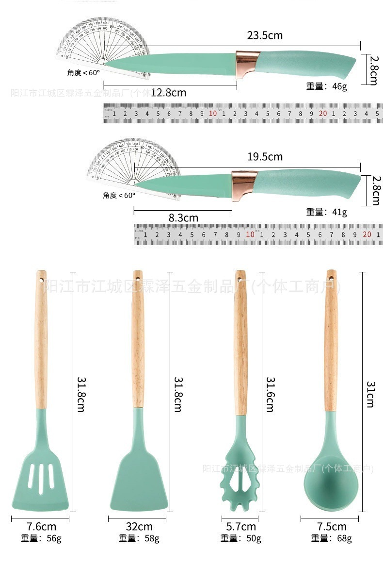 국경을 넘는 실리콘 주방용품 19종 세트, 고온 내성, 보관 용이, 논스틱 팬, 칼, 요리 도구