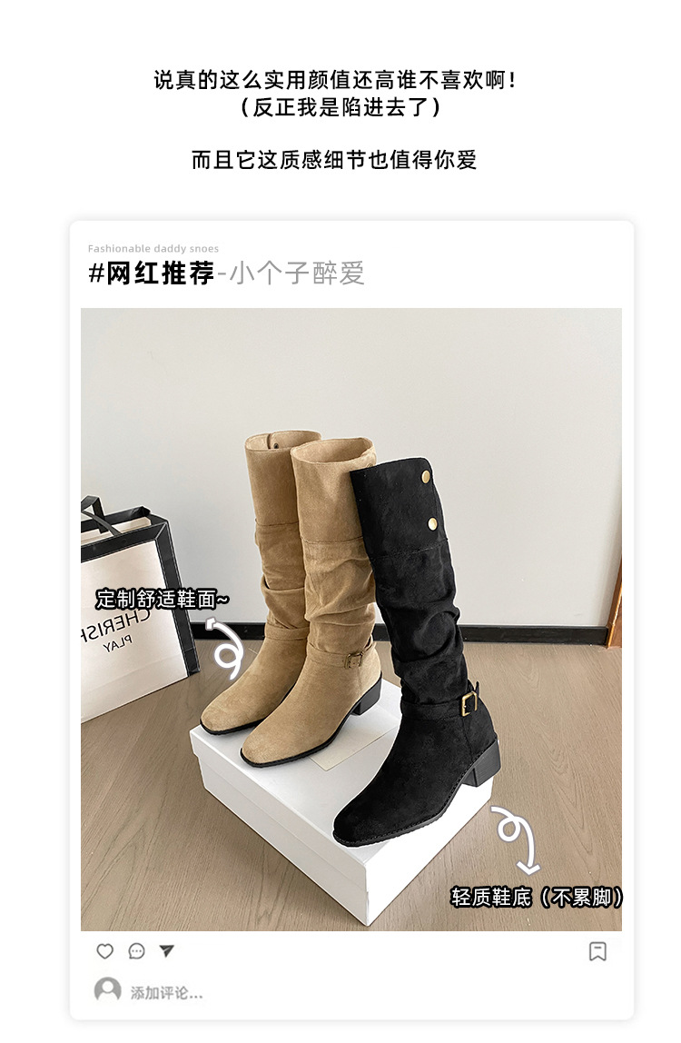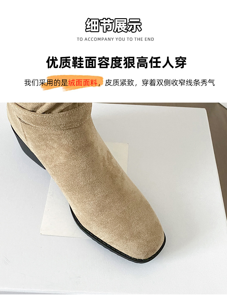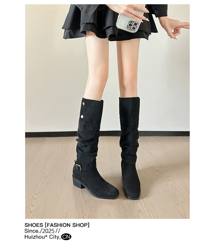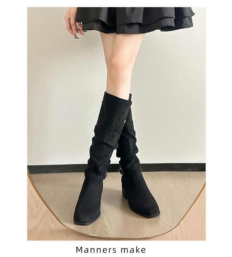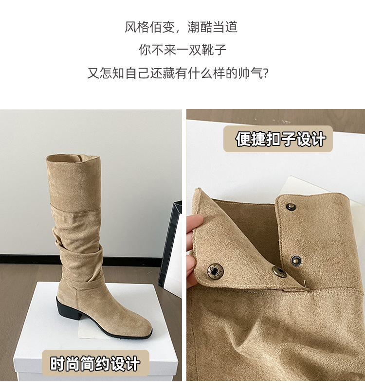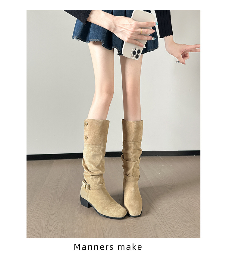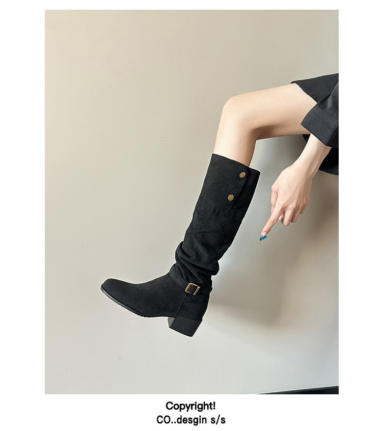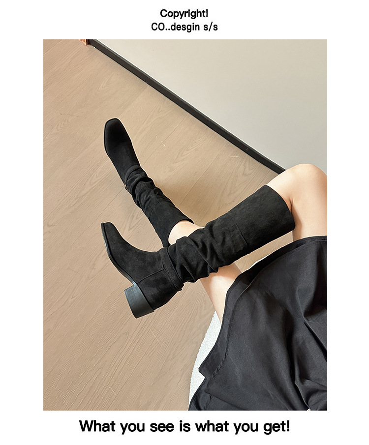 237-9G 스웨이드 프렌치 부츠 무릎 부츠 2025 가을 겨울 신작 복고풍 여성 부츠 주름 부츠