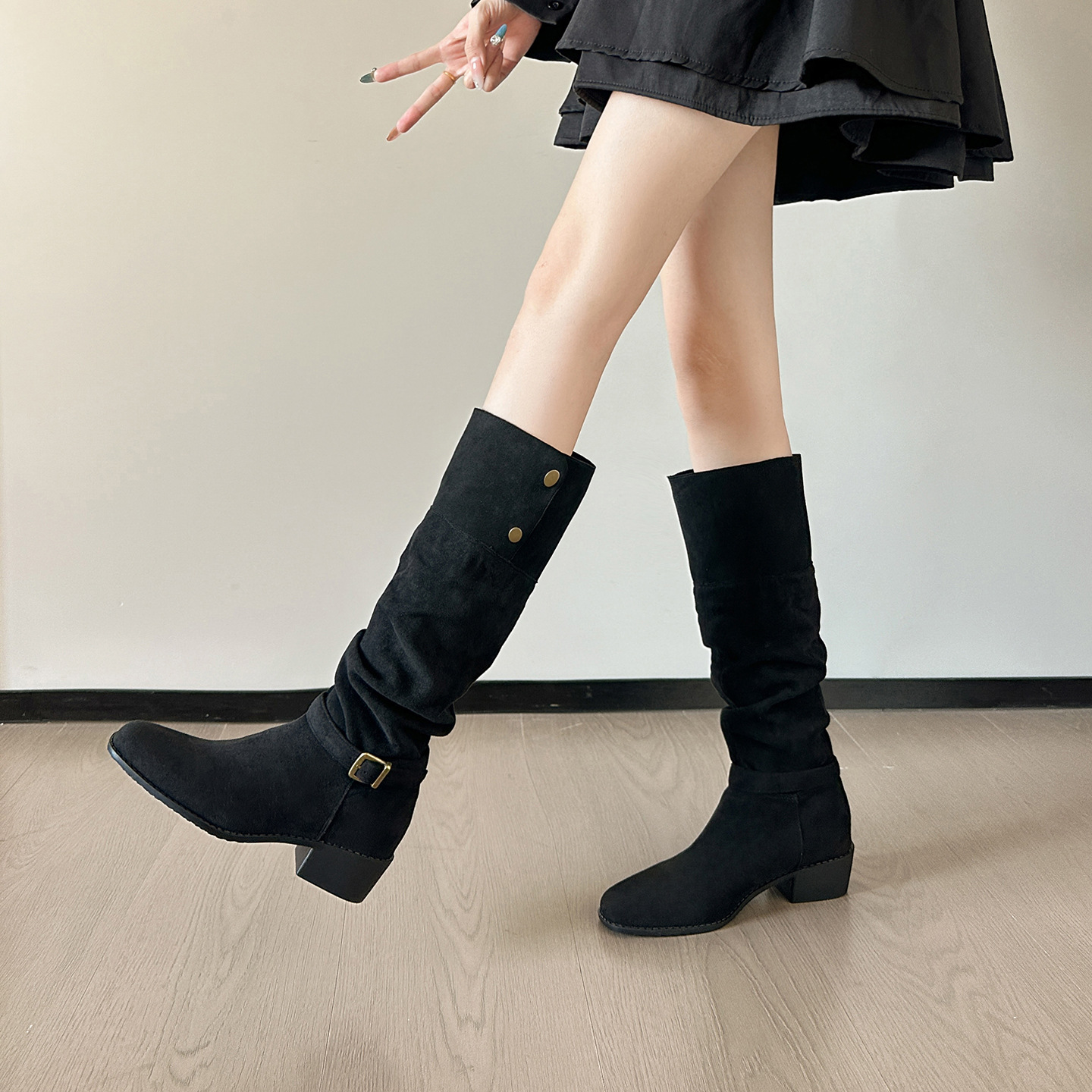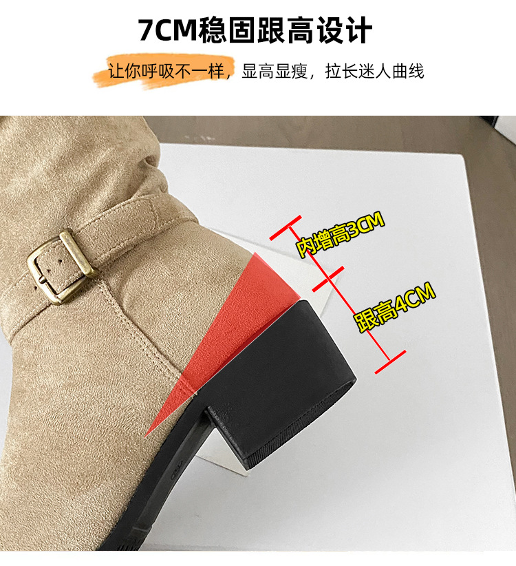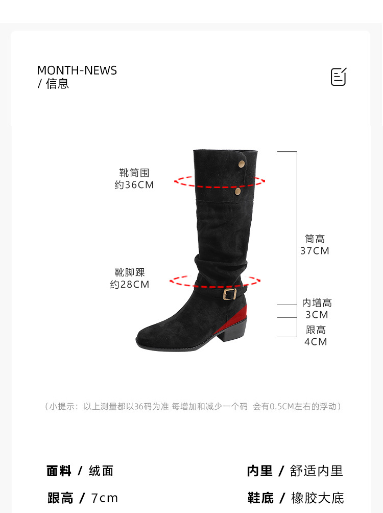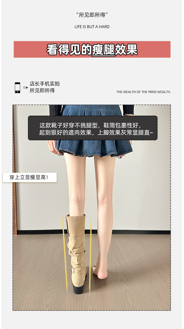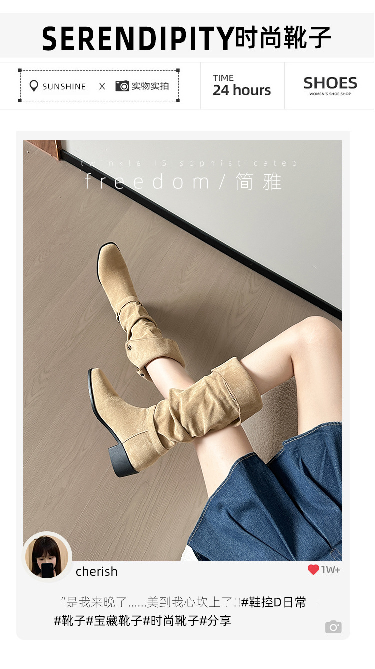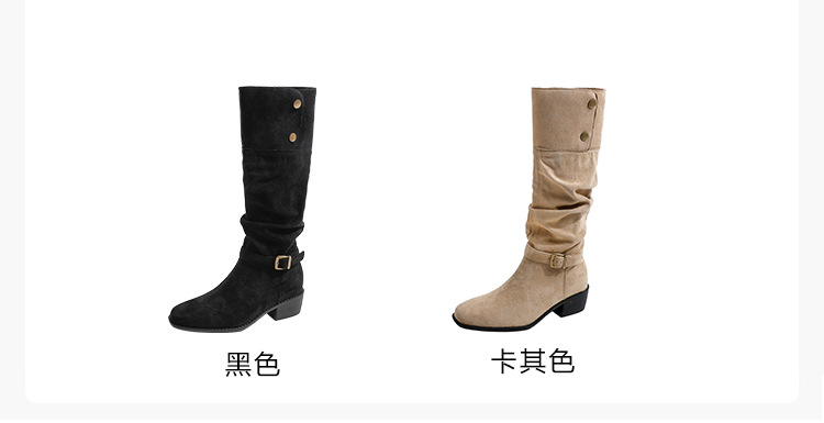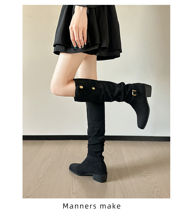 237-9G 스웨이드 프렌치 부츠 무릎 부츠 2025 가을 겨울 신작 복고풍 여성 부츠 주름 부츠