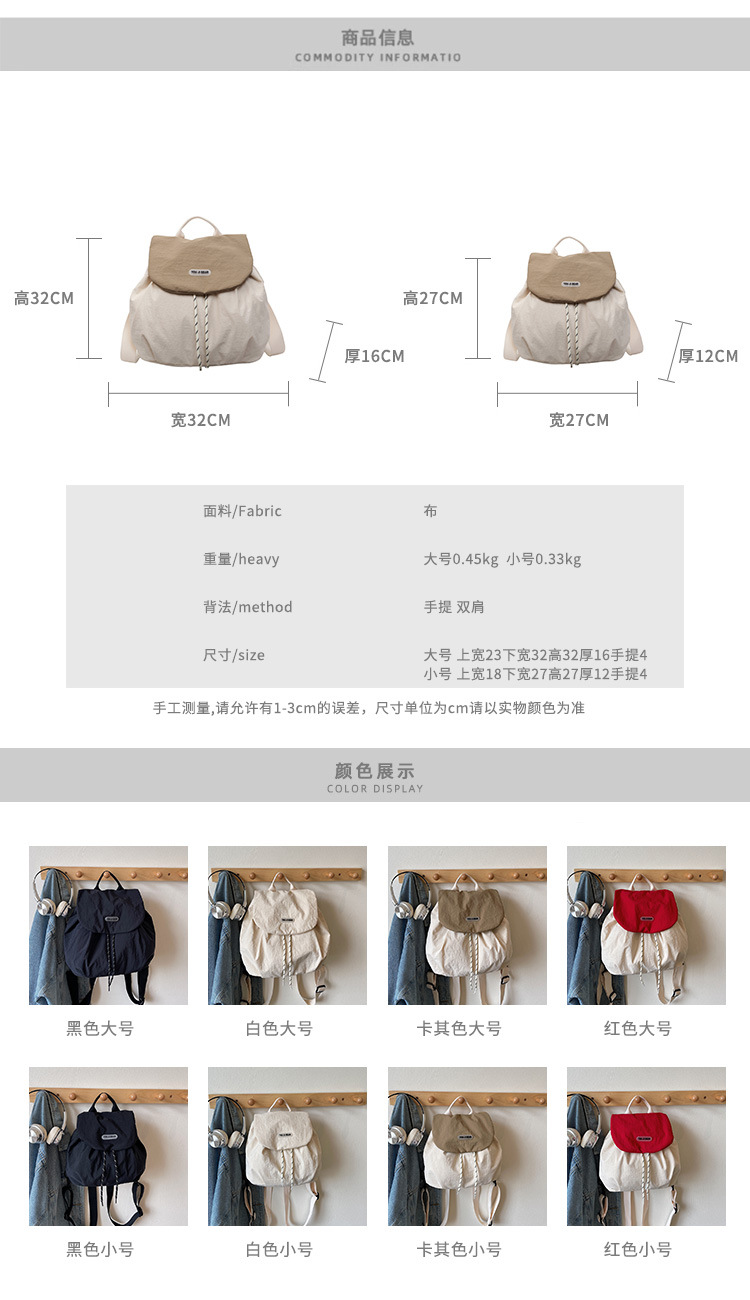 Yuzuo 미니 배낭 초경량 캐주얼 핸드백 여성 2025 새로운 대용량 통근 여행 가방