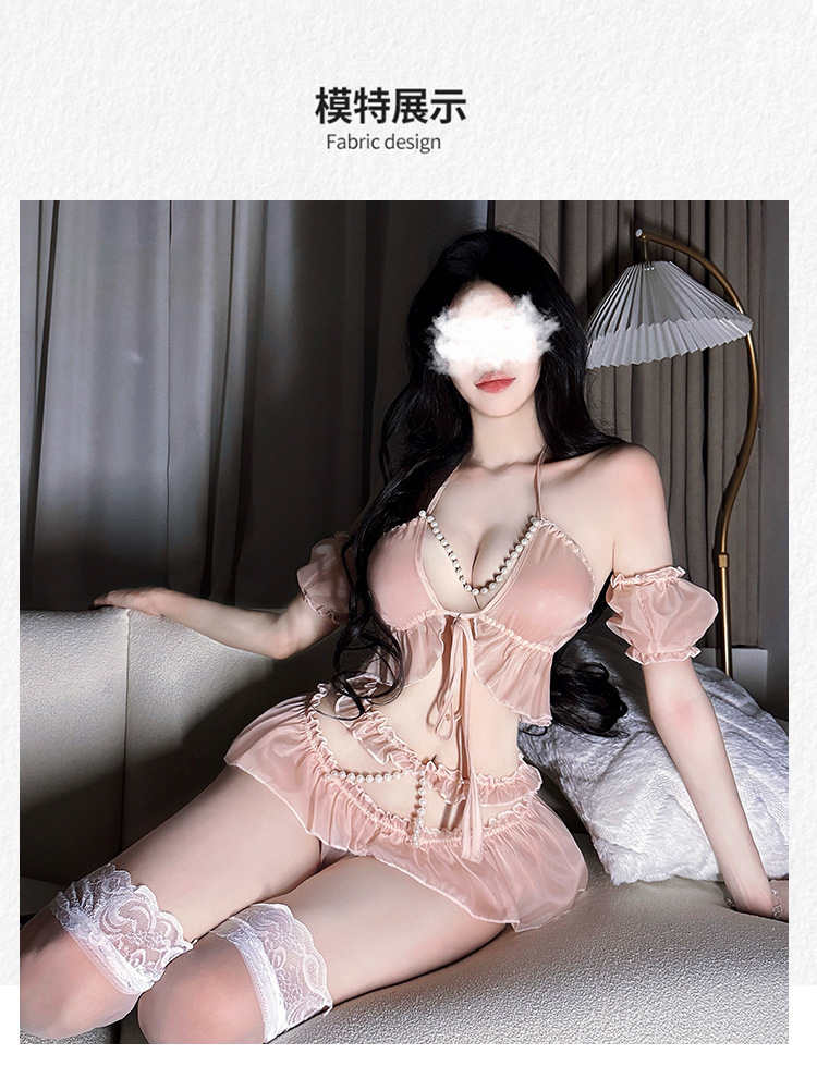 핑크 + 탑 + 속옷 + 흰색 망사 스타킹