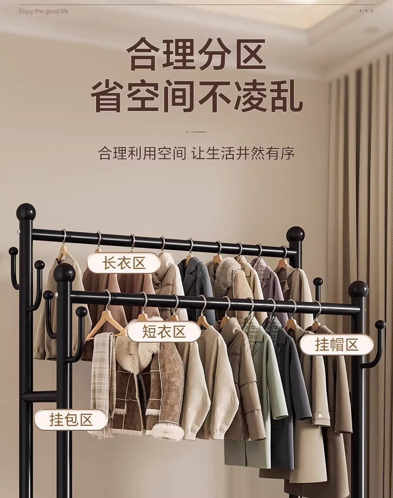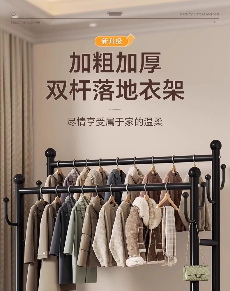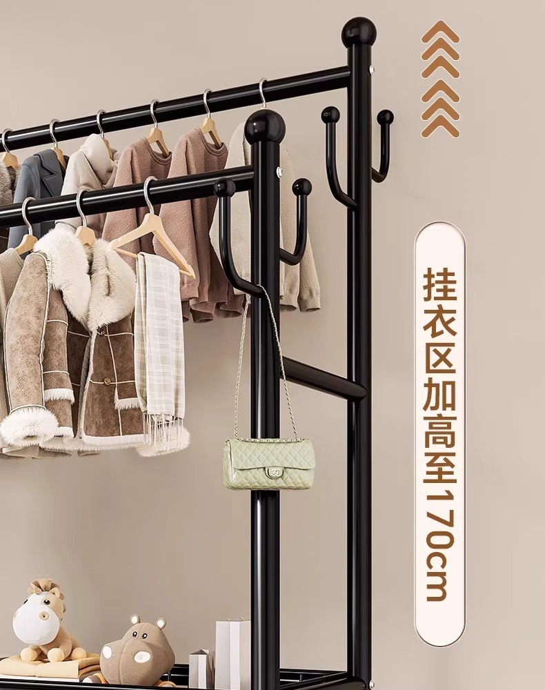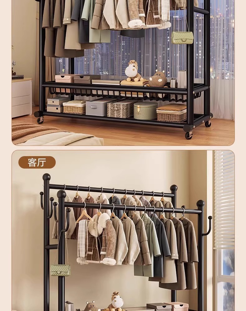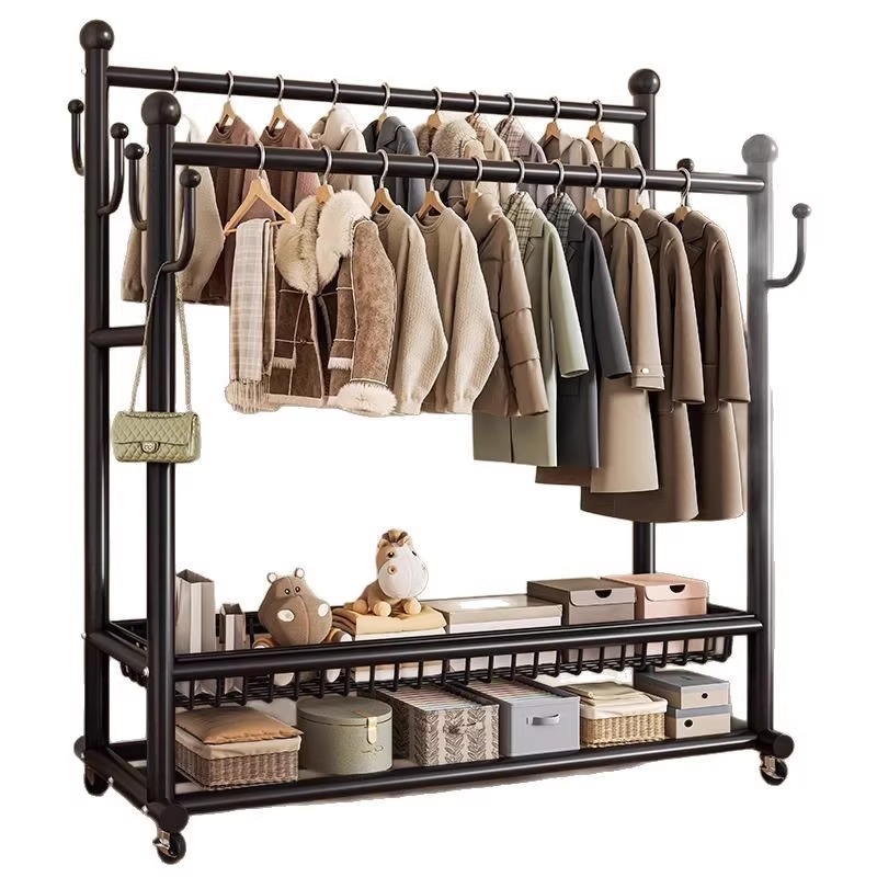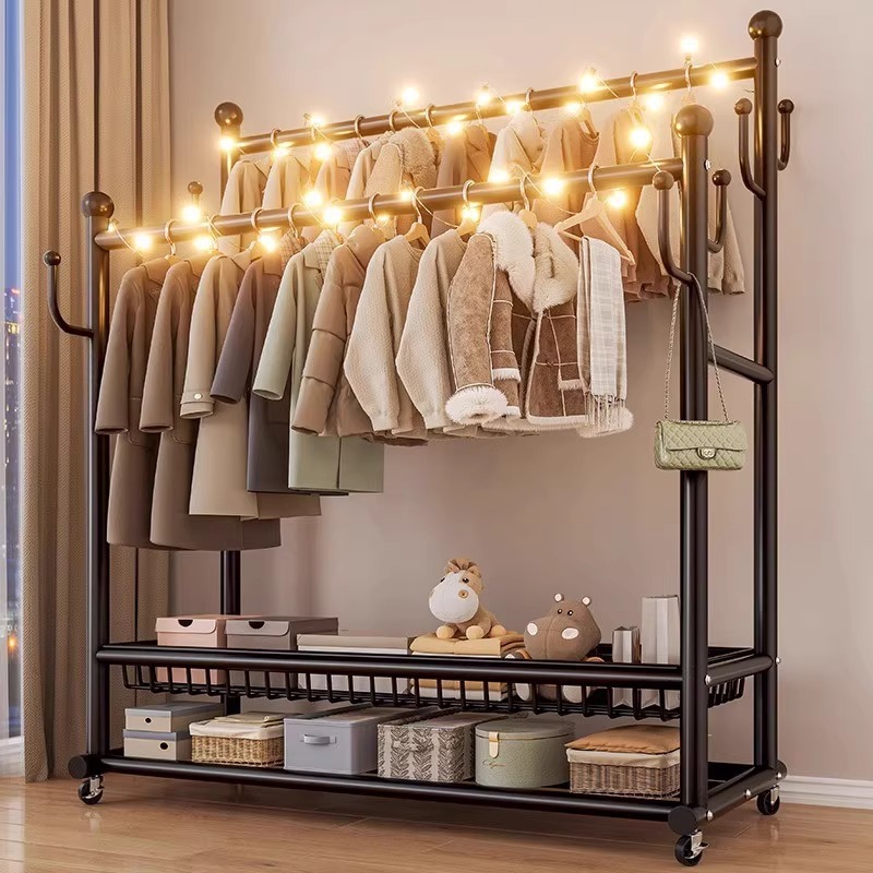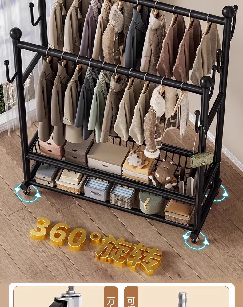 옷걸이 바닥 침실 홈 룸 실내 코트 랙 이동식 다기능 이중 막대 옷 건조 랙