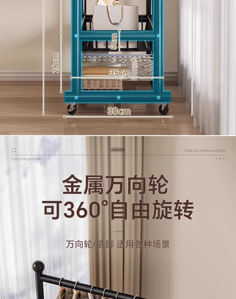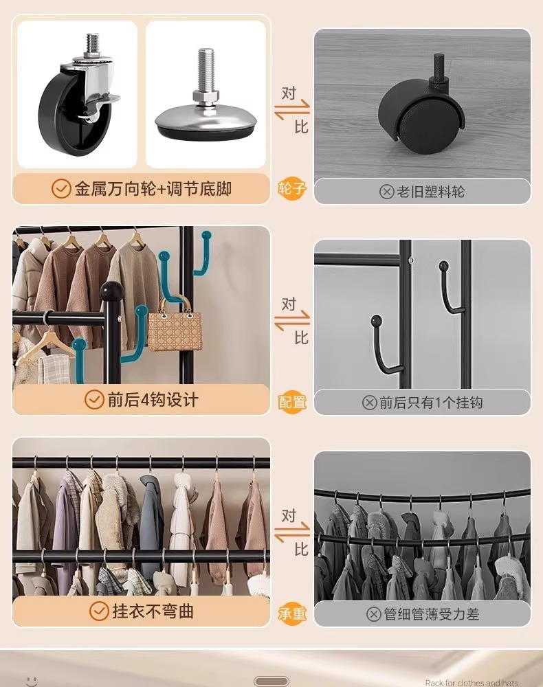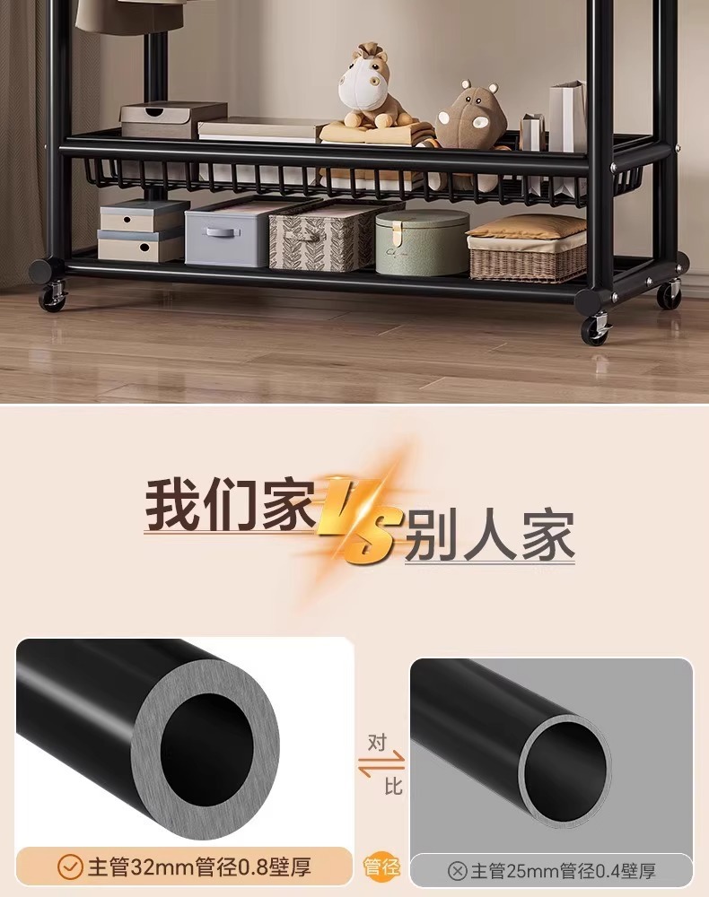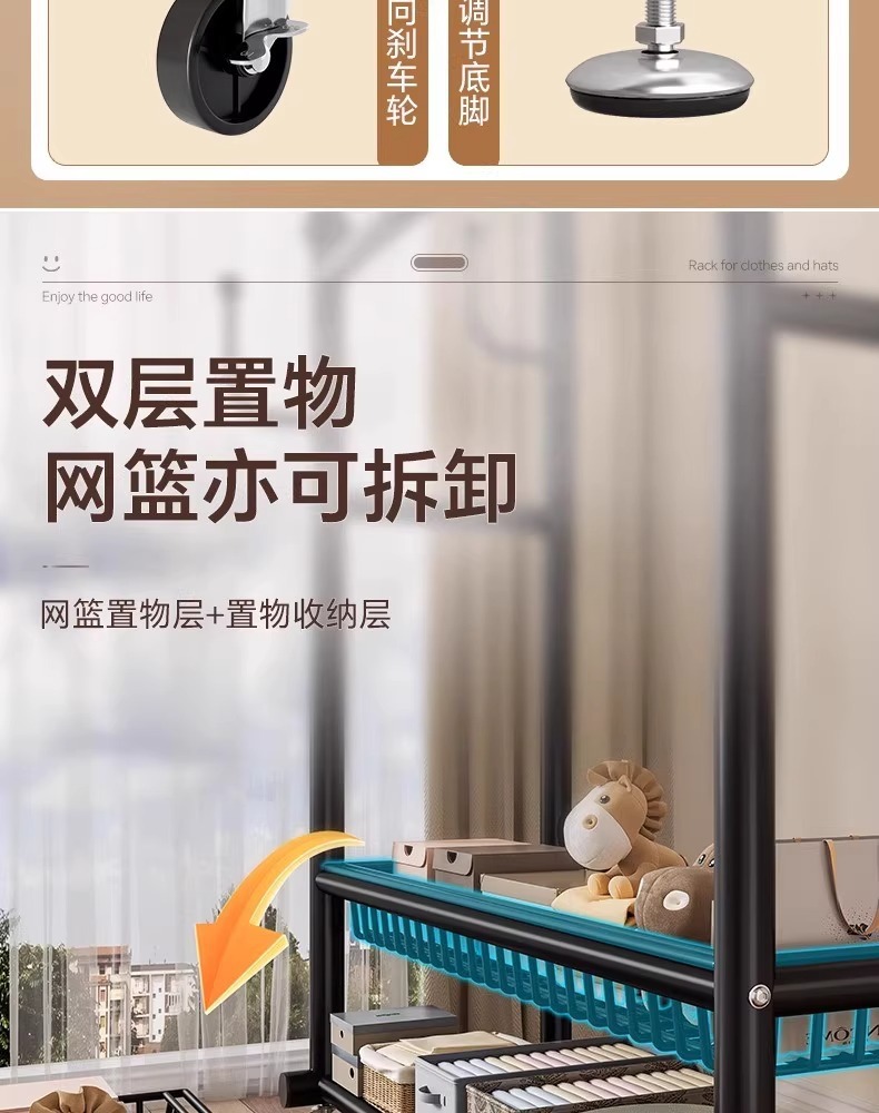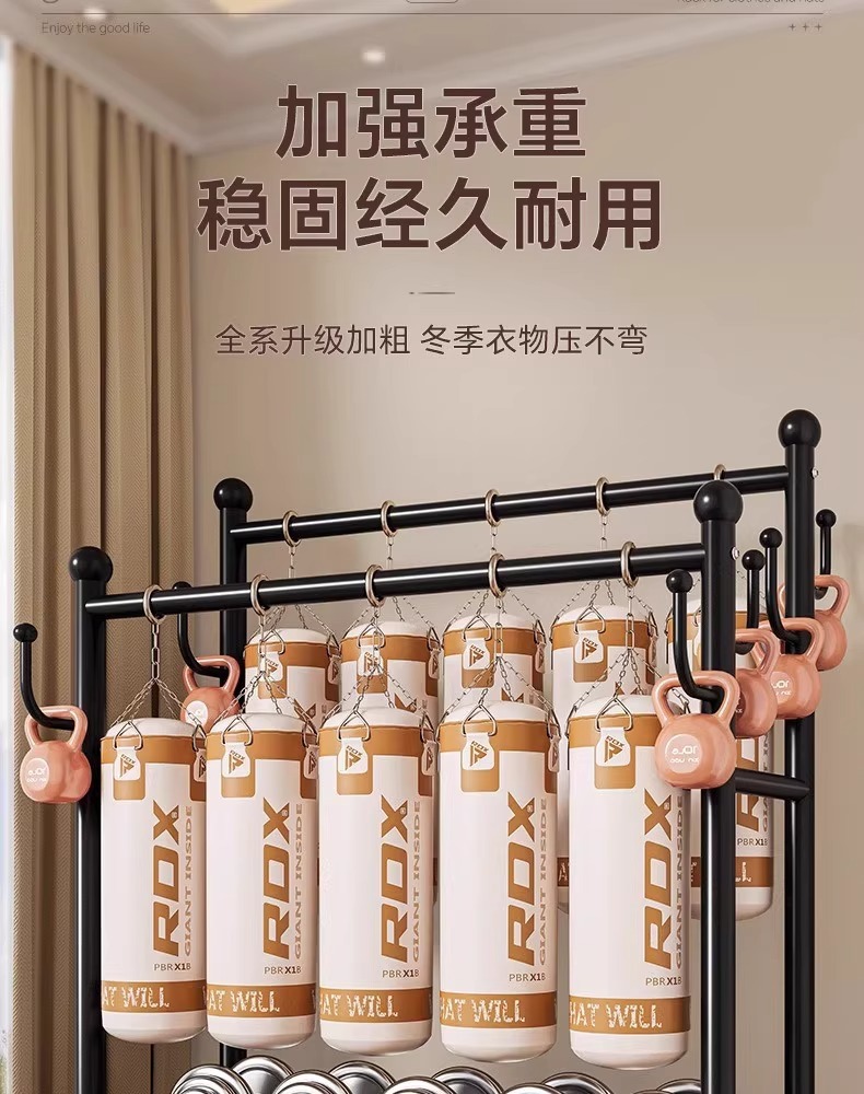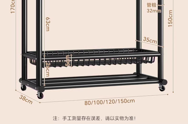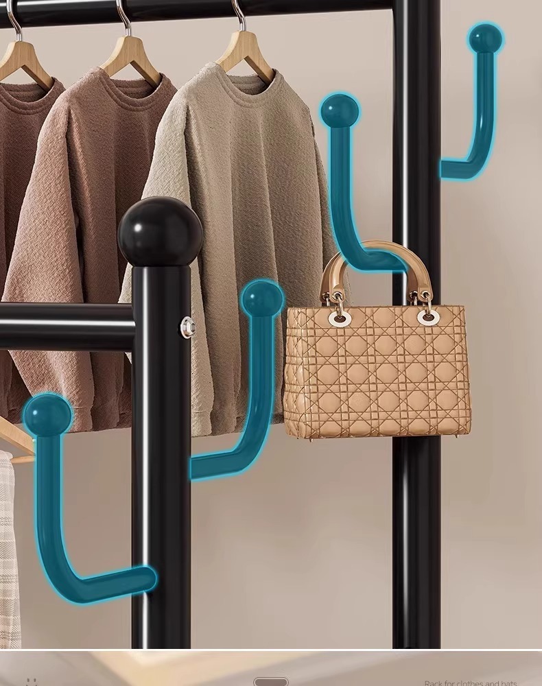 옷걸이 바닥 침실 홈 룸 실내 코트 랙 이동식 다기능 이중 막대 옷 건조 랙