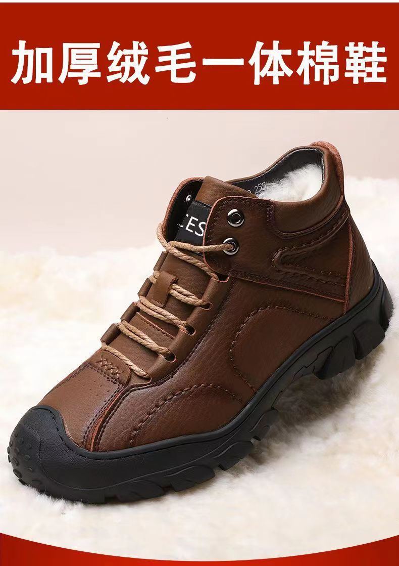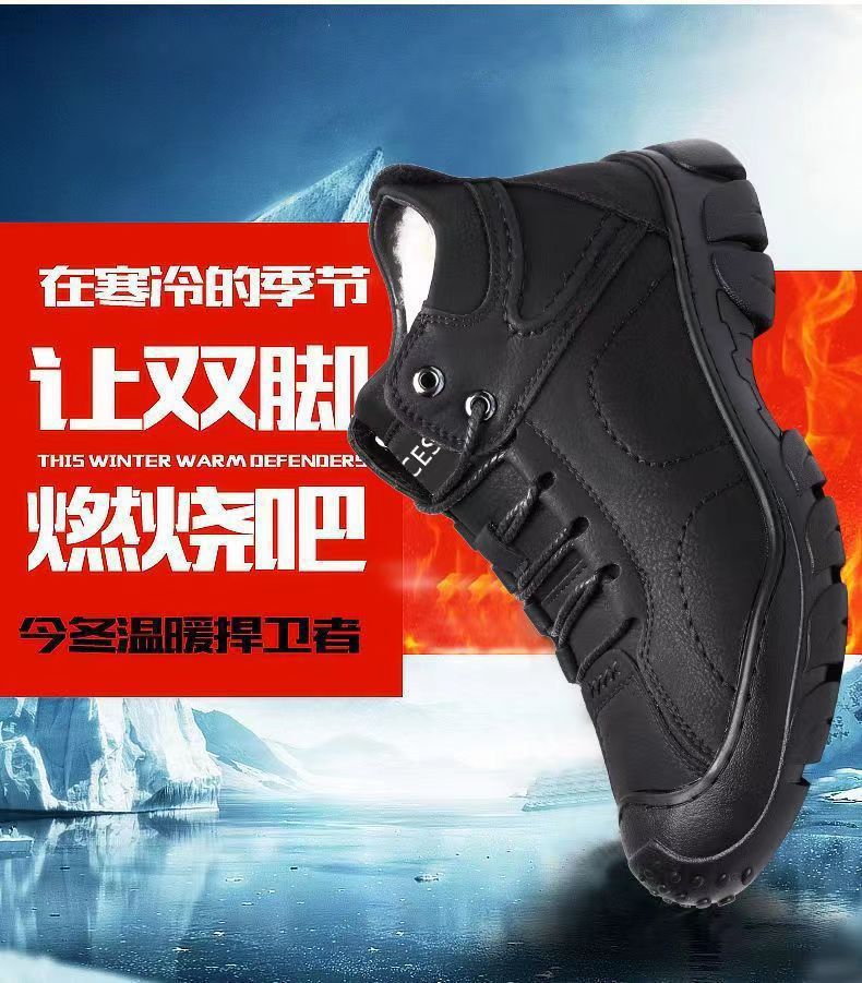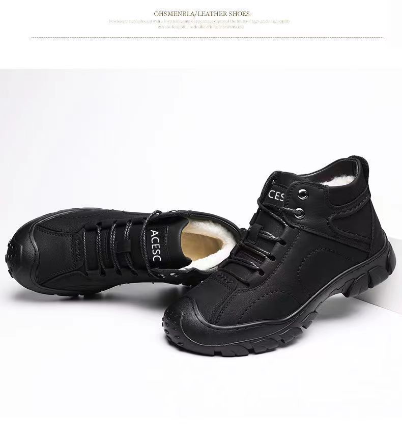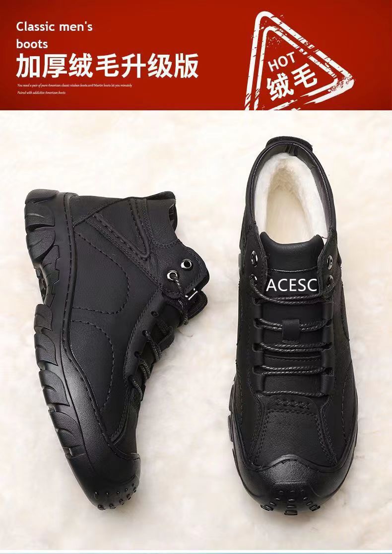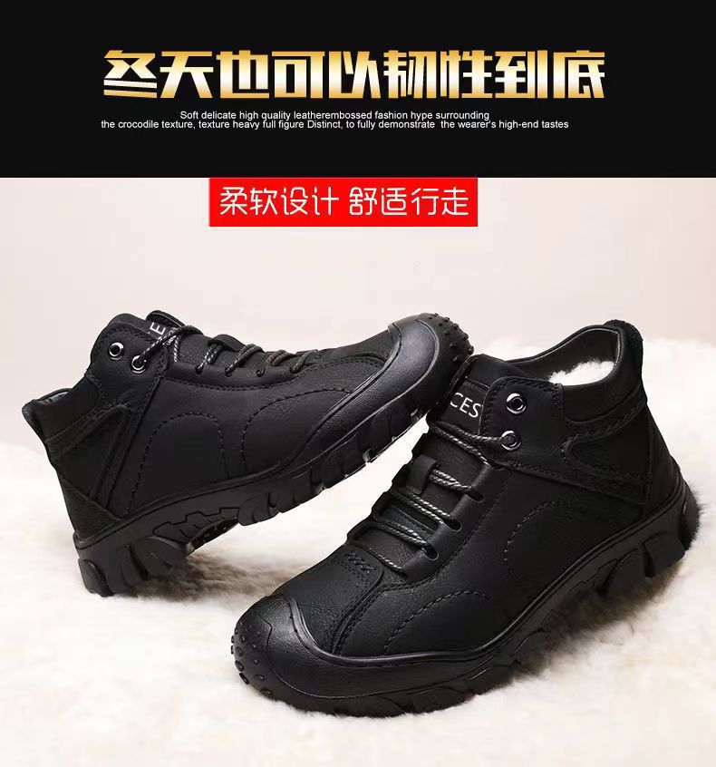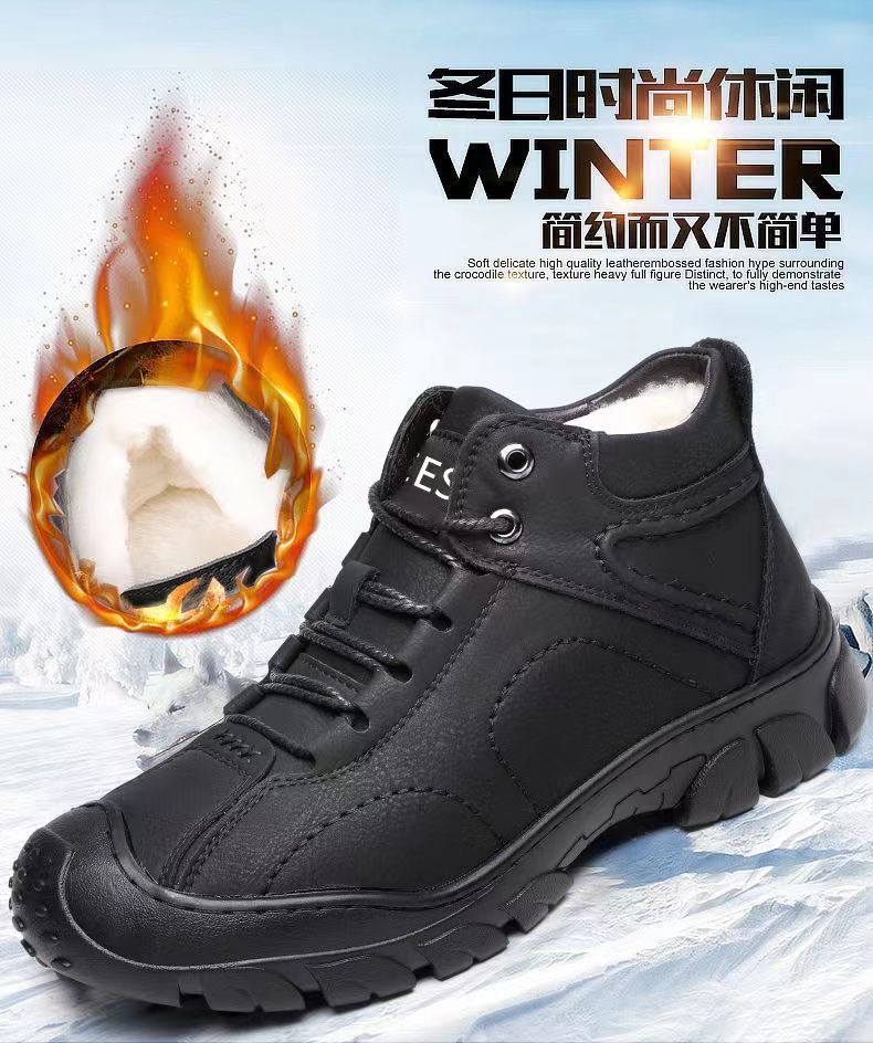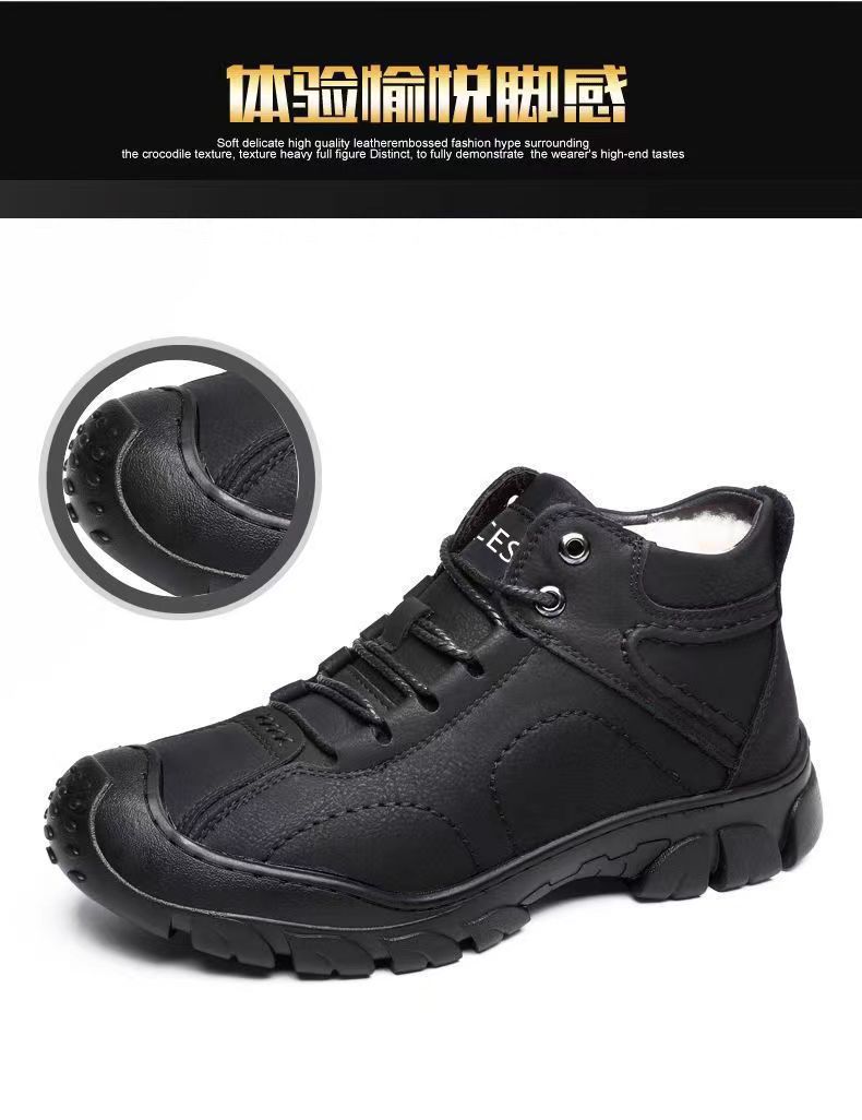 남성 신발 가죽과 벨벳 겨울 새로운 두꺼운 방수 캐주얼 남성 신발 하이 탑 코튼 신발 야외 스포츠 스노우 부츠