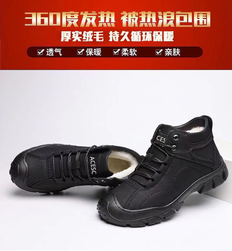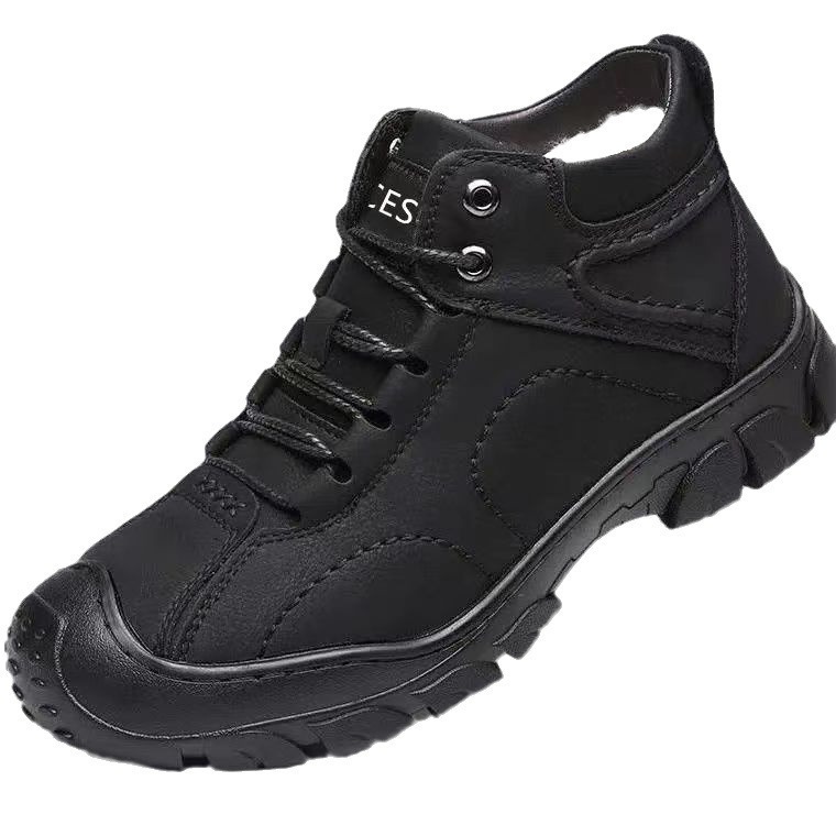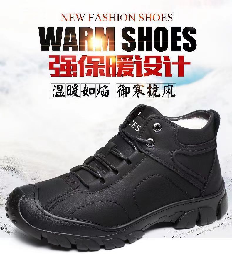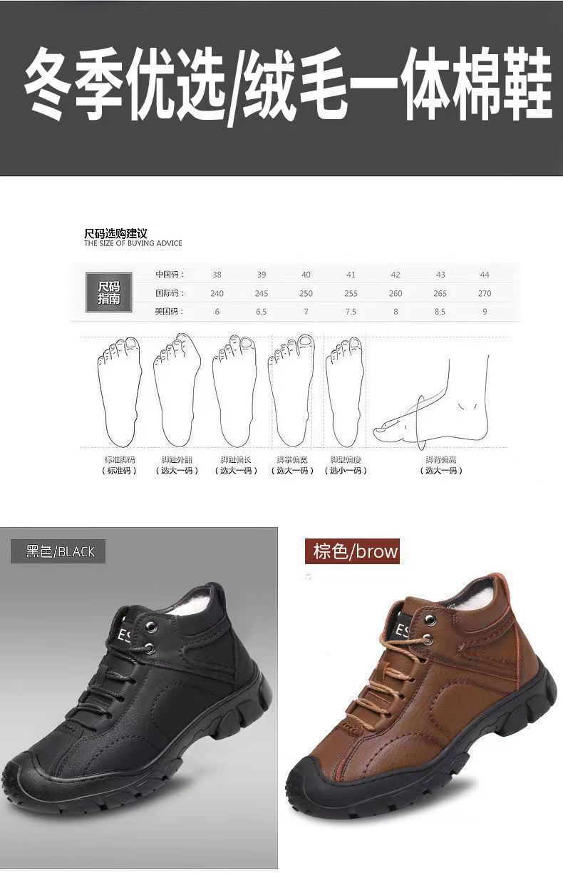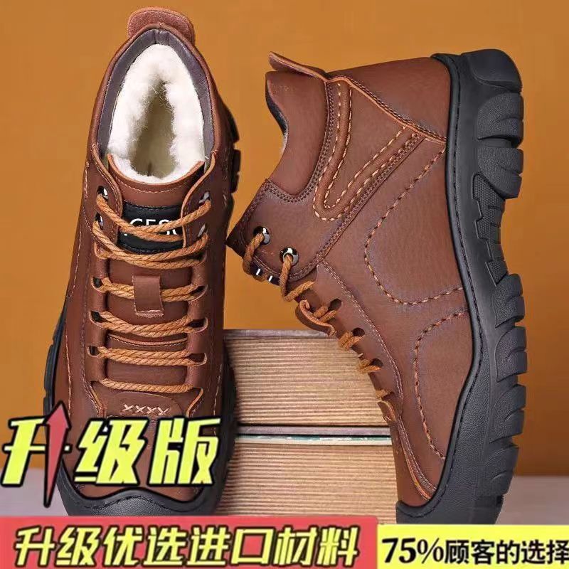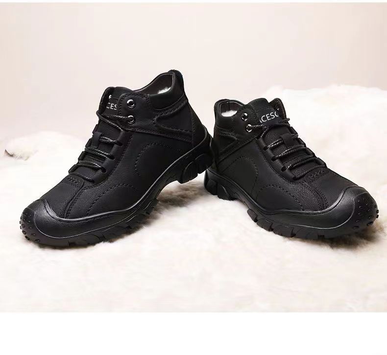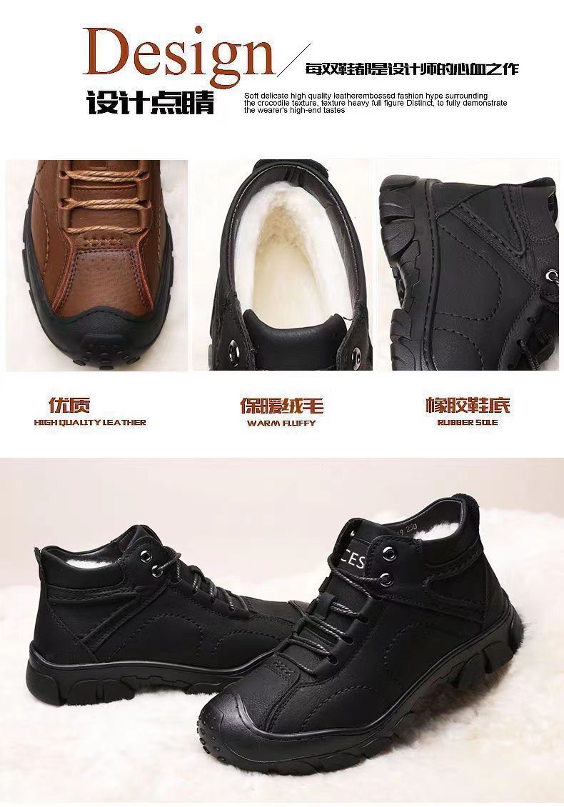 남성 신발 가죽과 벨벳 겨울 새로운 두꺼운 방수 캐주얼 남성 신발 하이 탑 코튼 신발 야외 스포츠 스노우 부츠
