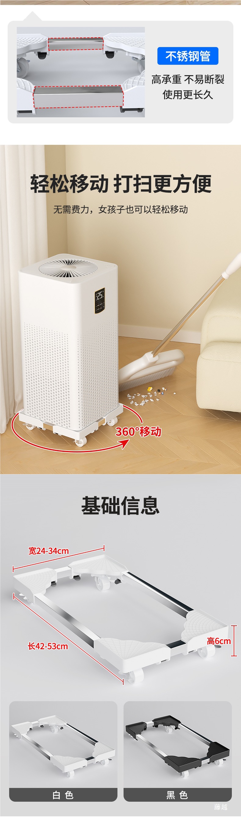 공기청정기 베이스 [길이 24-34cm, 폭 24-34cm] 블랙