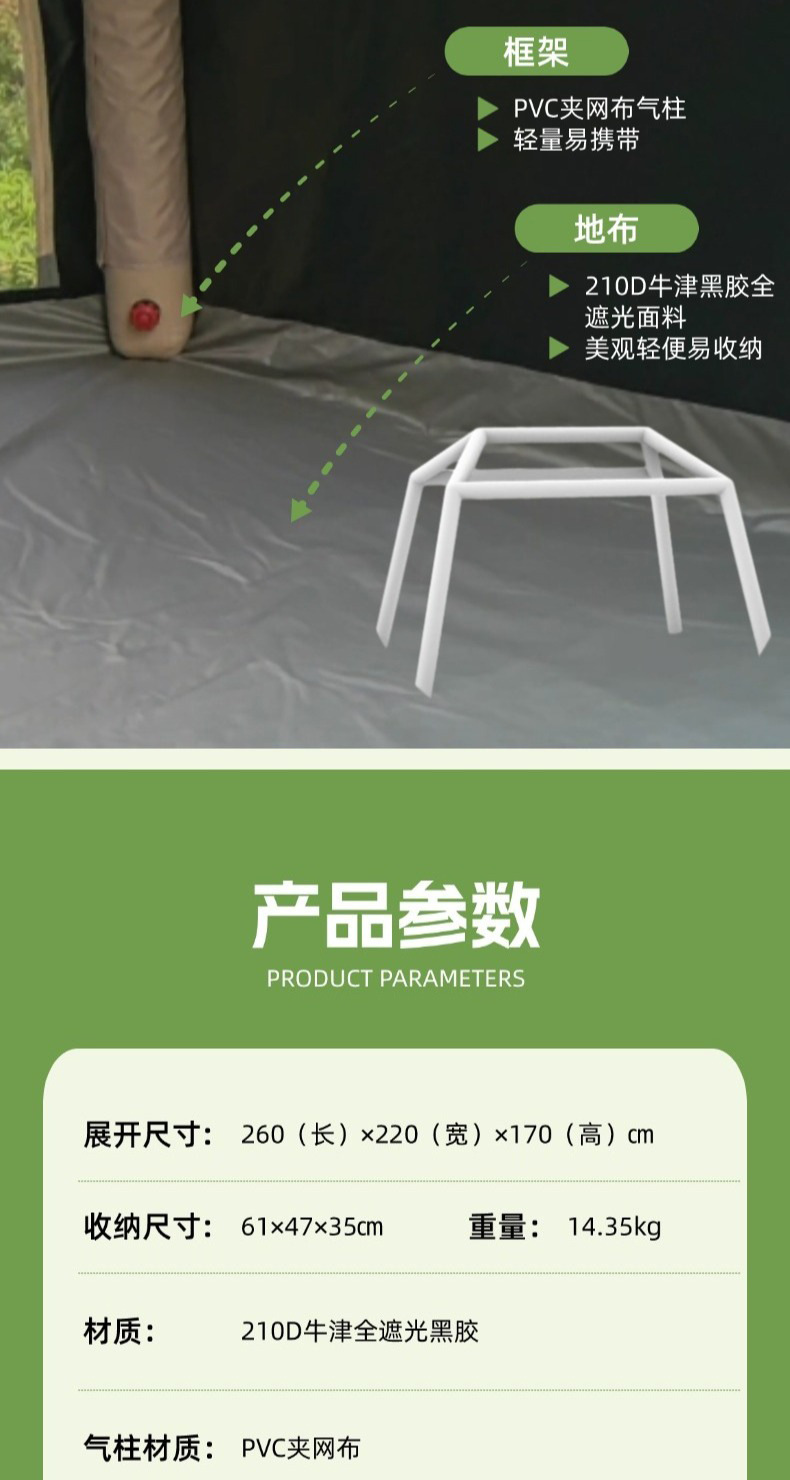 야외 캠핑 피크닉 풍선 텐트 캠핑 휴대용 가족 놀이 설치가 필요없는 풍선 텐트 스팟 루프 캐빈